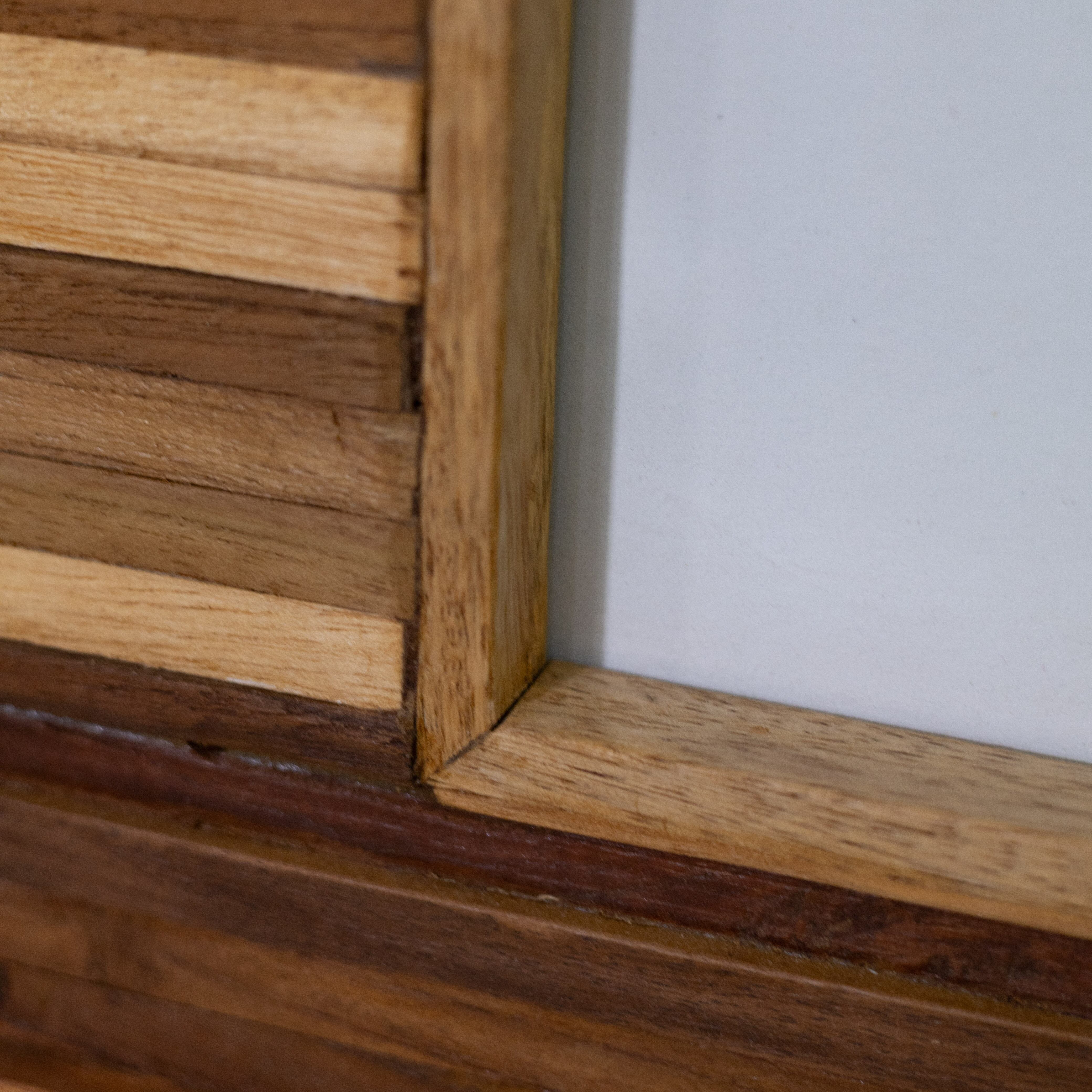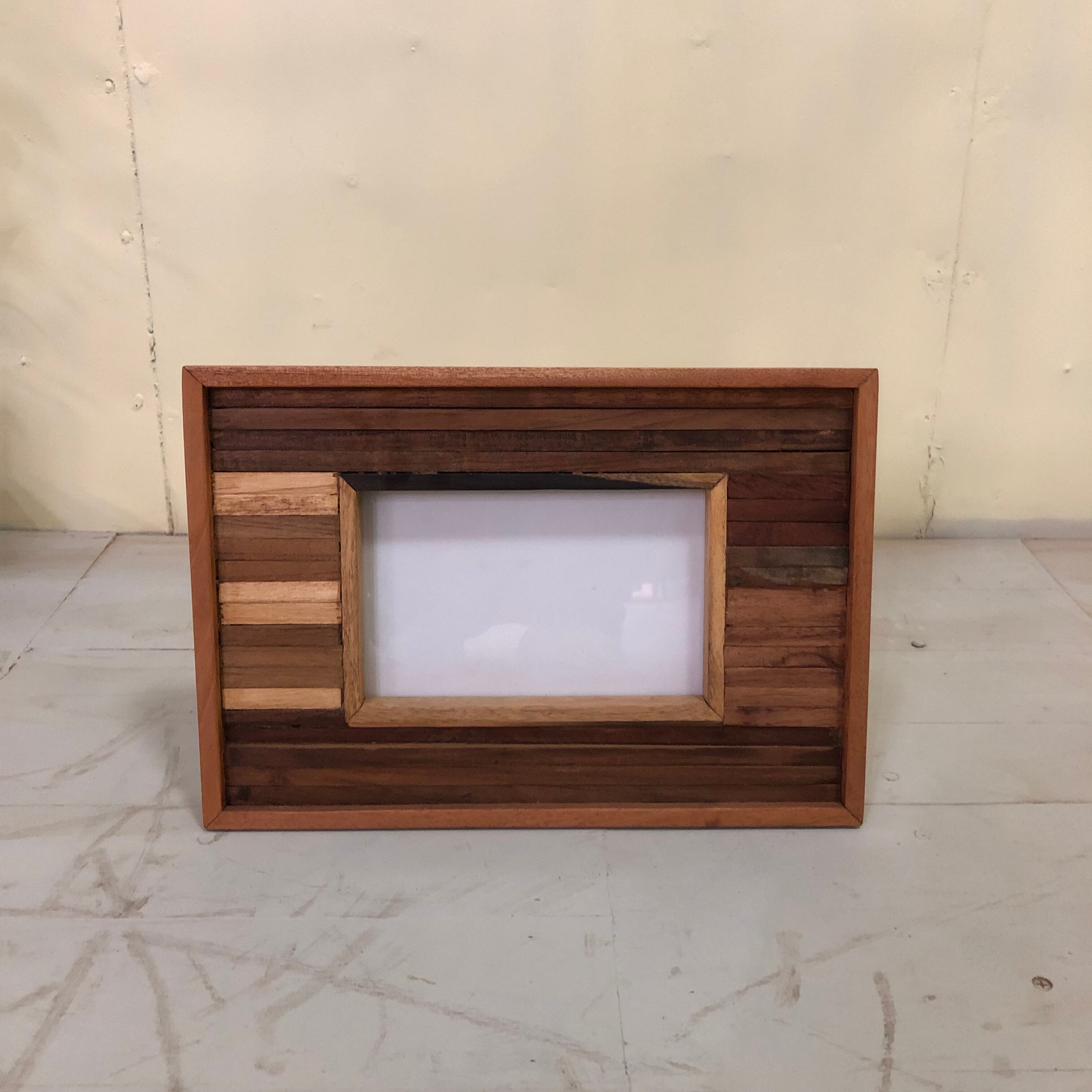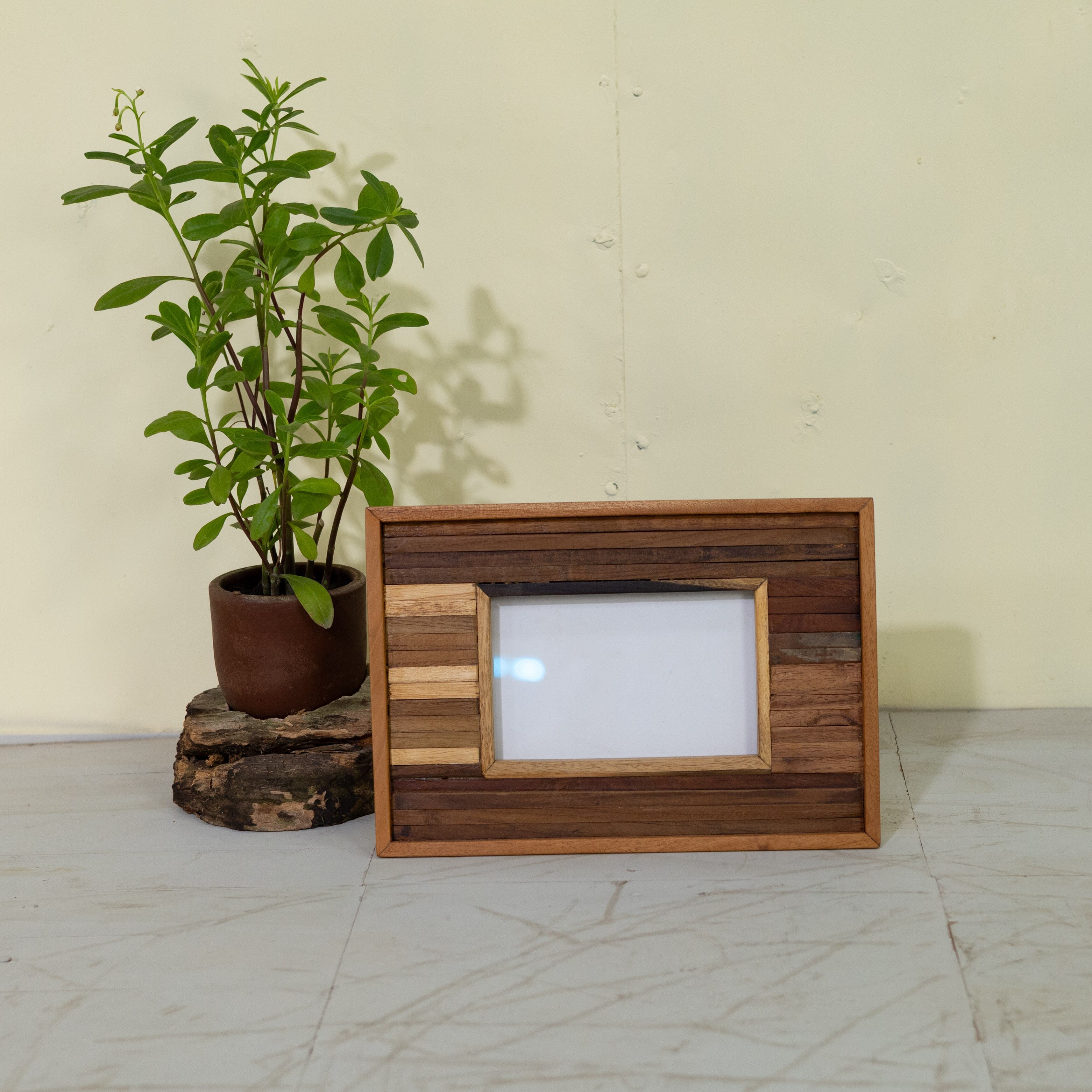 古材チークを一本一本カットして組み合わせた、モザイク模様のフォトフレーム