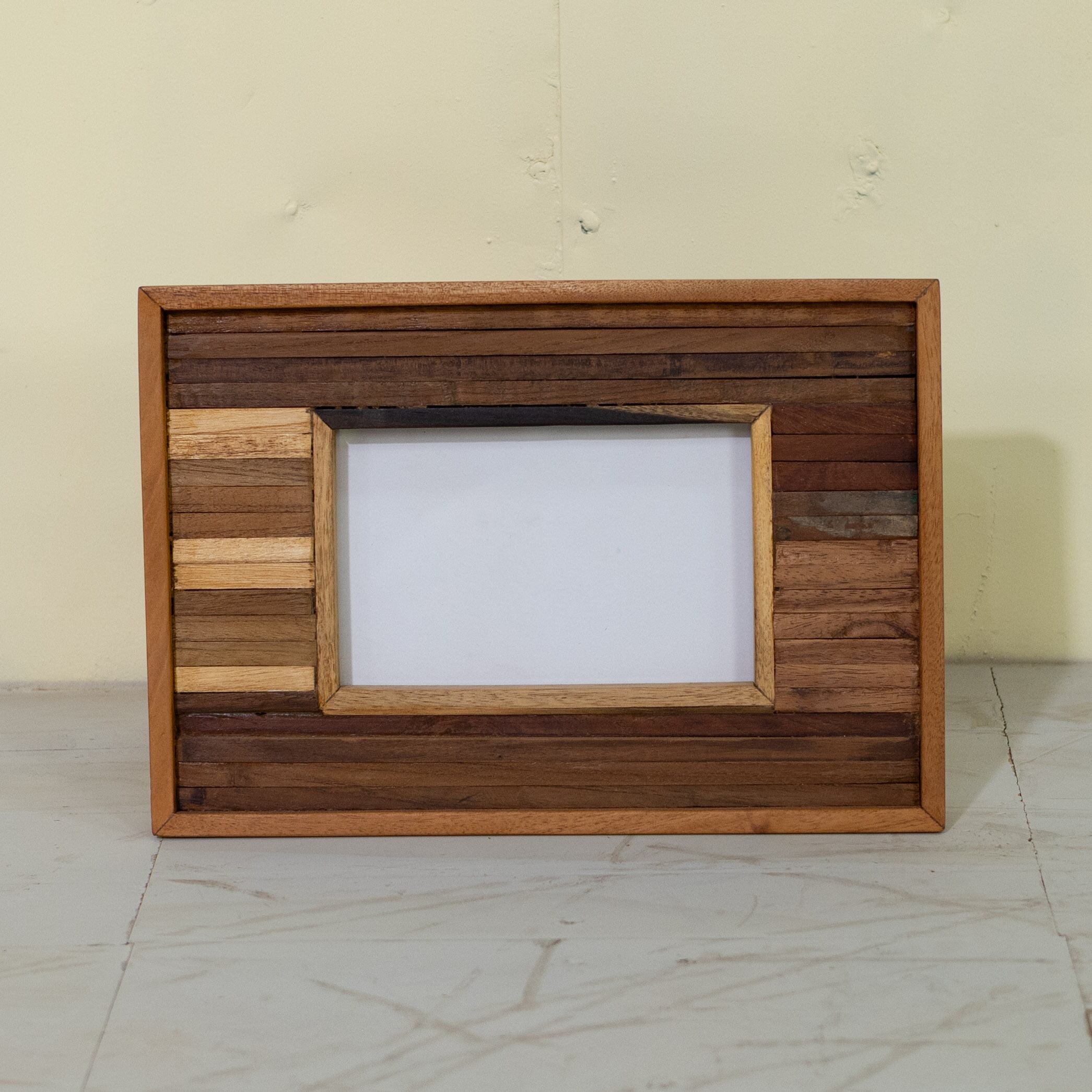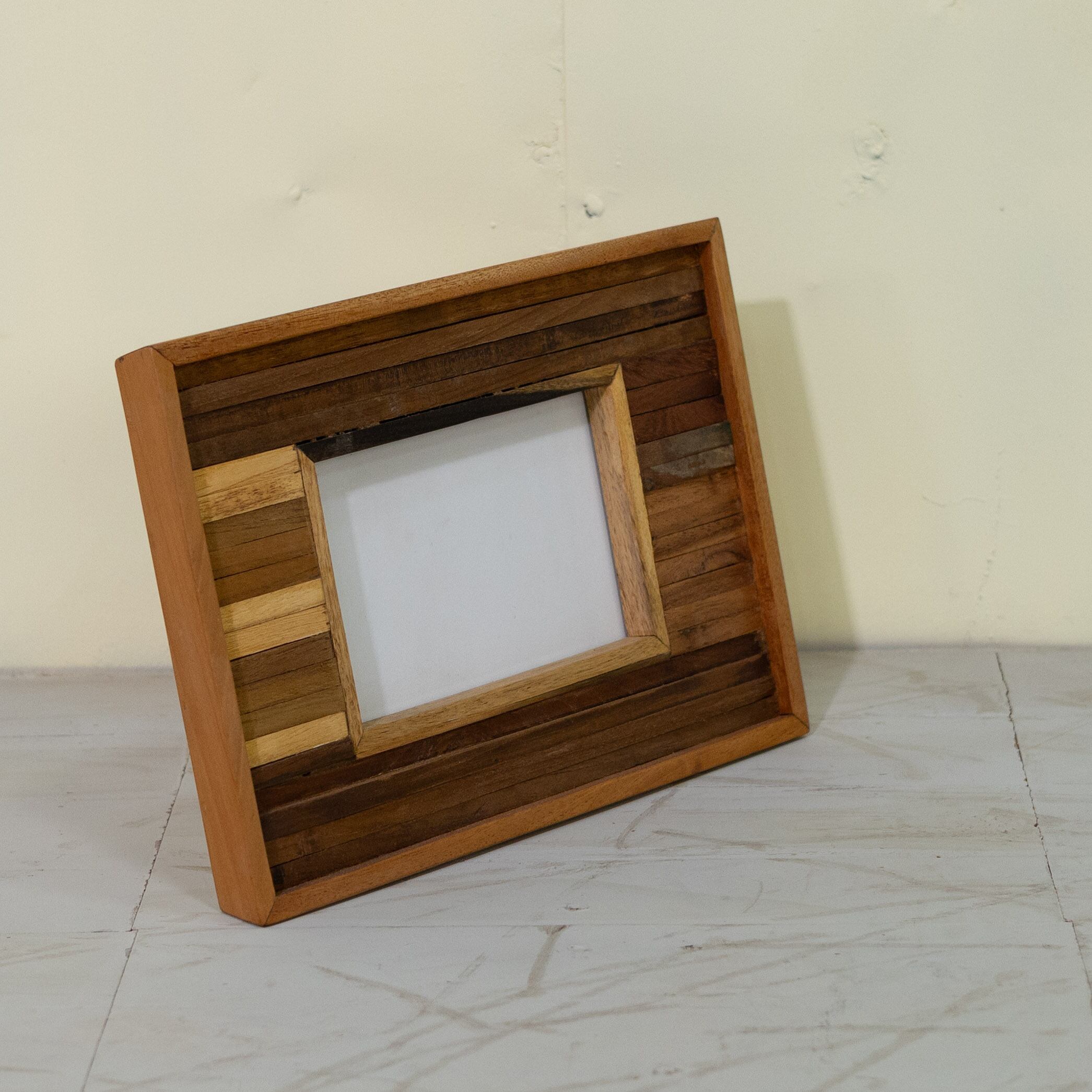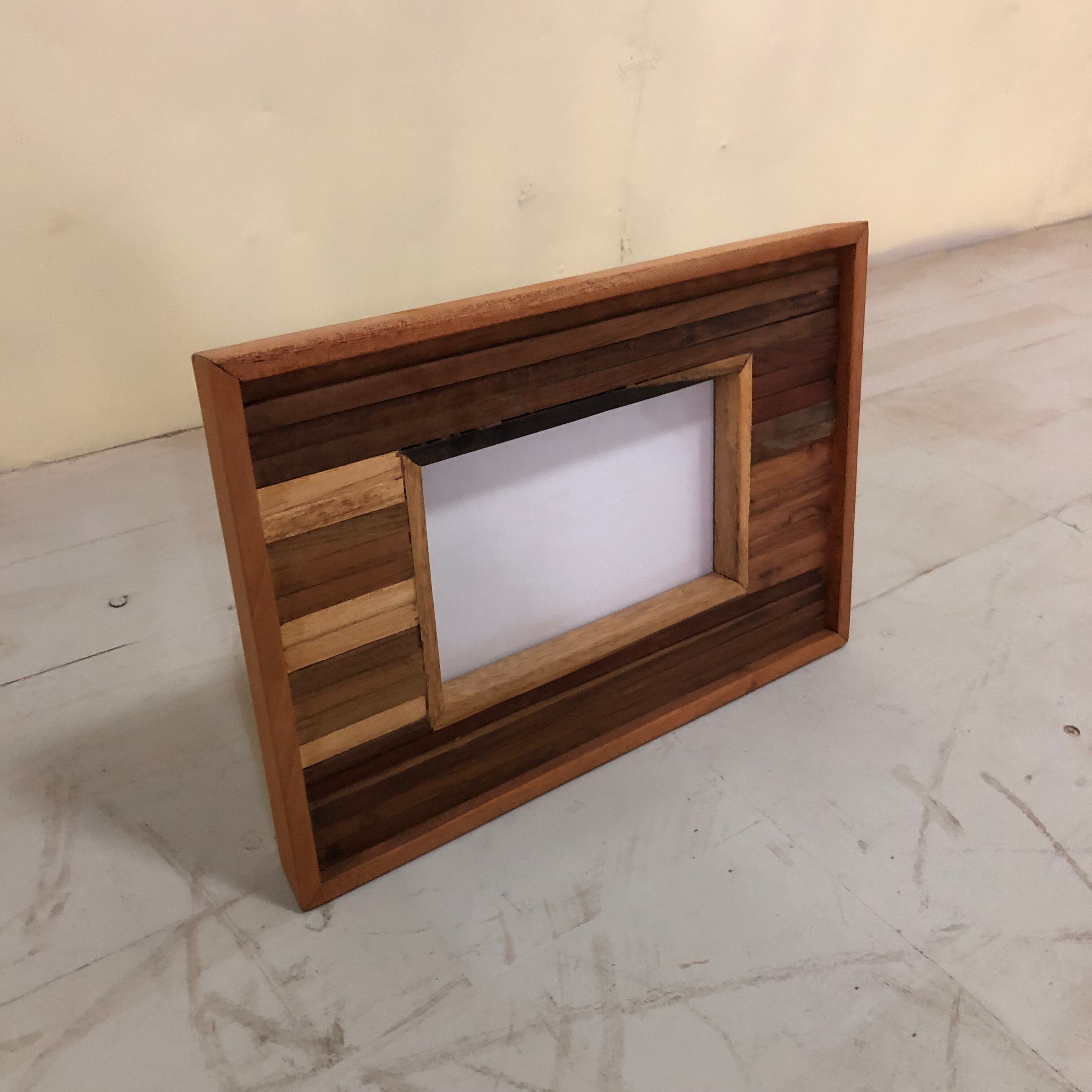 古材チークを一本一本カットして組み合わせた、モザイク模様のフォトフレーム