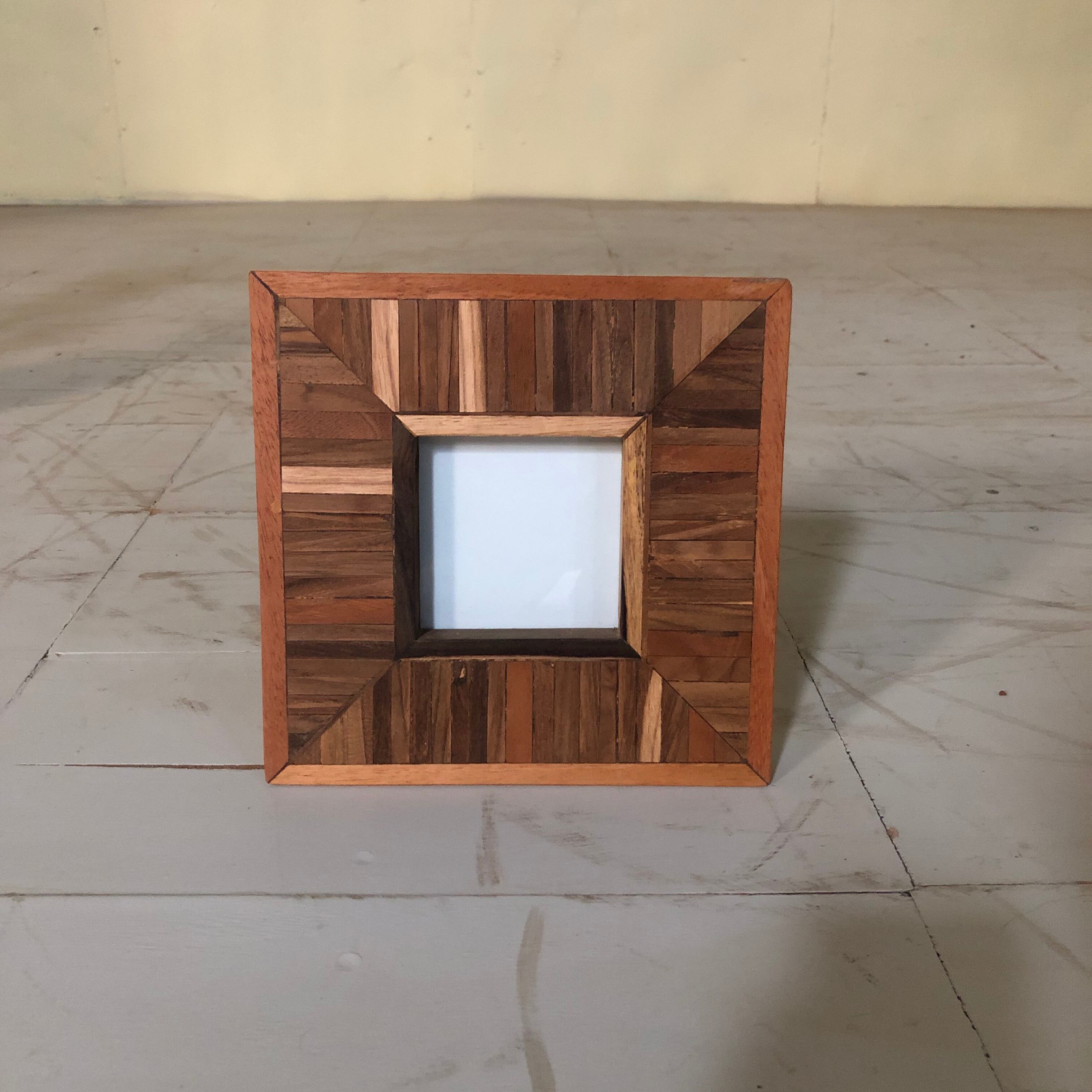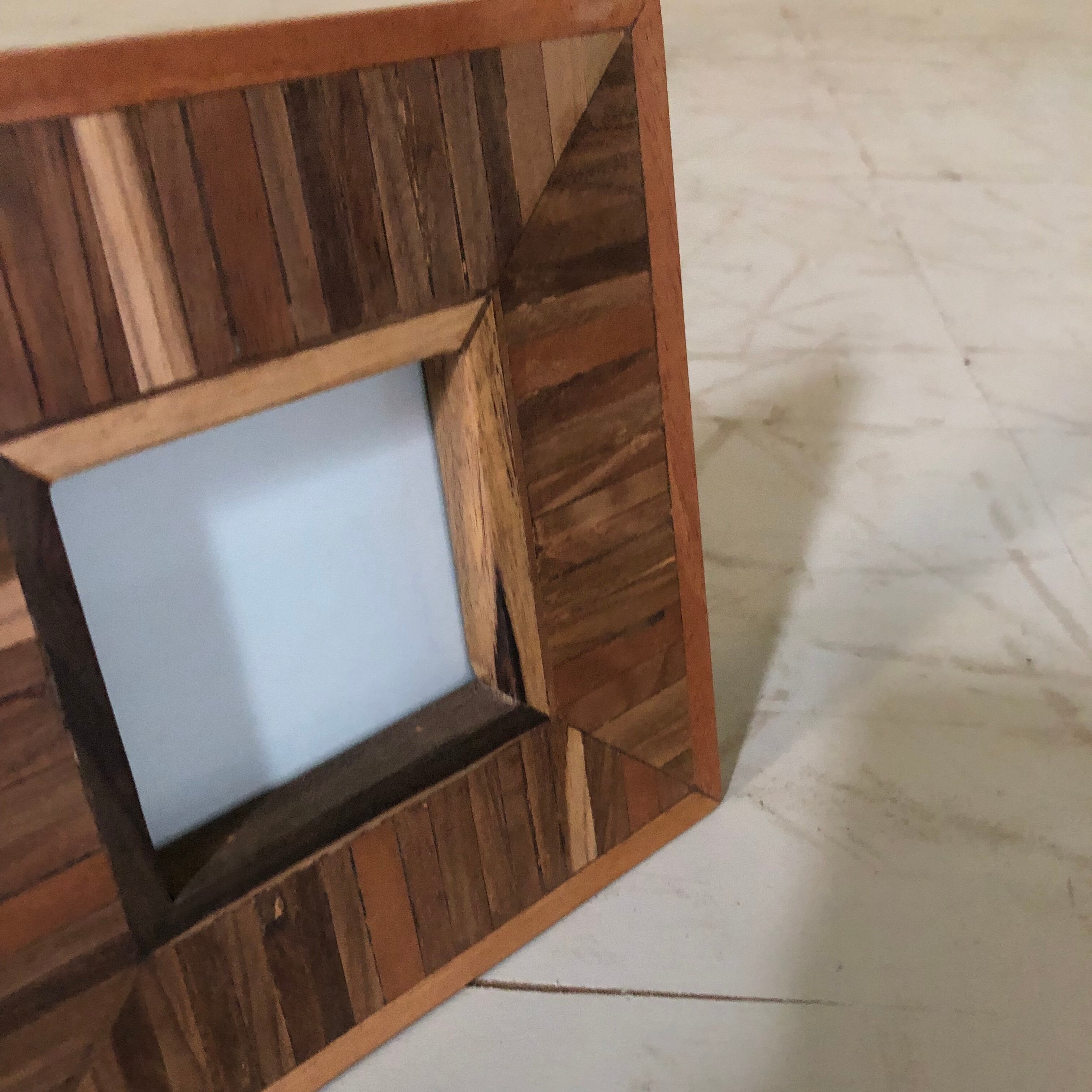 古材チークを一本一本カットして組み合わせた、モザイク模様のフォトフレーム