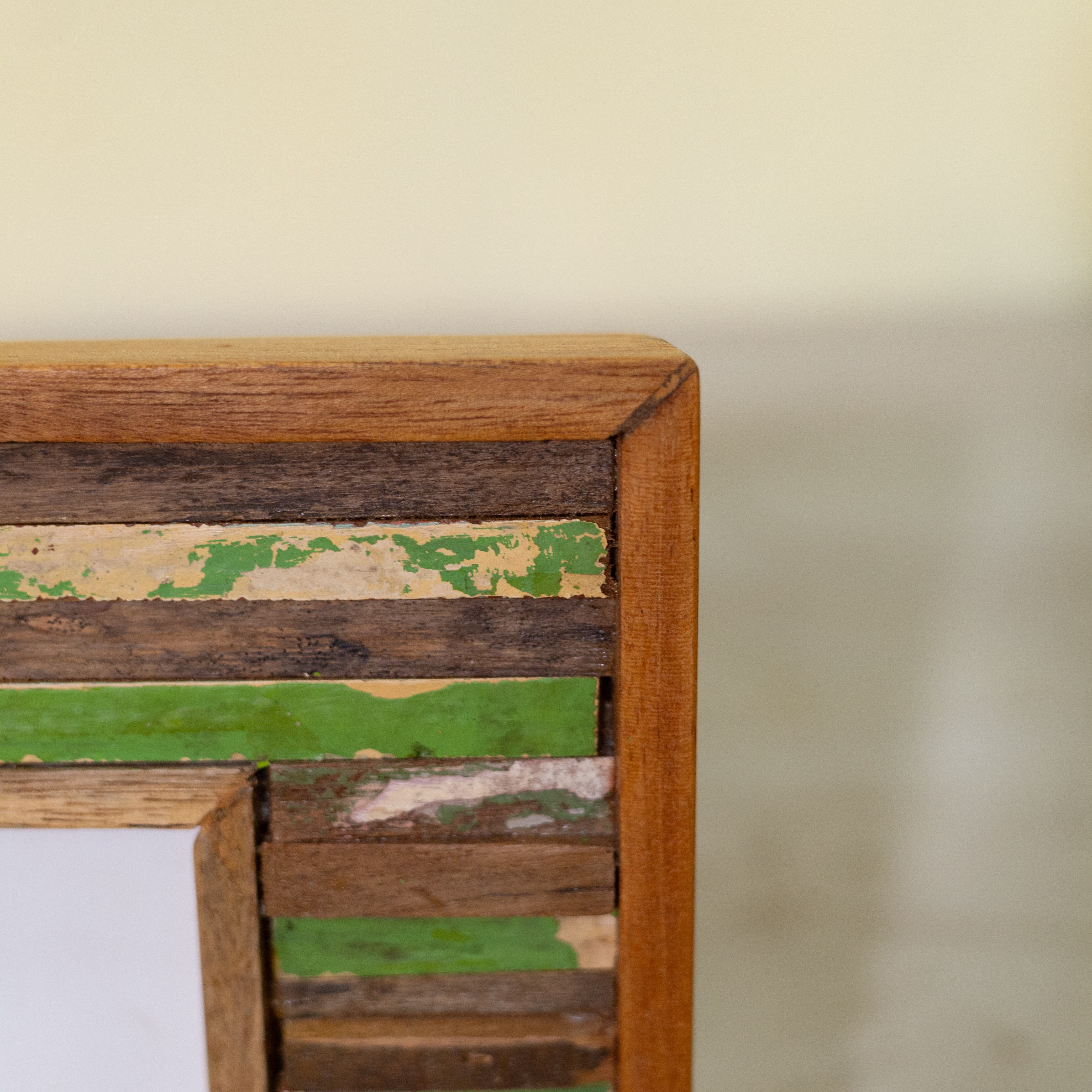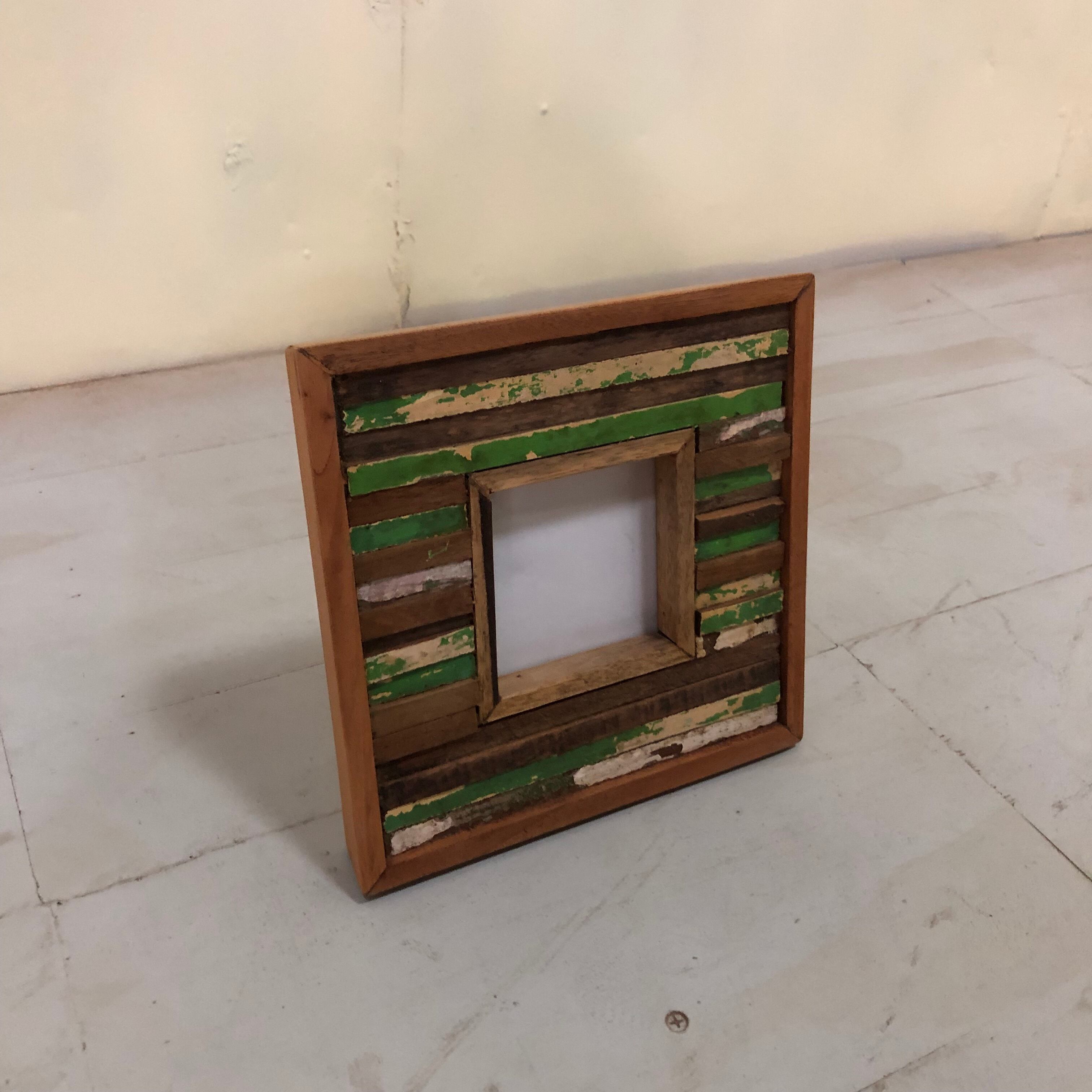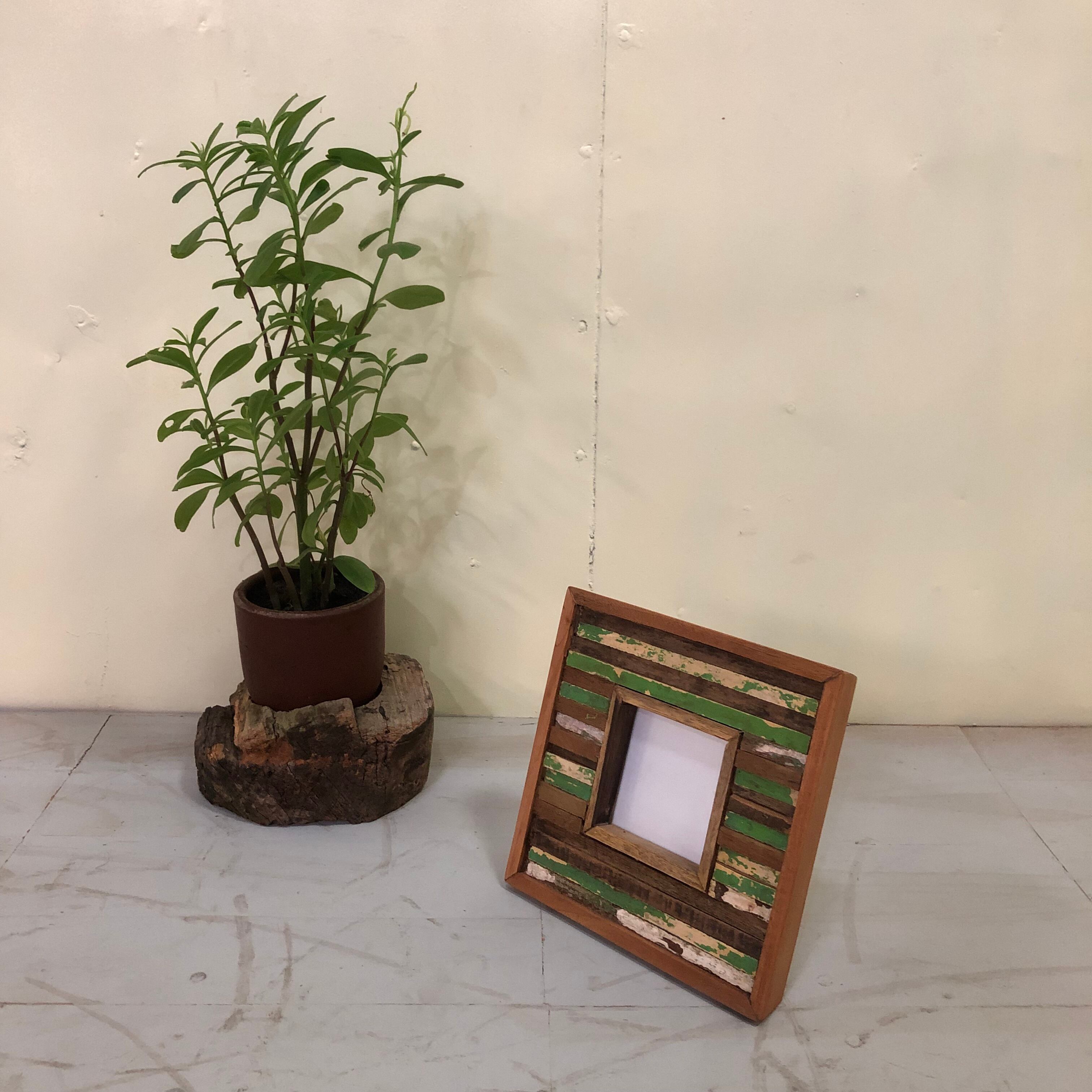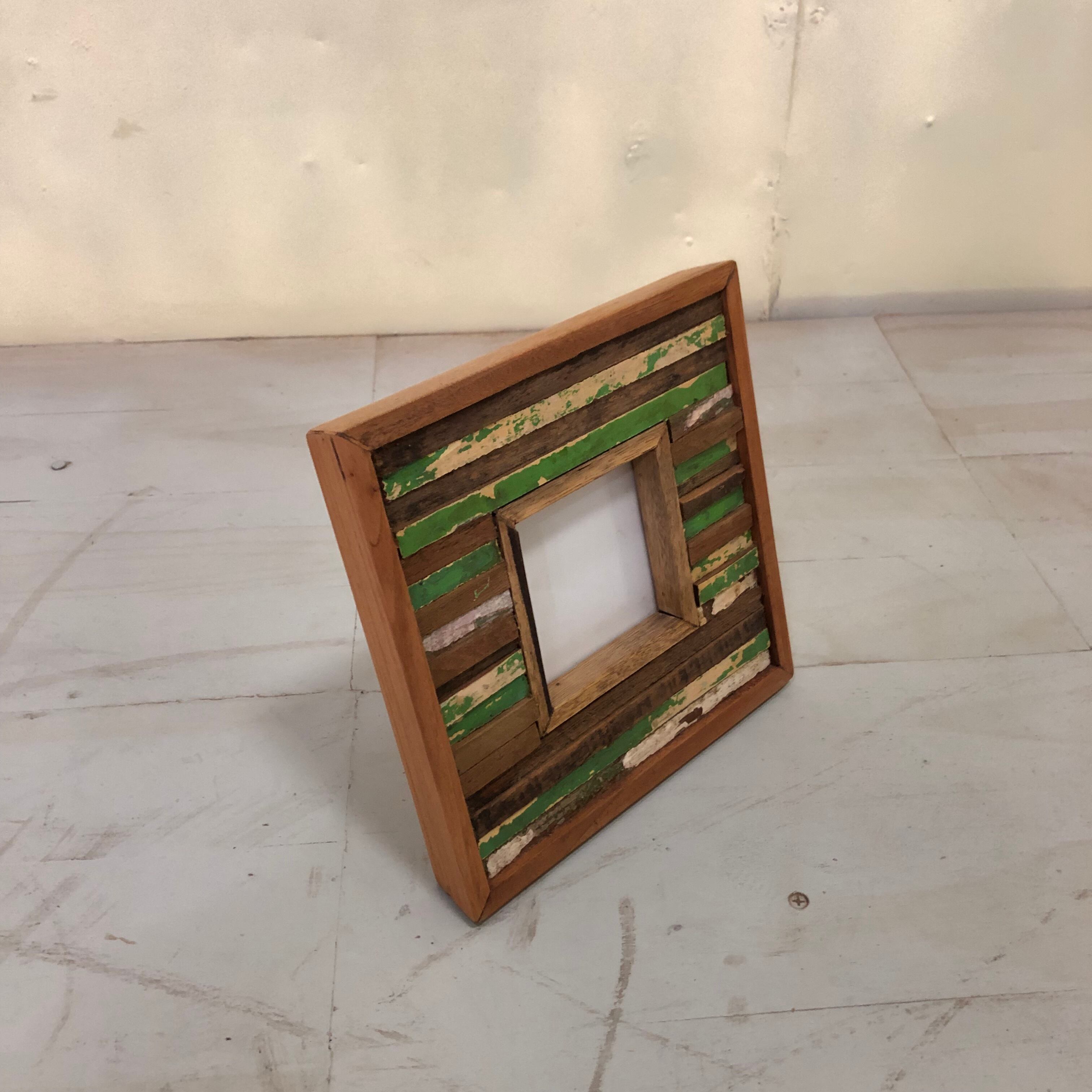 古材チークを一本一本カットして組み合わせた、モザイク模様のフォトフレーム