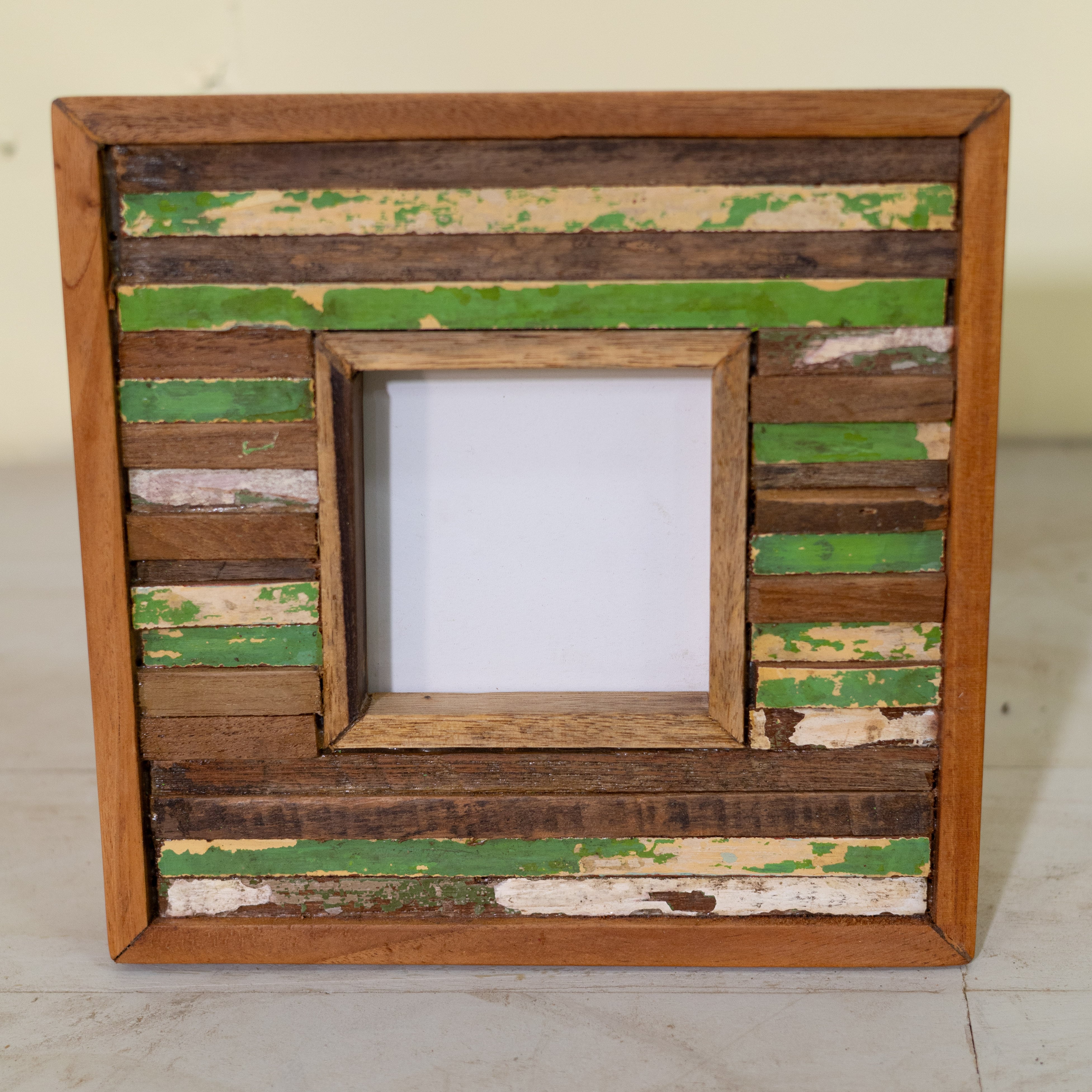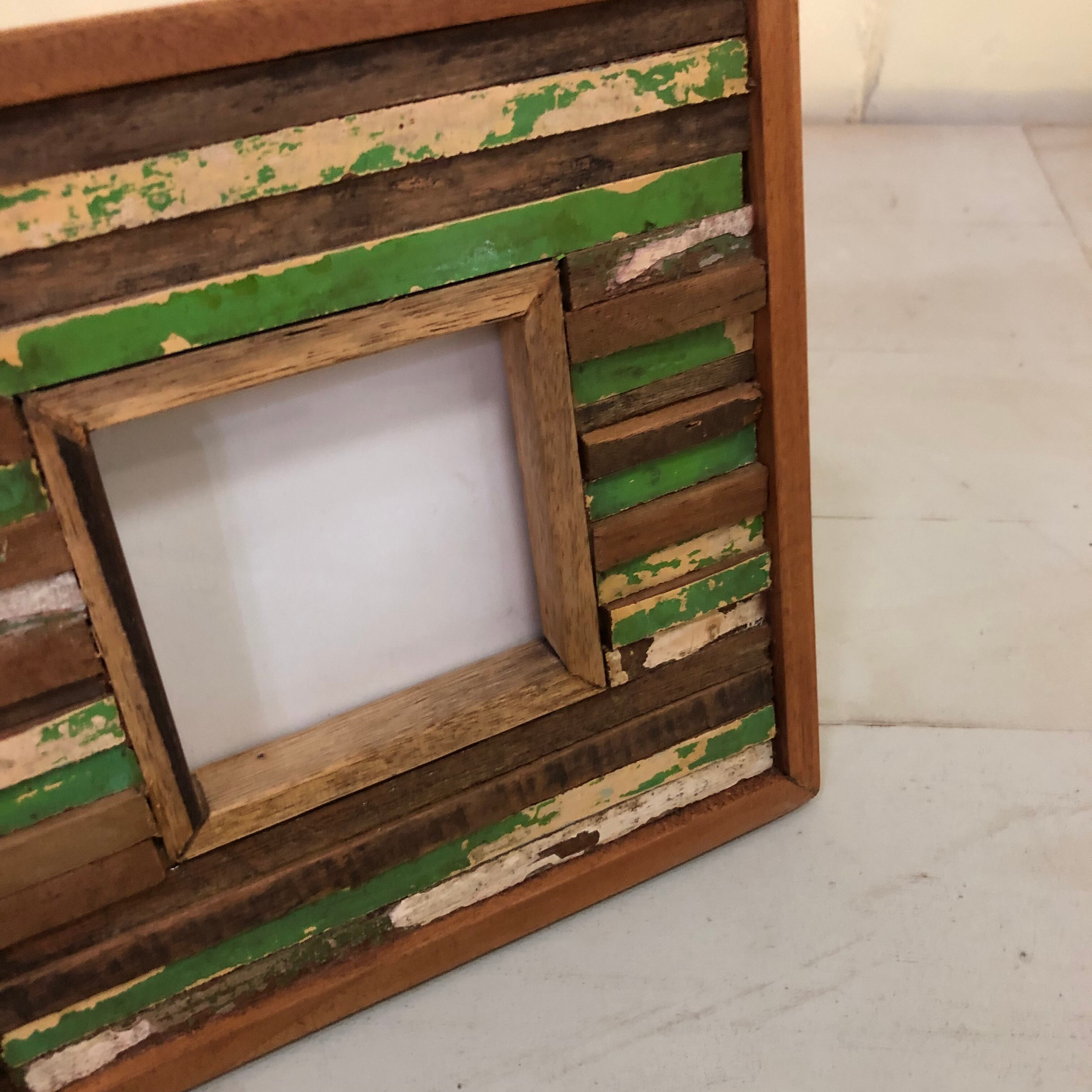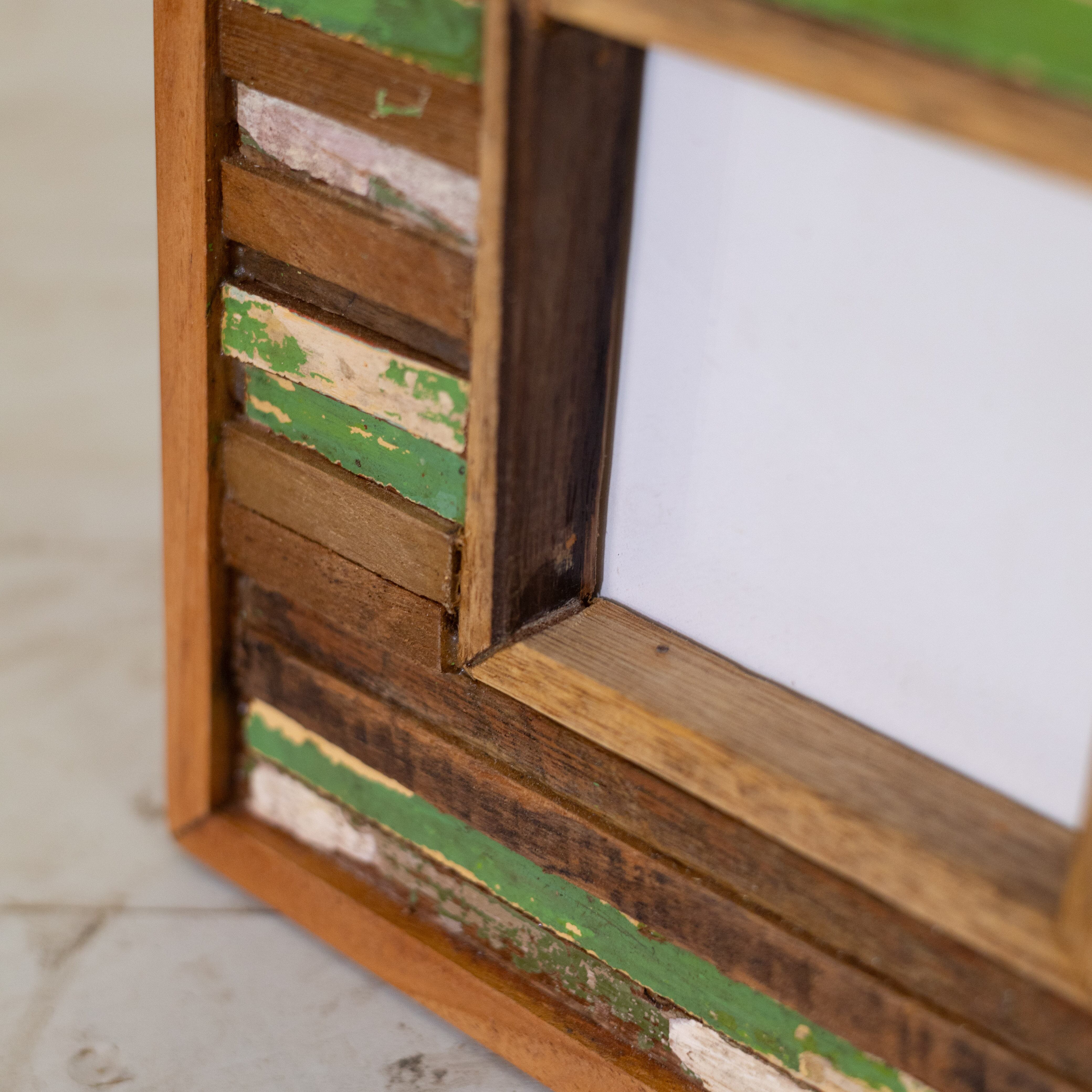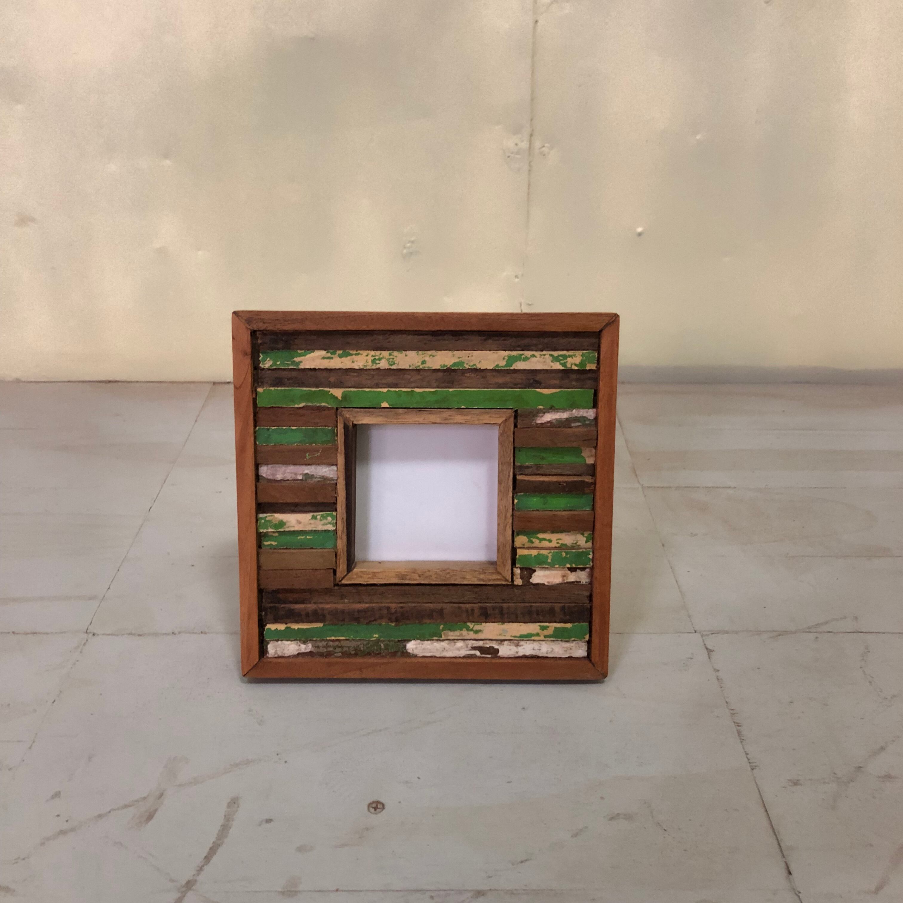古材チークを一本一本カットして組み合わせた、モザイク模様のフォトフレーム