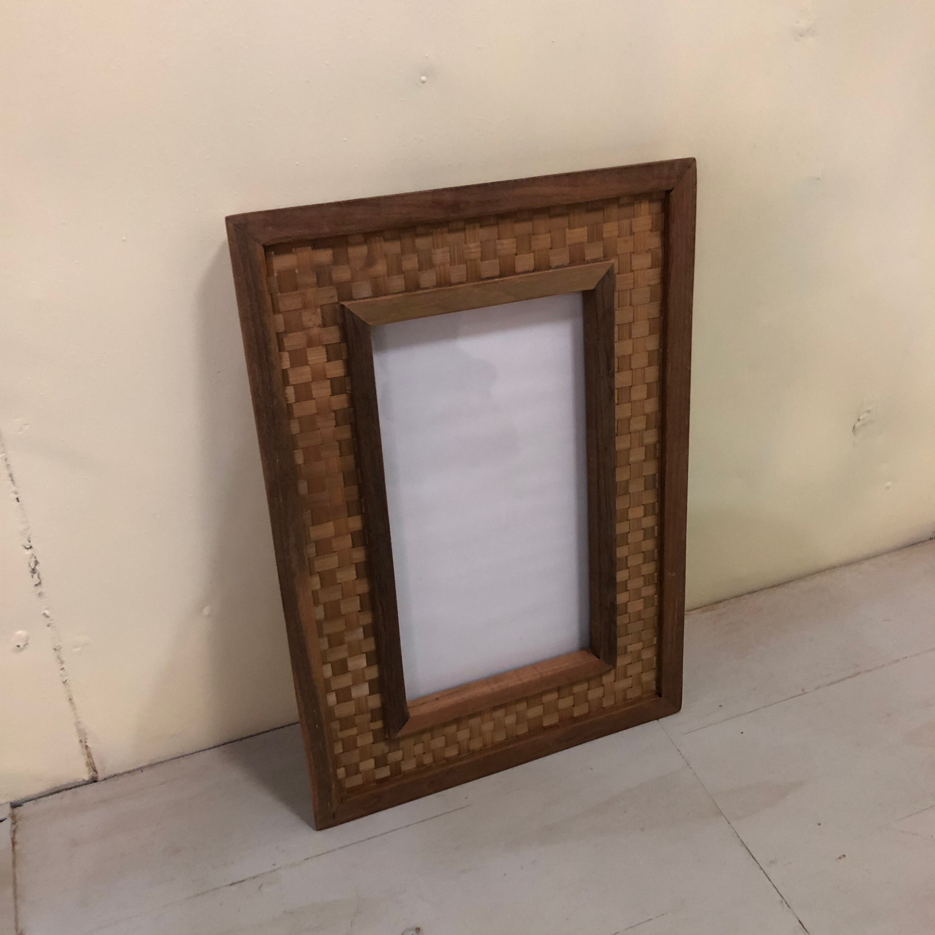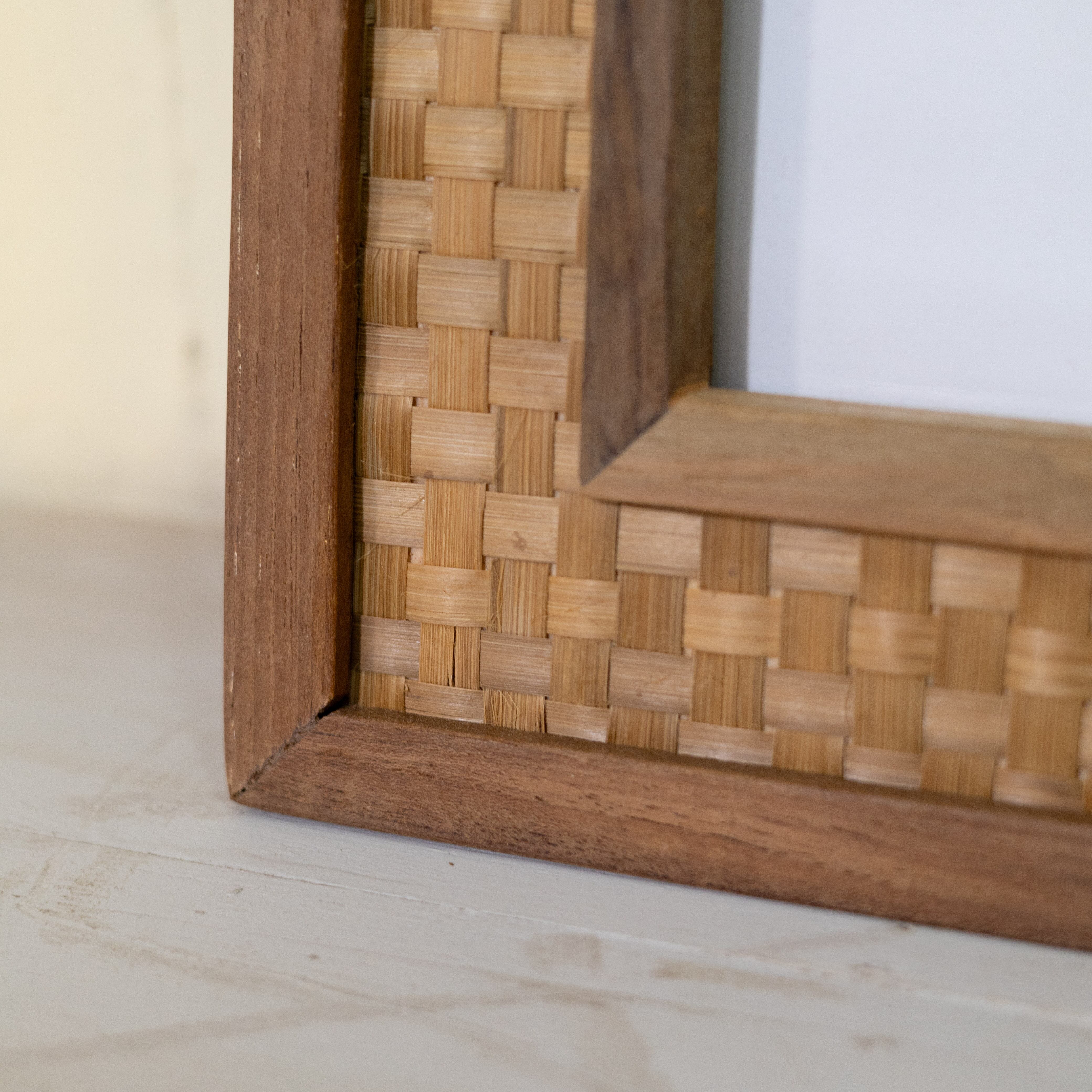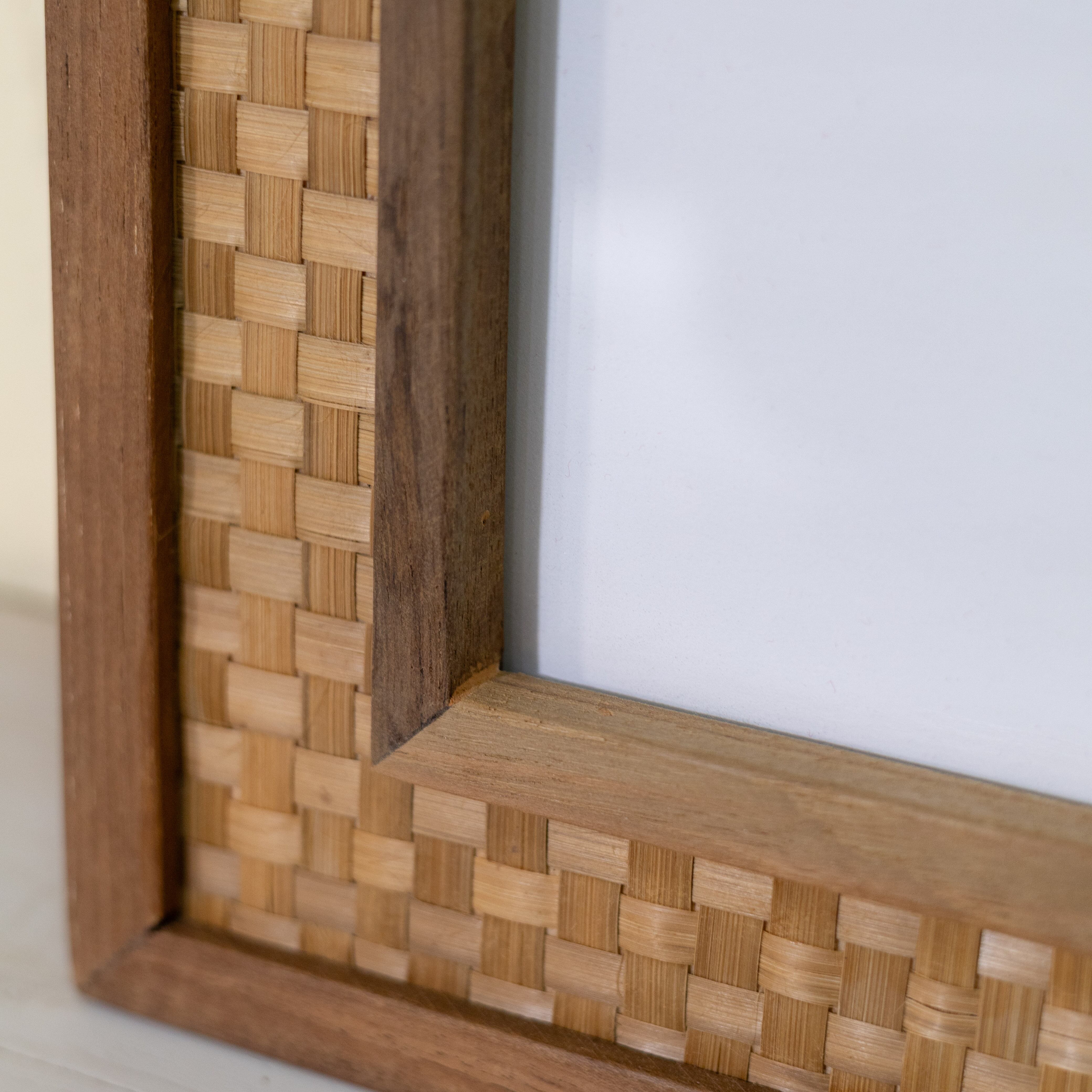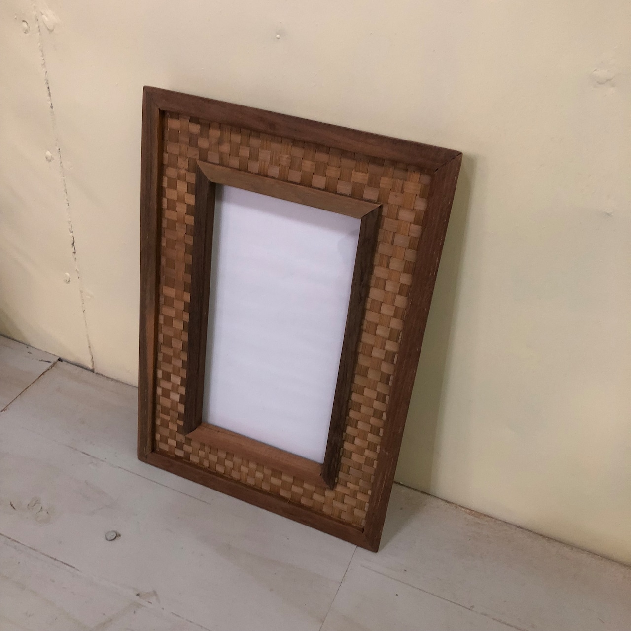 竹の皮を一枚一枚、丁寧に薄く削ぎ、竹籤(たけひご)として編み上げたハンドメイドのフォトフレームです。