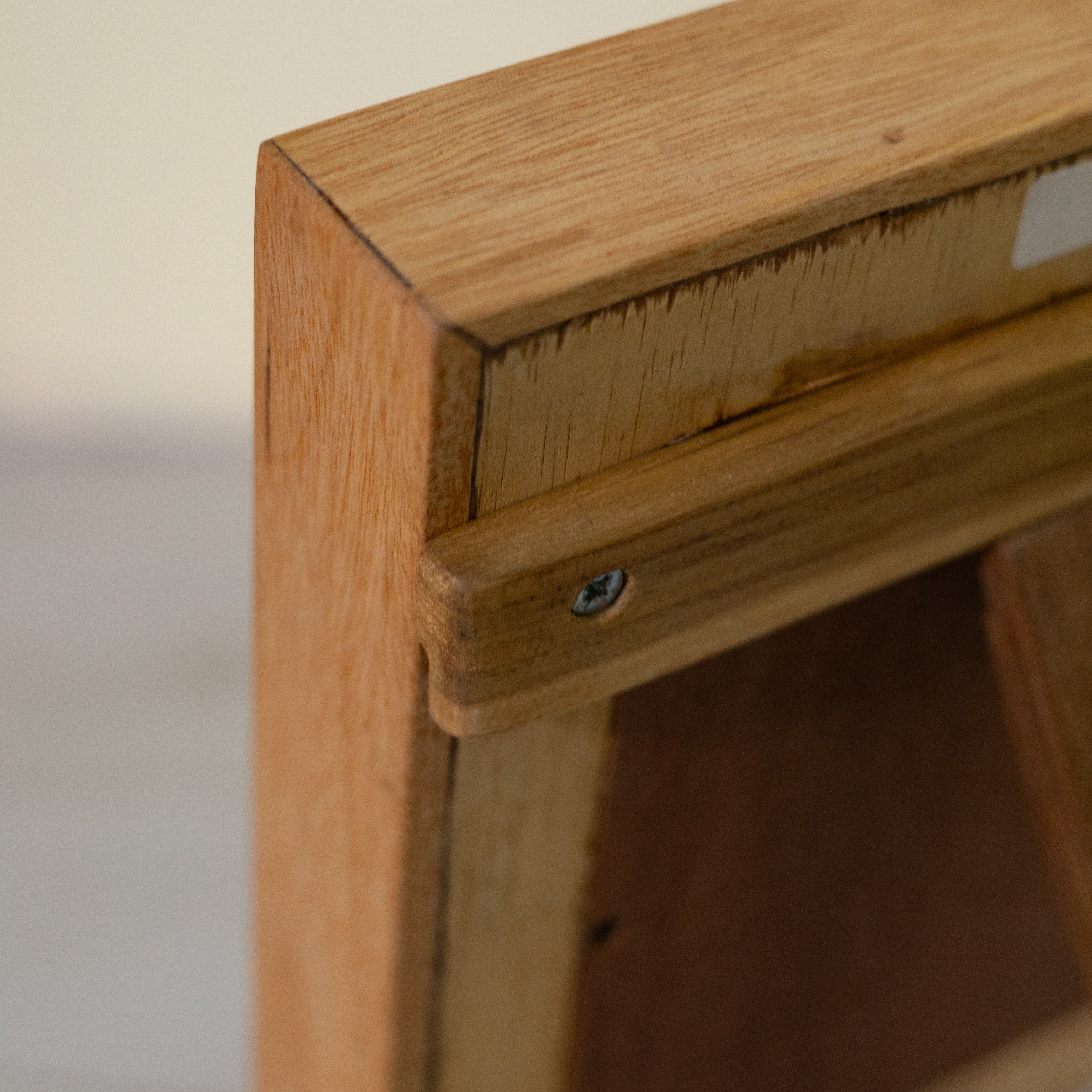 古材チークを一本一本丁寧にカットし、組み合わせて仕上げた、モザイク模様のデスクミラー。