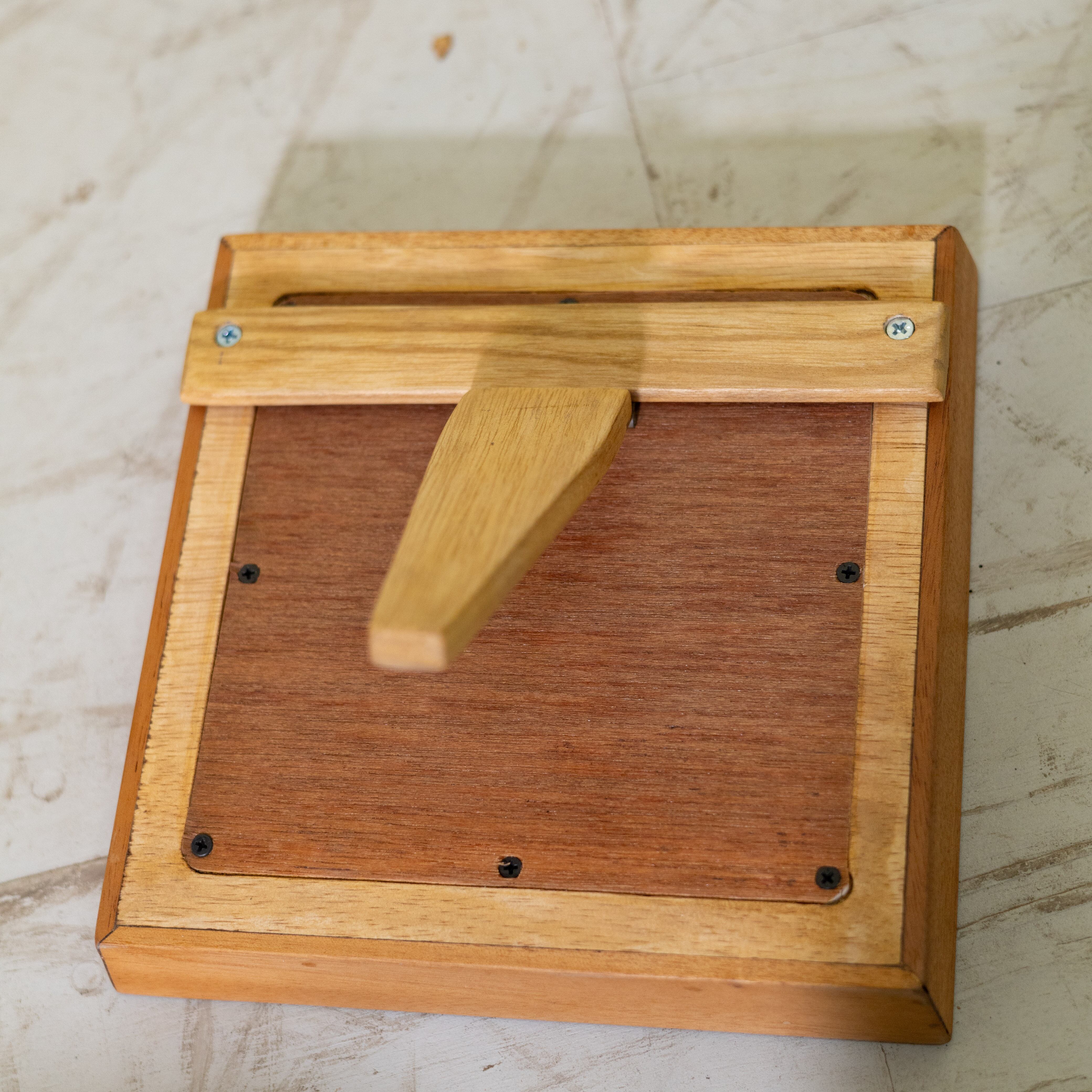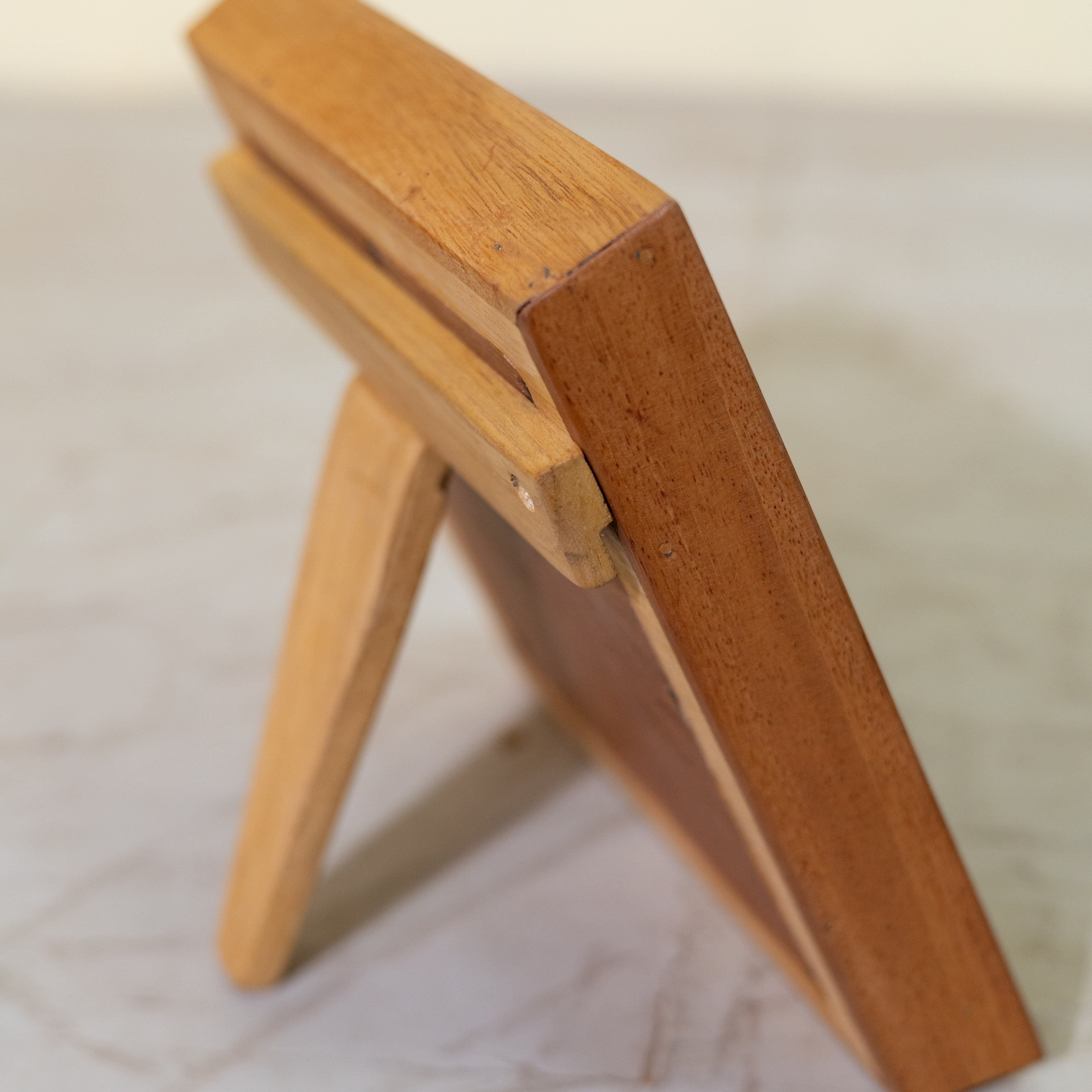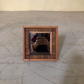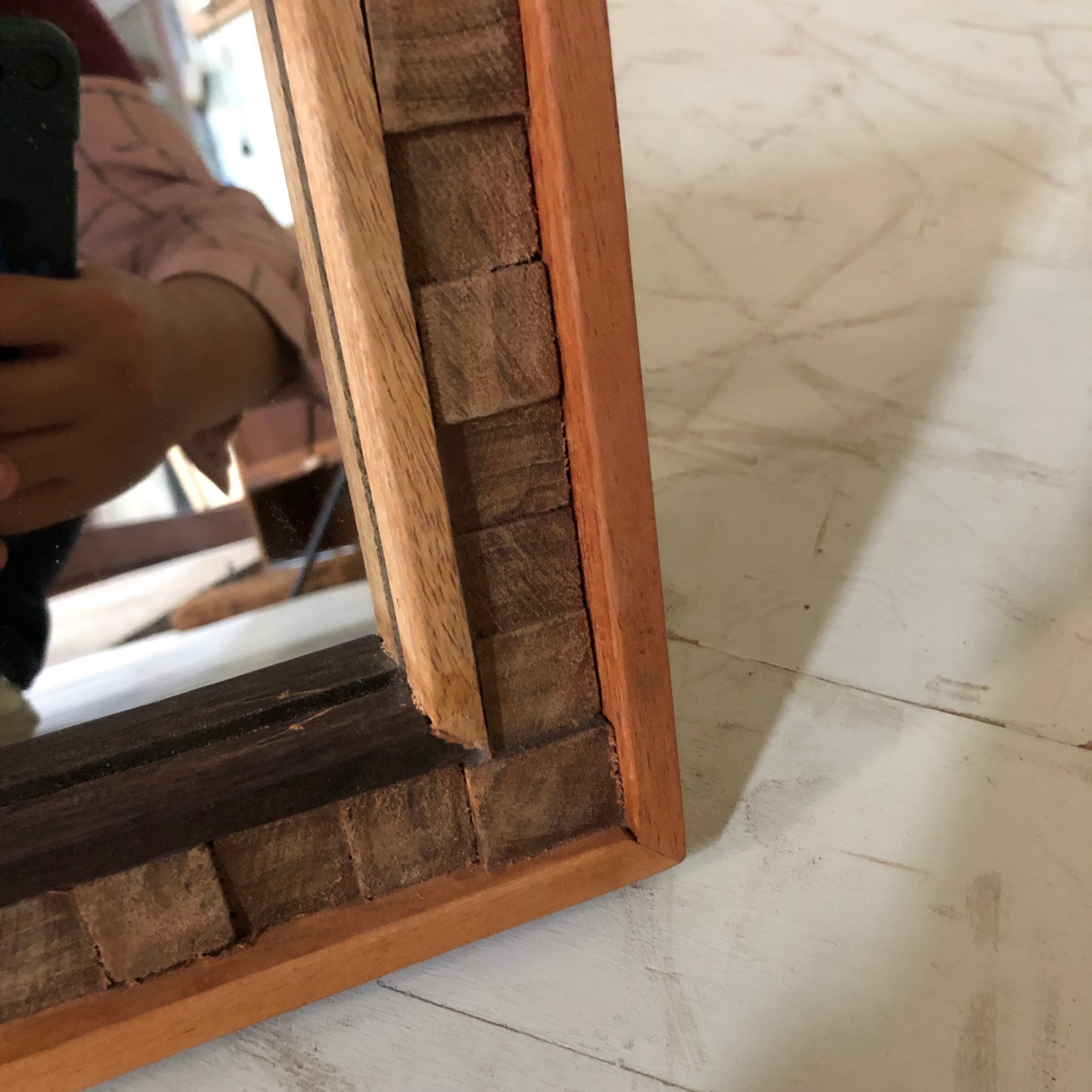 古材チークを一本一本丁寧にカットし、組み合わせて仕上げた、モザイク模様のデスクミラー。