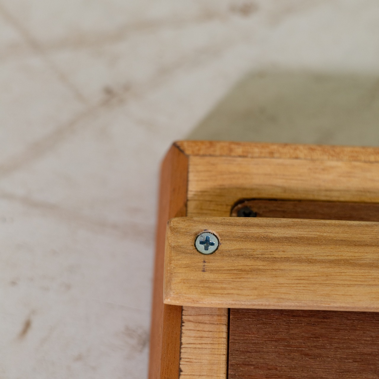 チークならではの深みのある色合いと、手仕事の温もりが調和し、空間に自然な存在感を添えます。