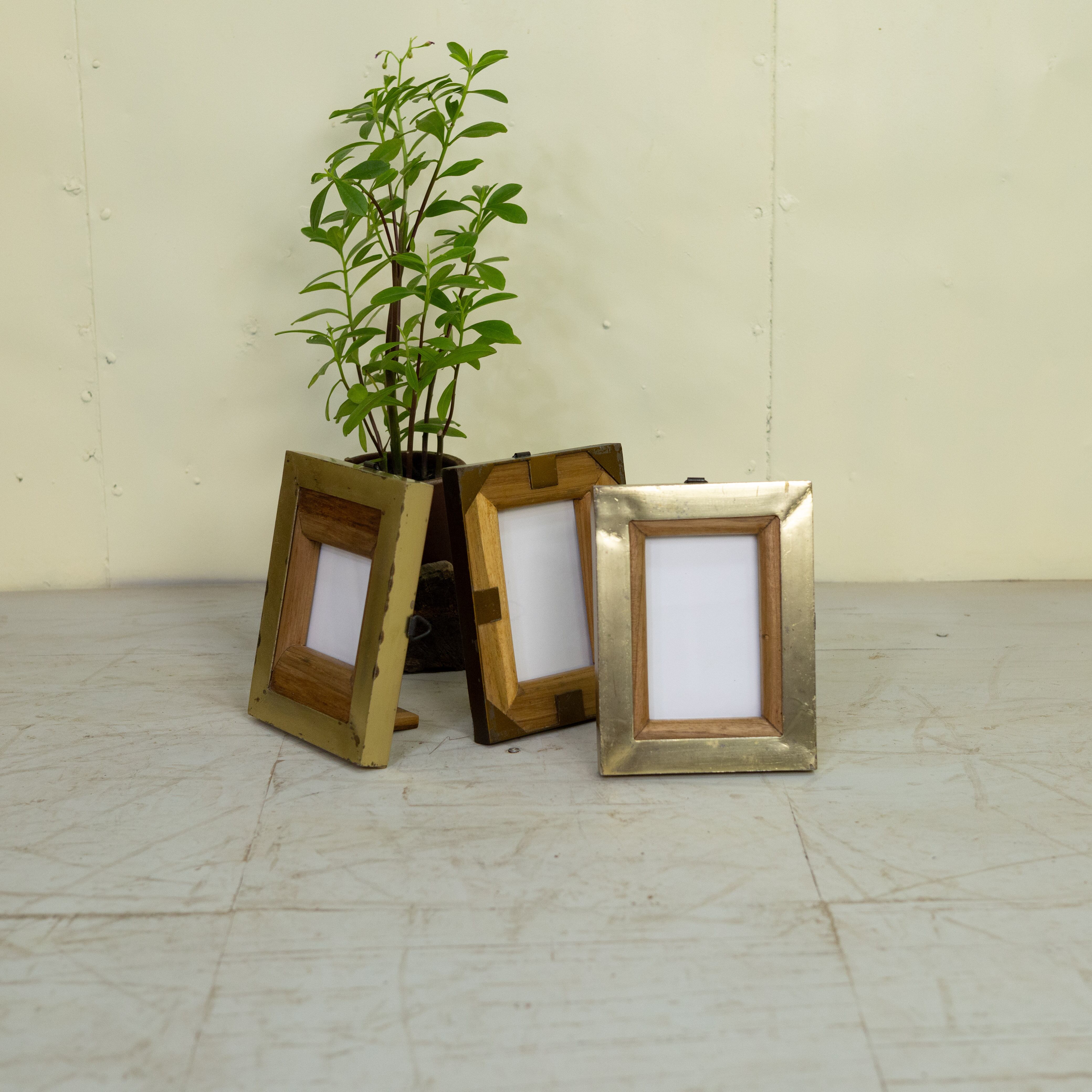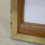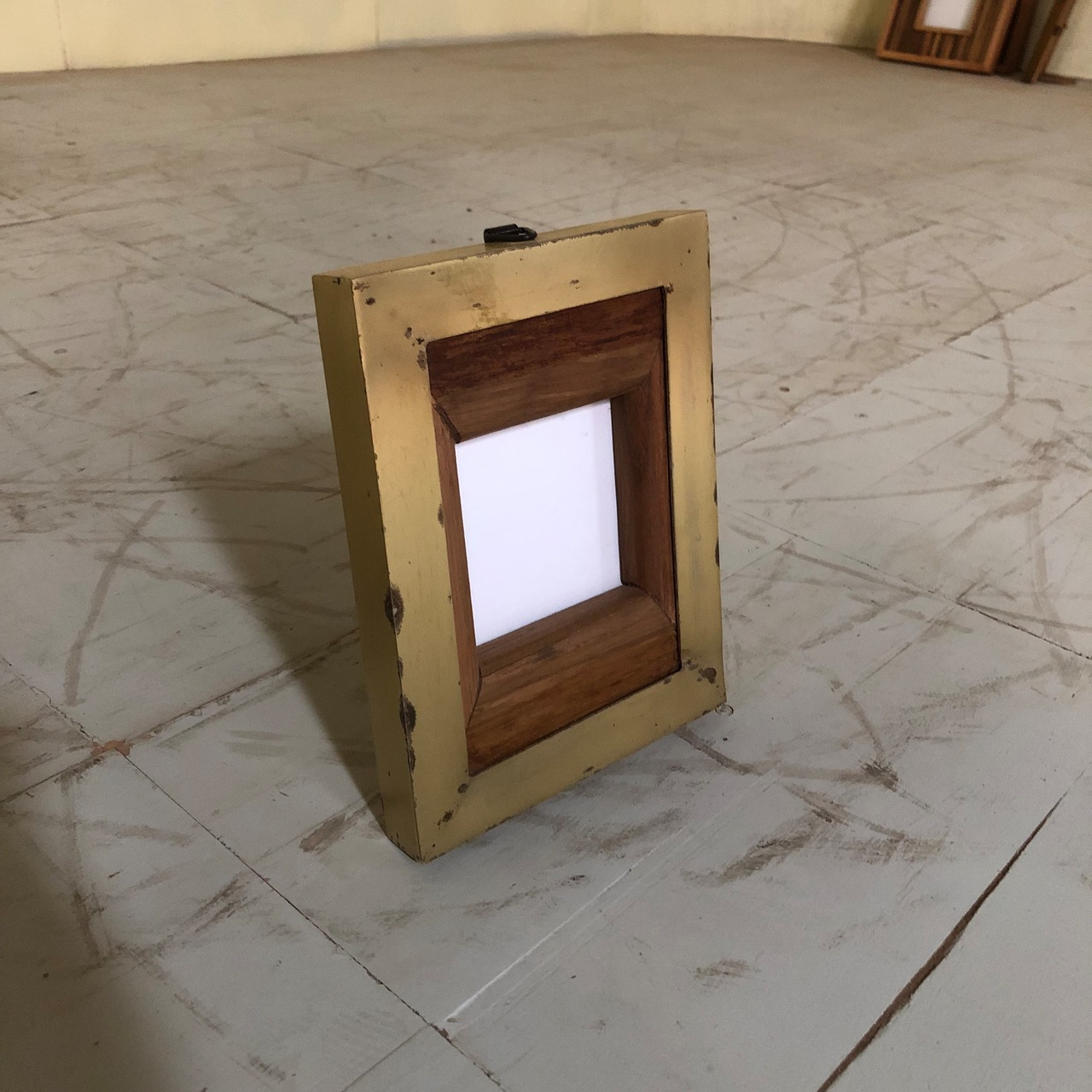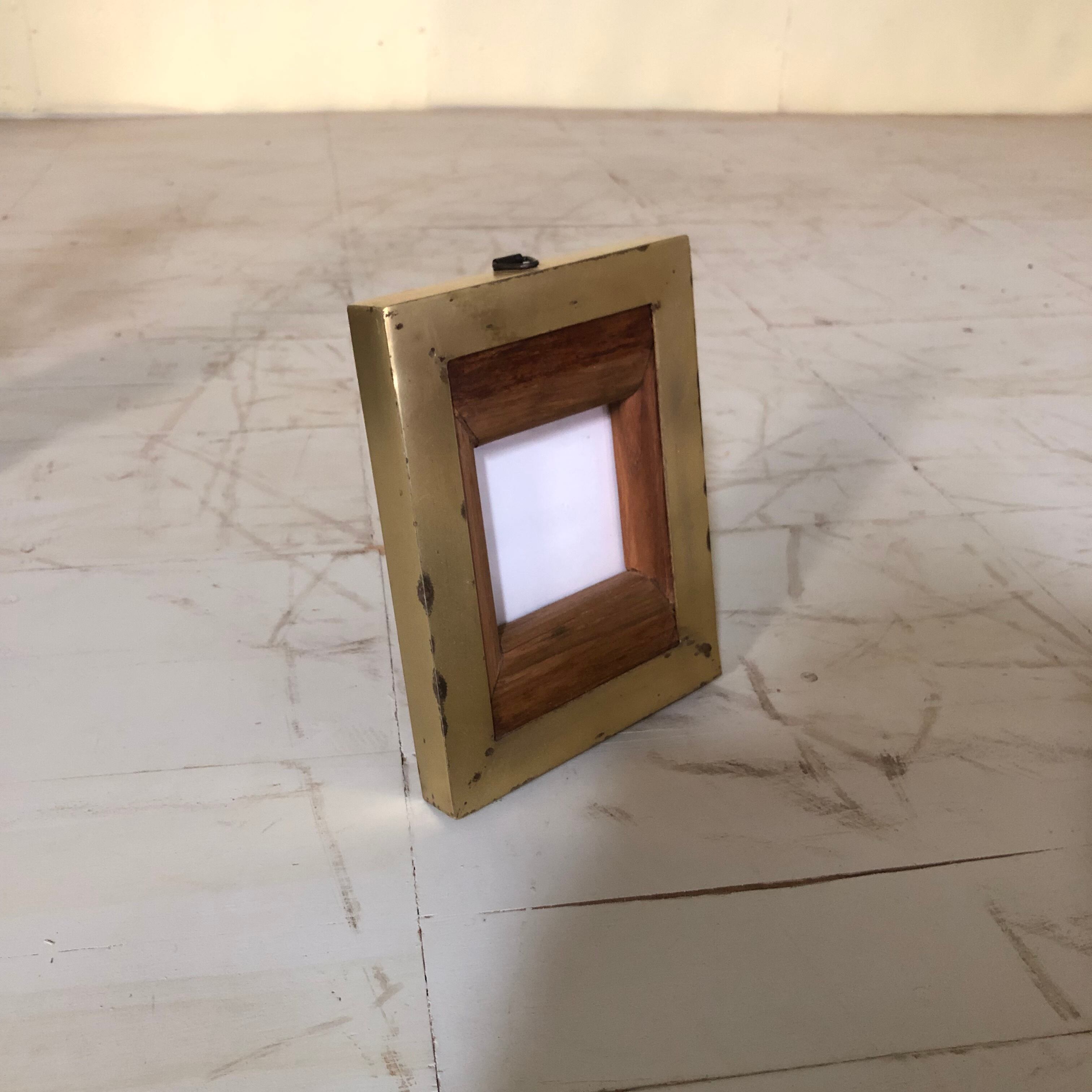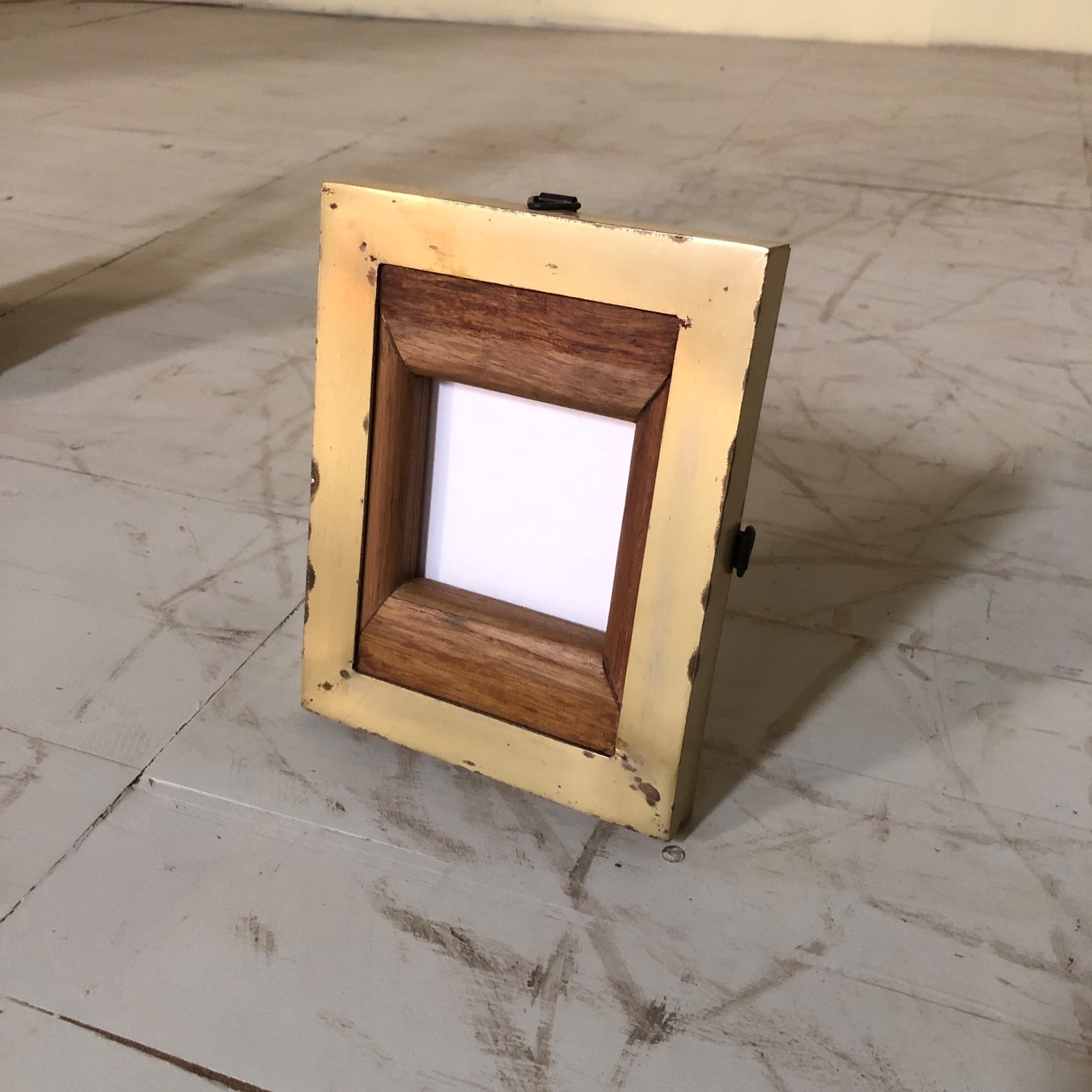 木製フレームを真鍮メッキのフレームにはめ込んだ、コンビネーションデザインのフォトフレームです。
