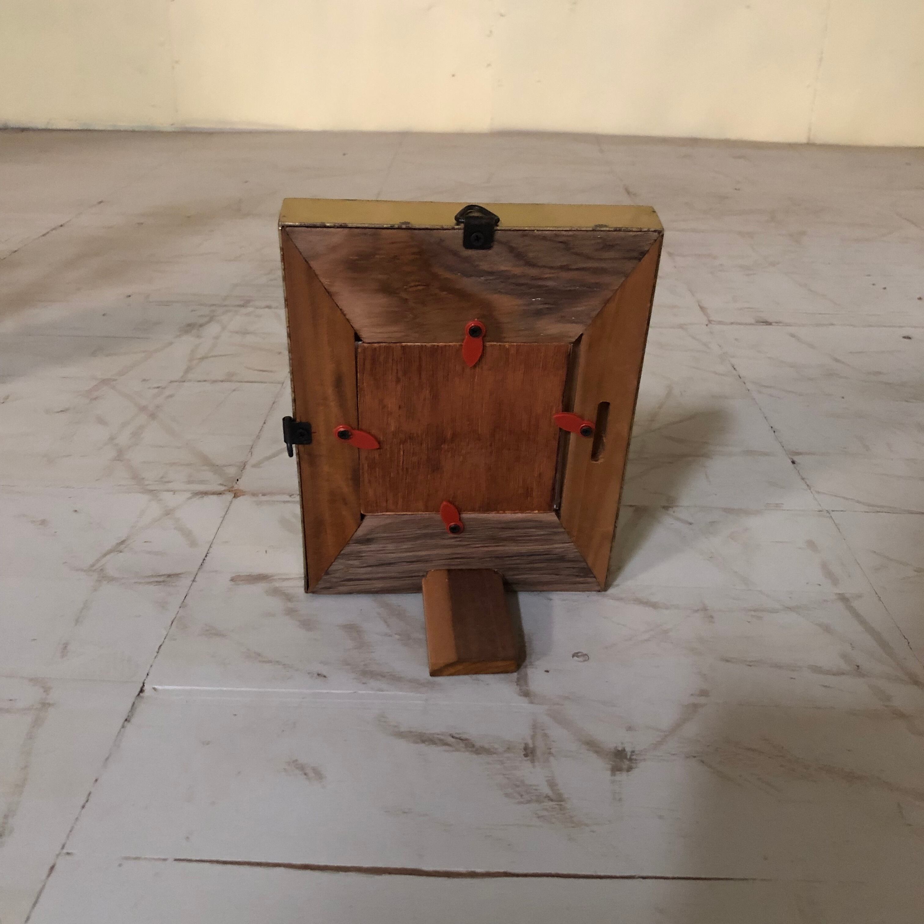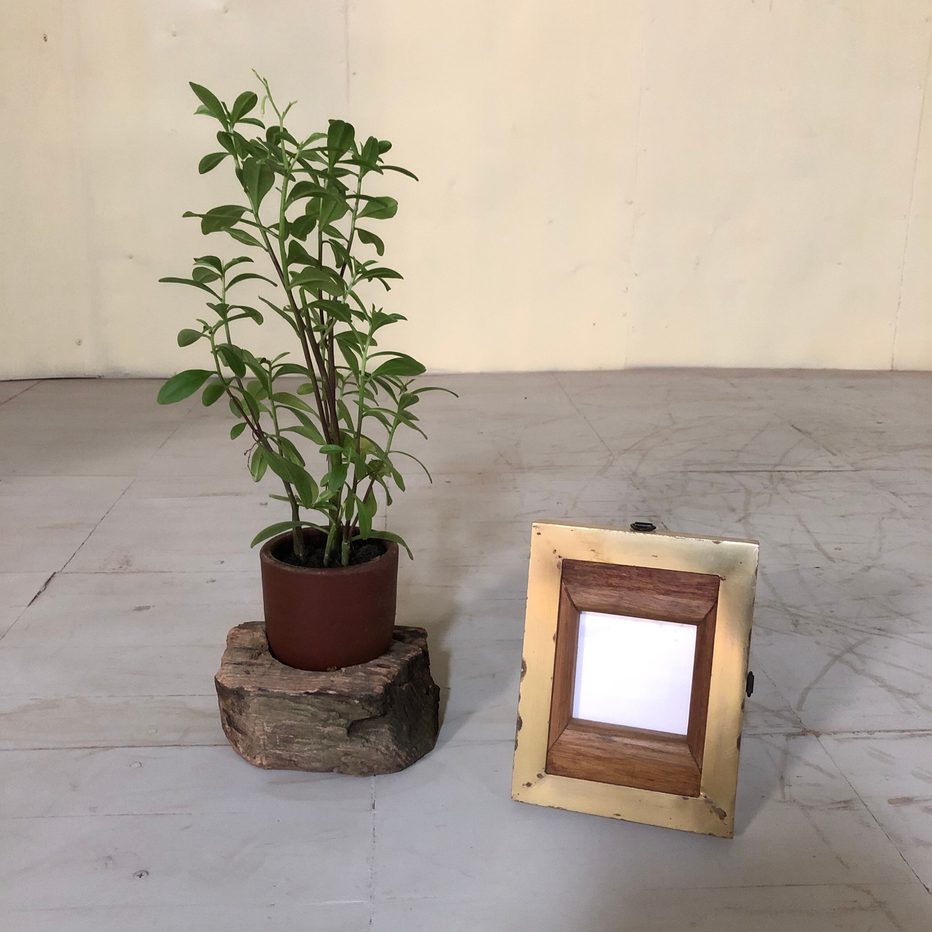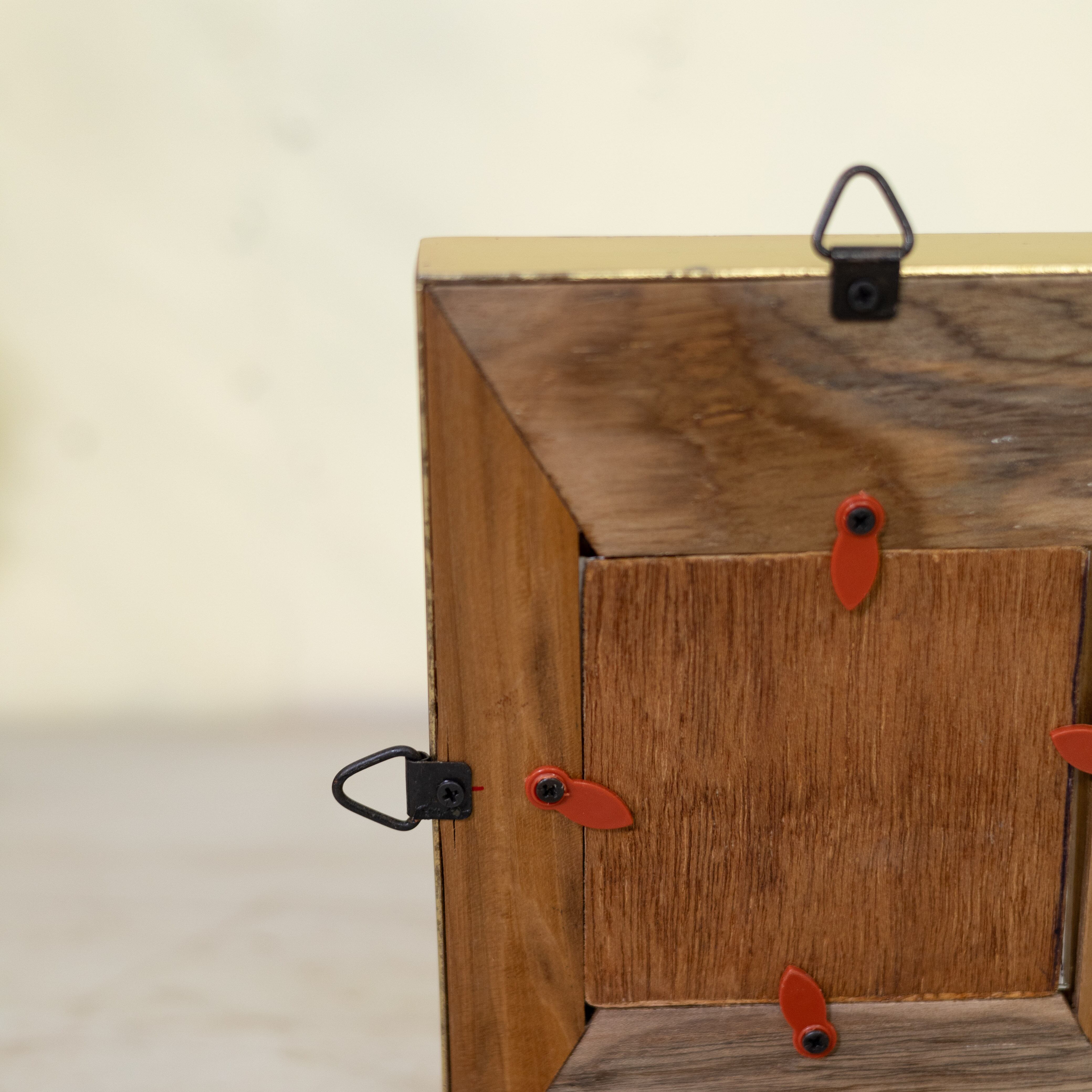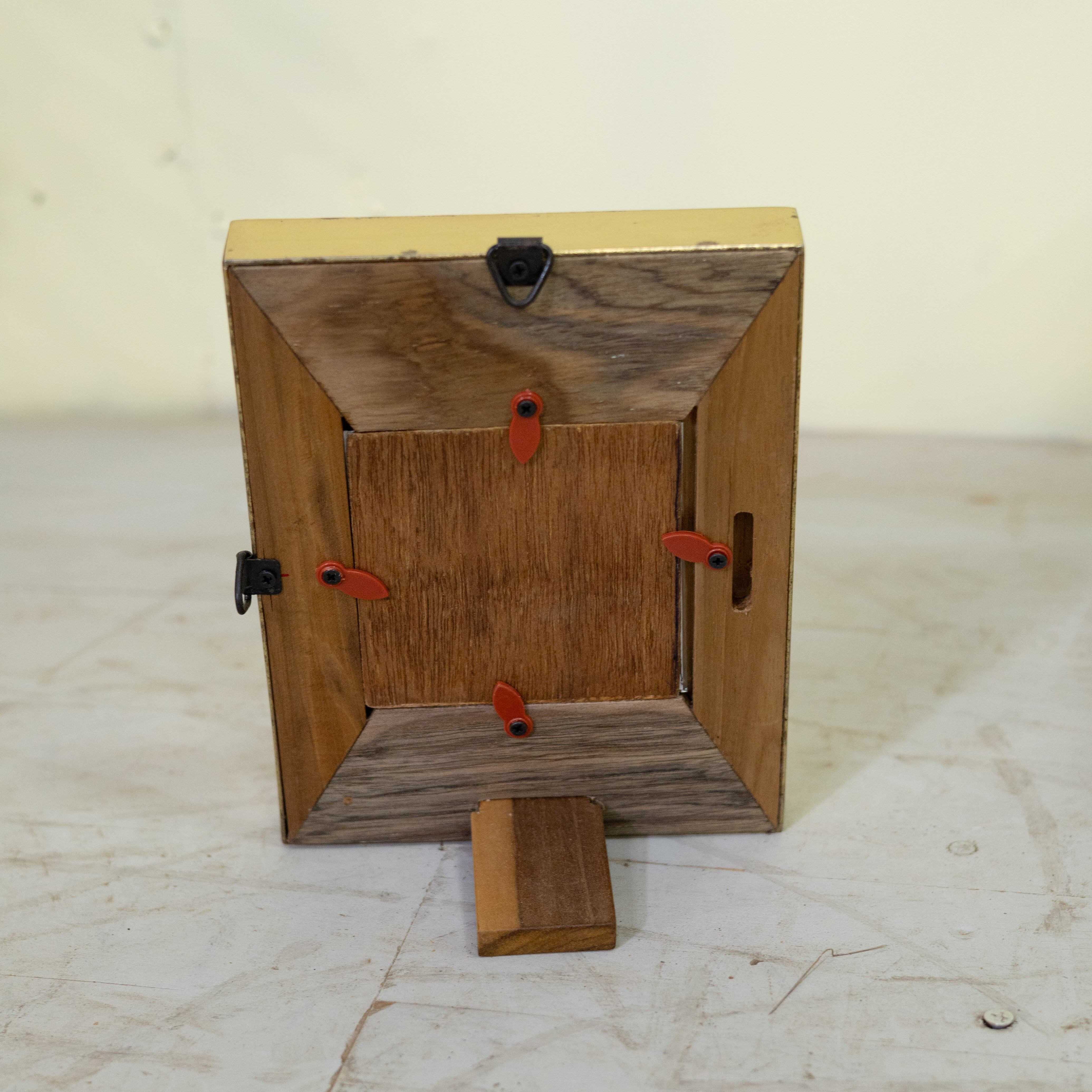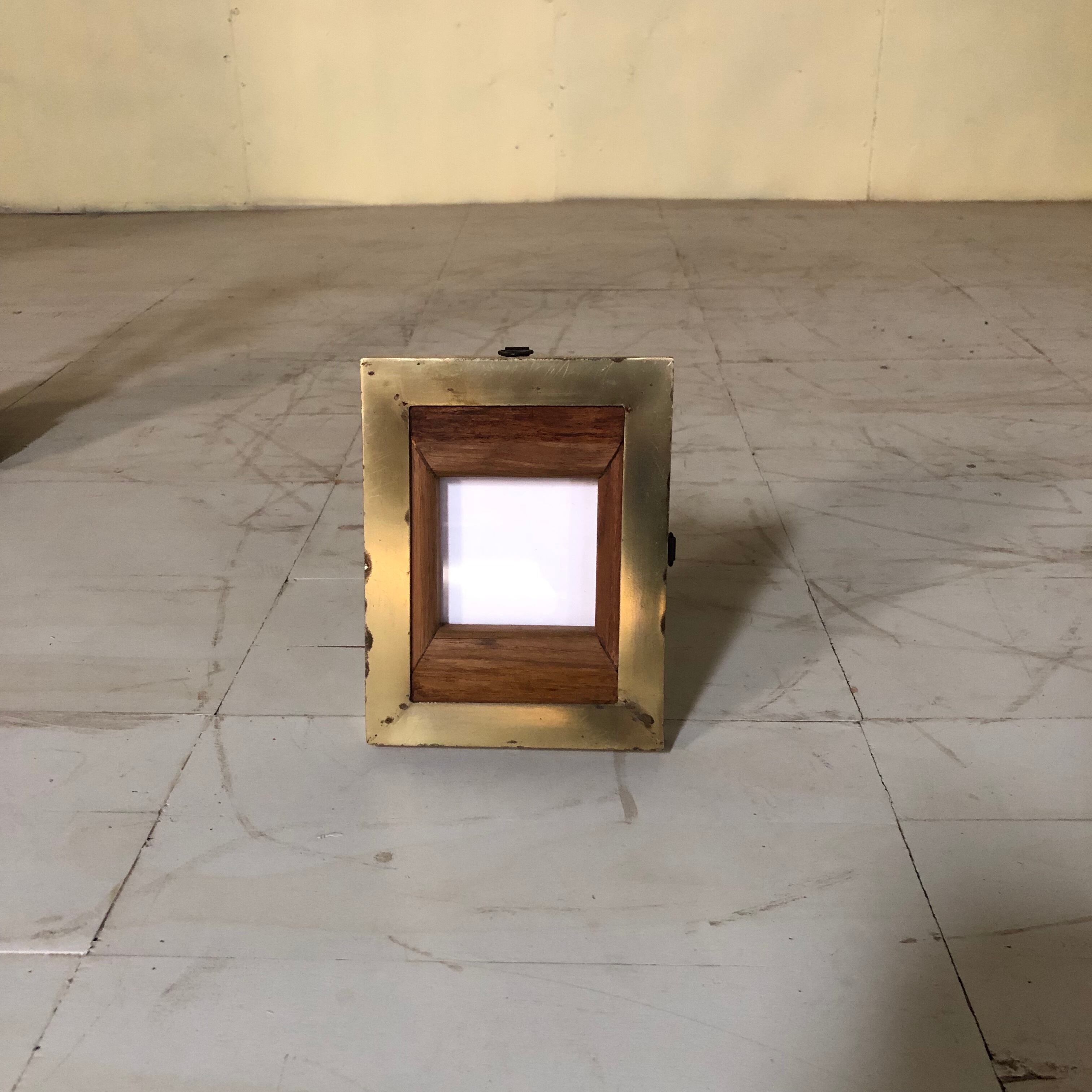 木製フレームを真鍮メッキのフレームにはめ込んだ、コンビネーションデザインのフォトフレームです。