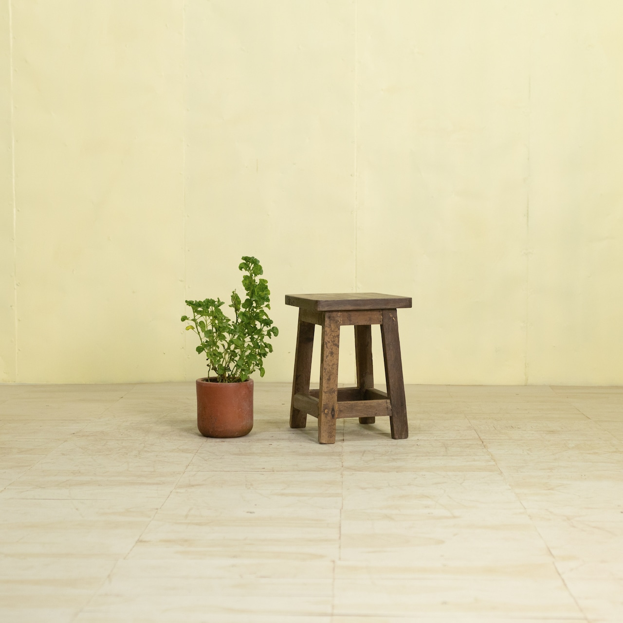 実際にジャワ島の紡績工場で長年使用されていた木製スツールを、丁寧にレストアしました。