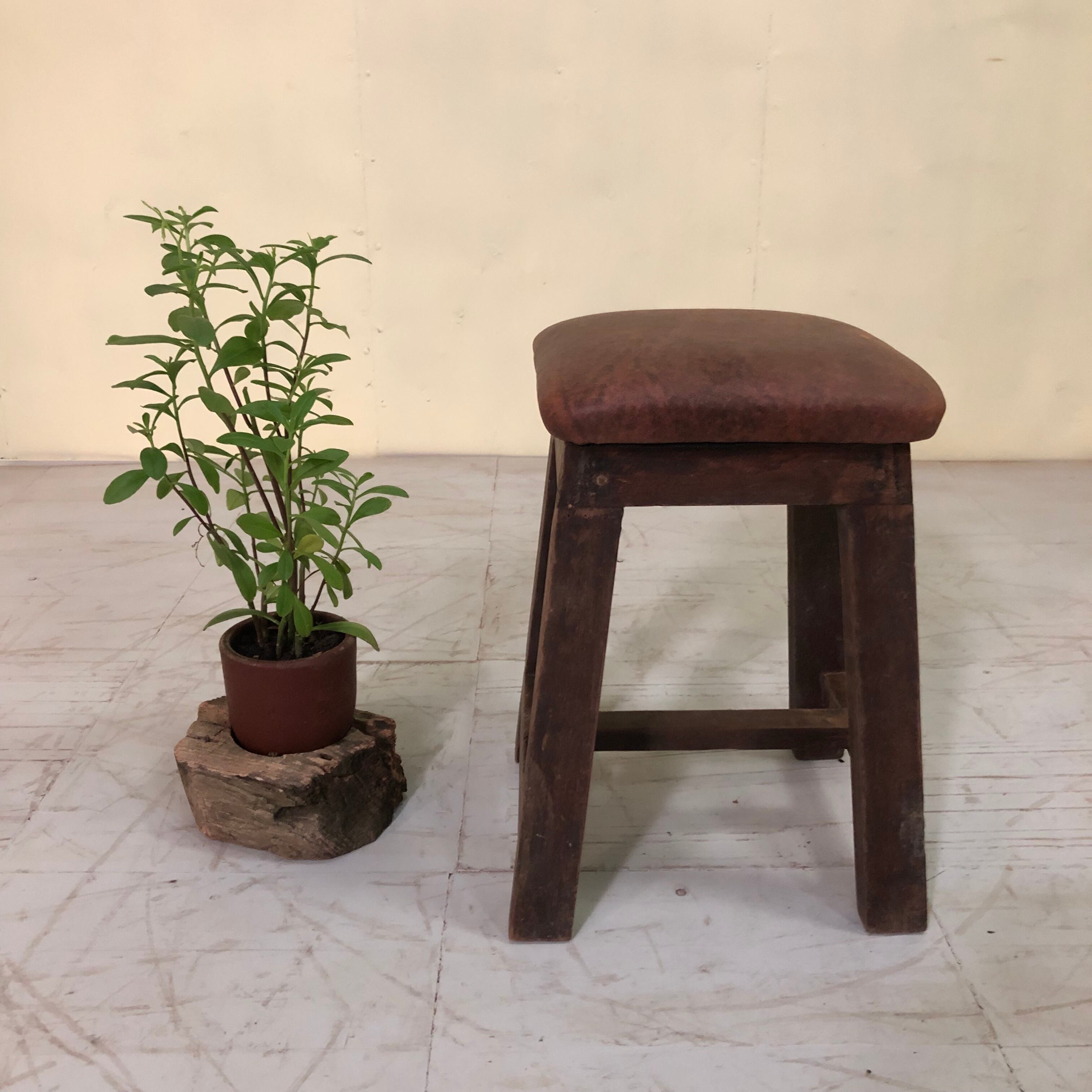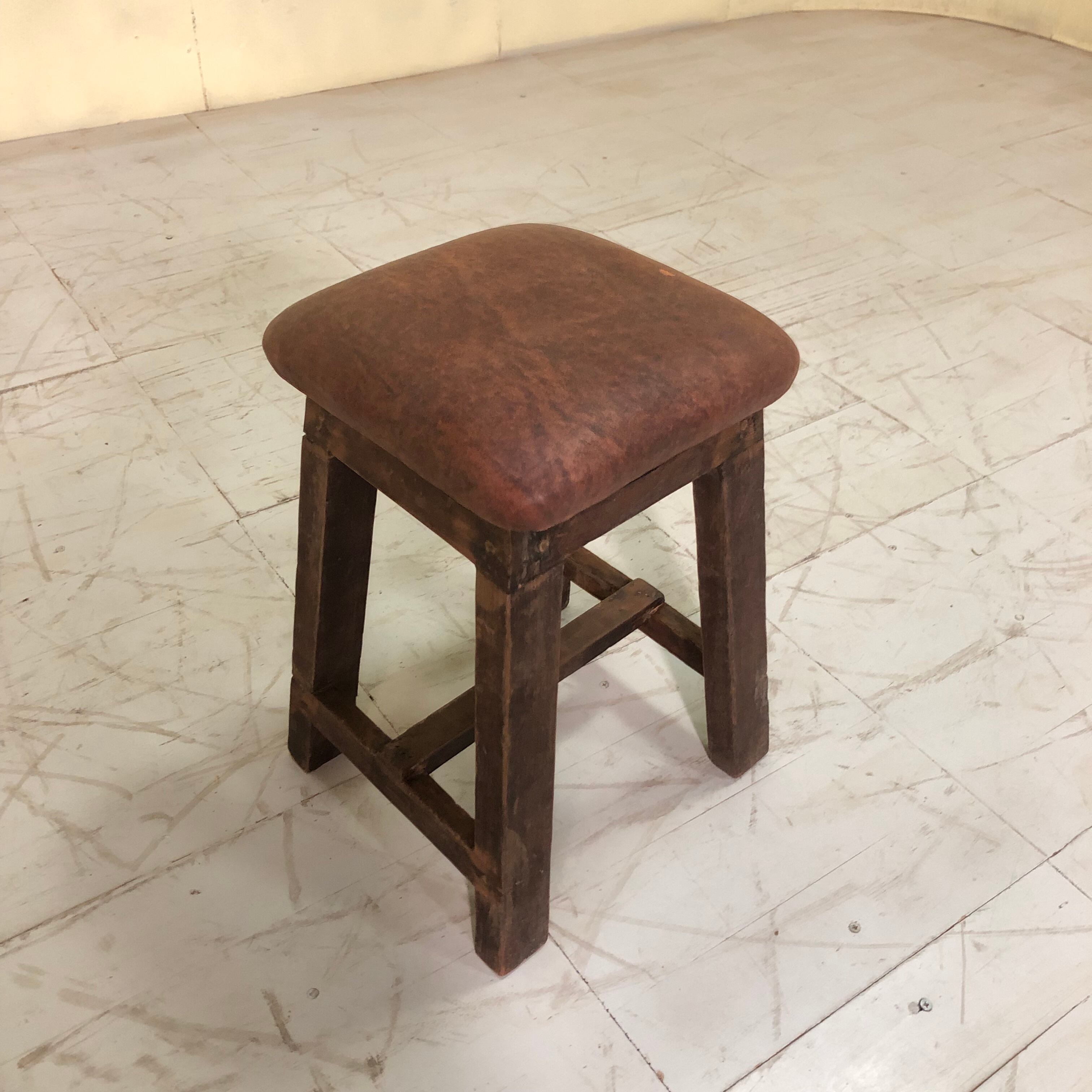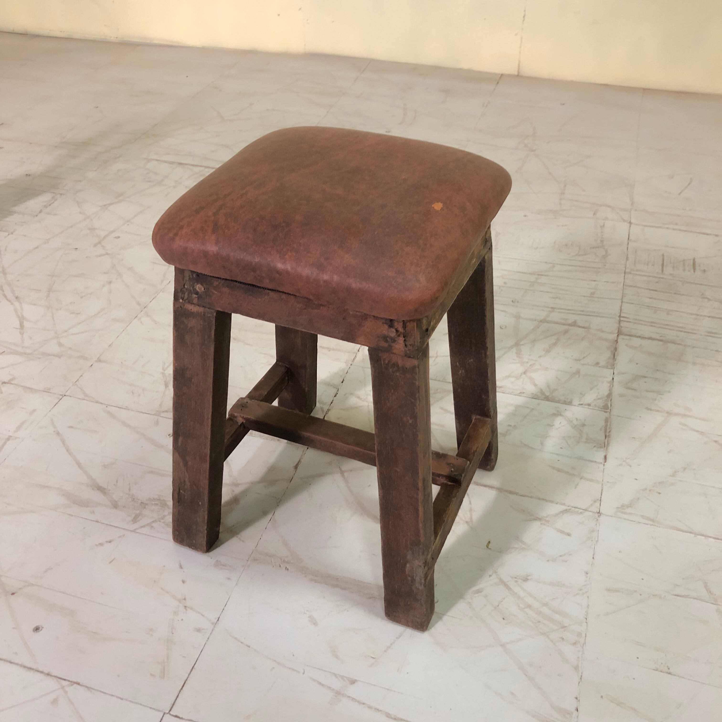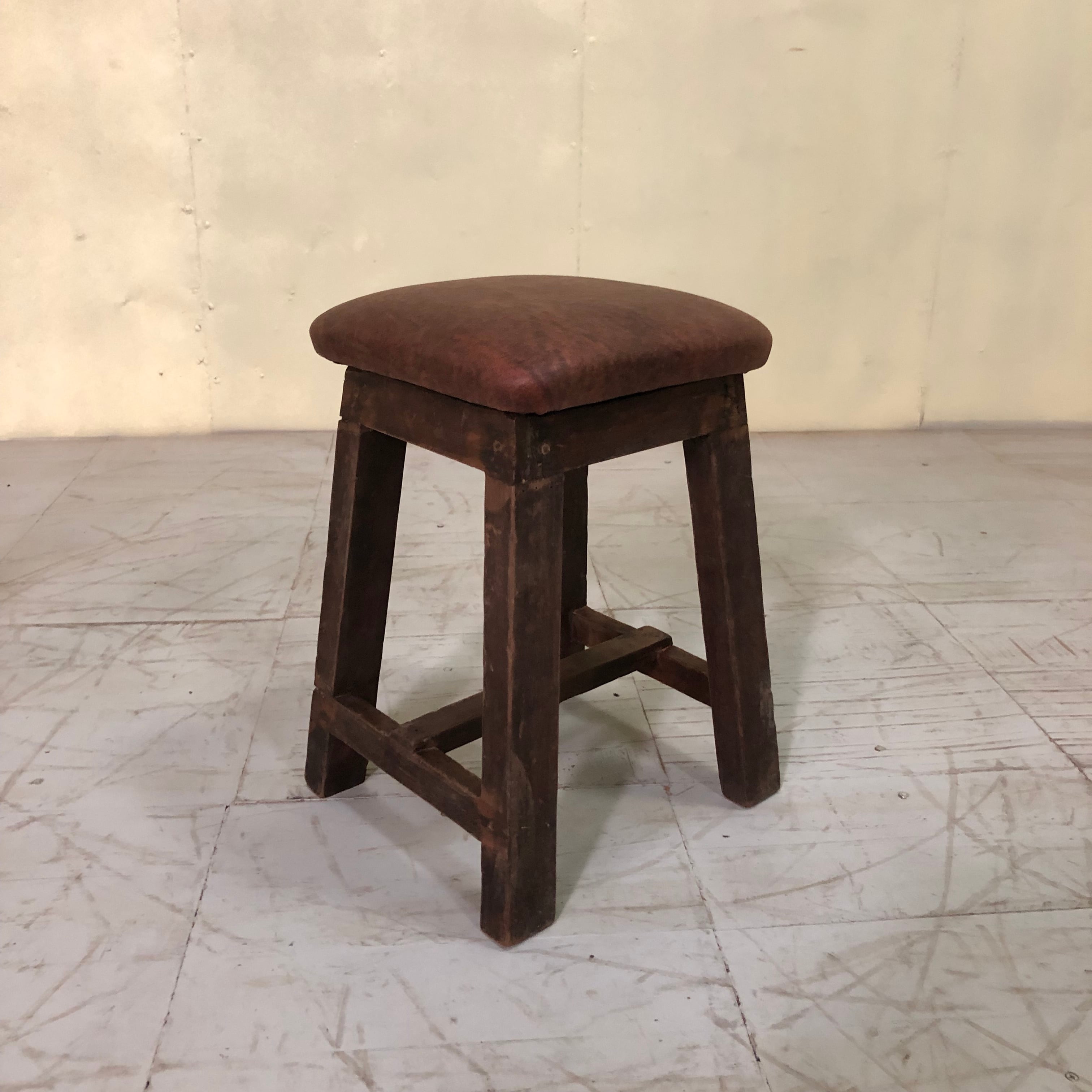 実際にジャワ島の紡績工場で長年使用されていた木製スツールを、座面を新しい牛革座に張り替え、丁寧にレストアしました。