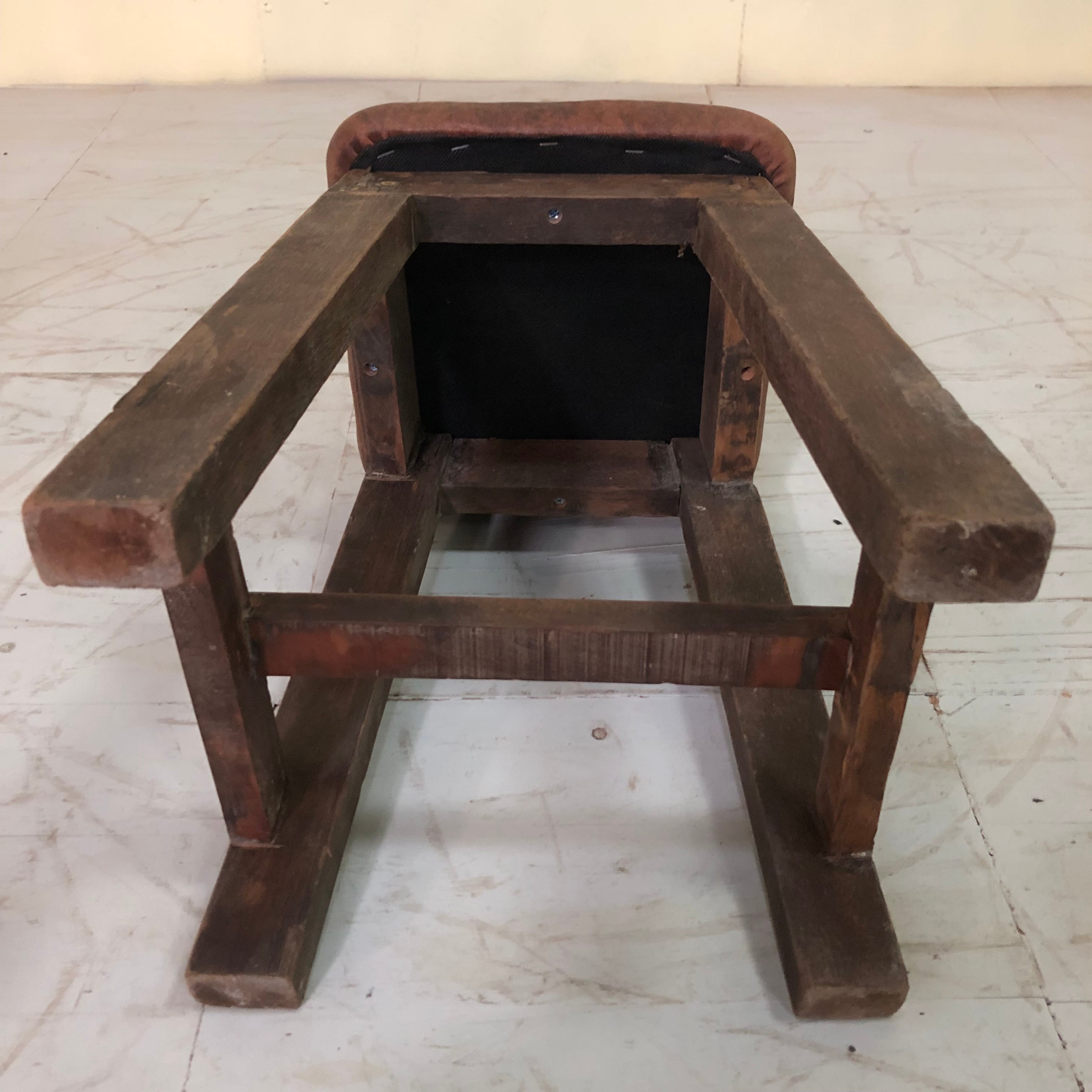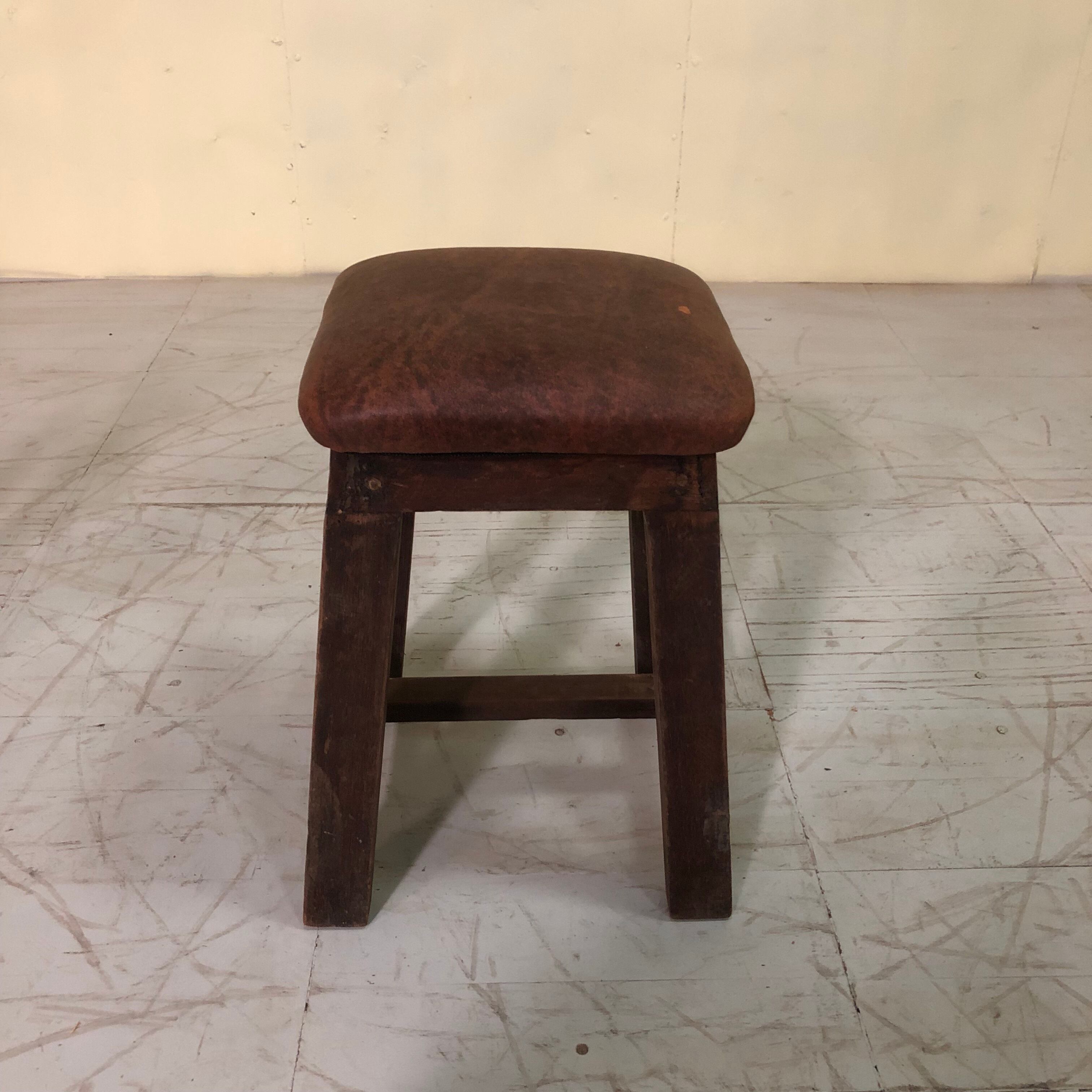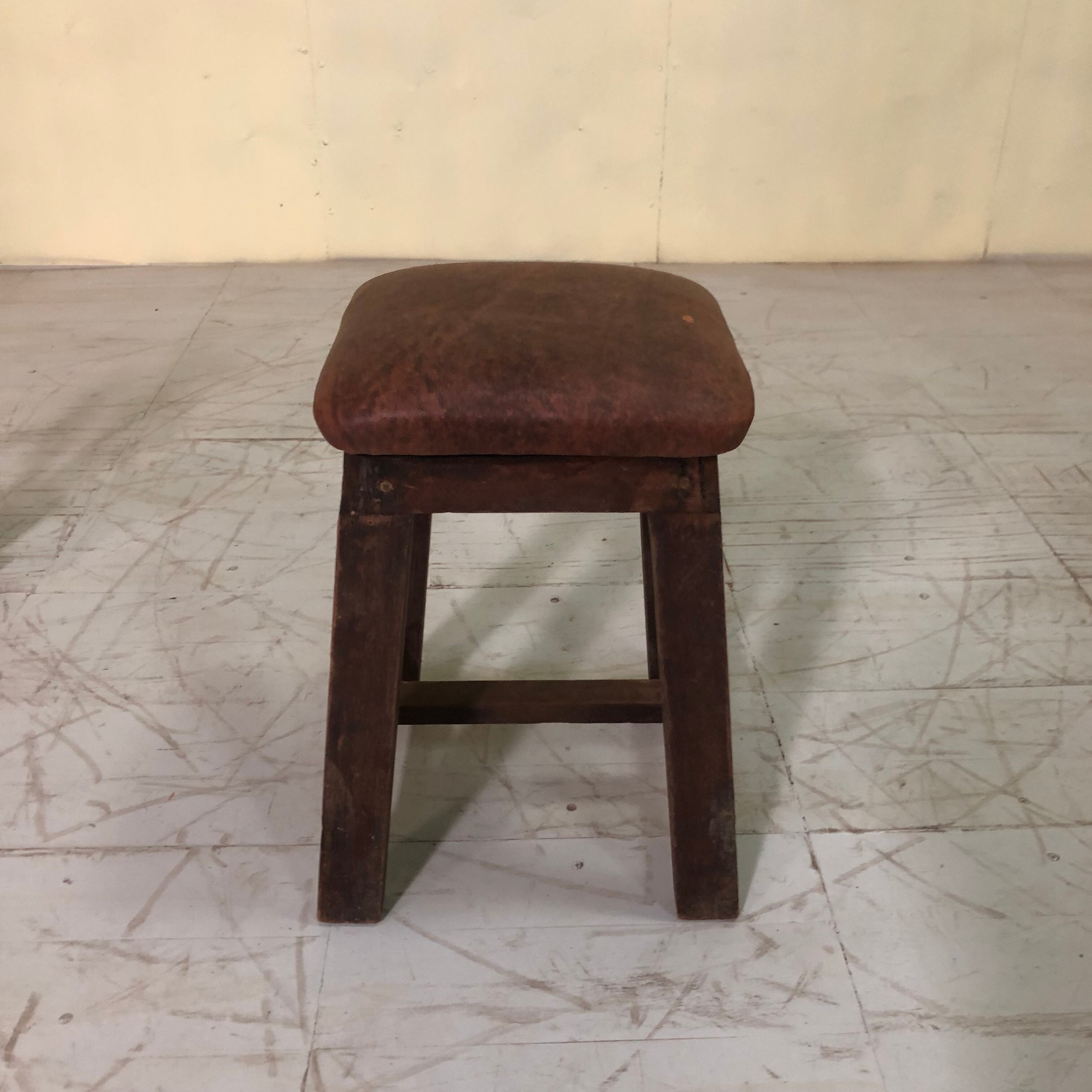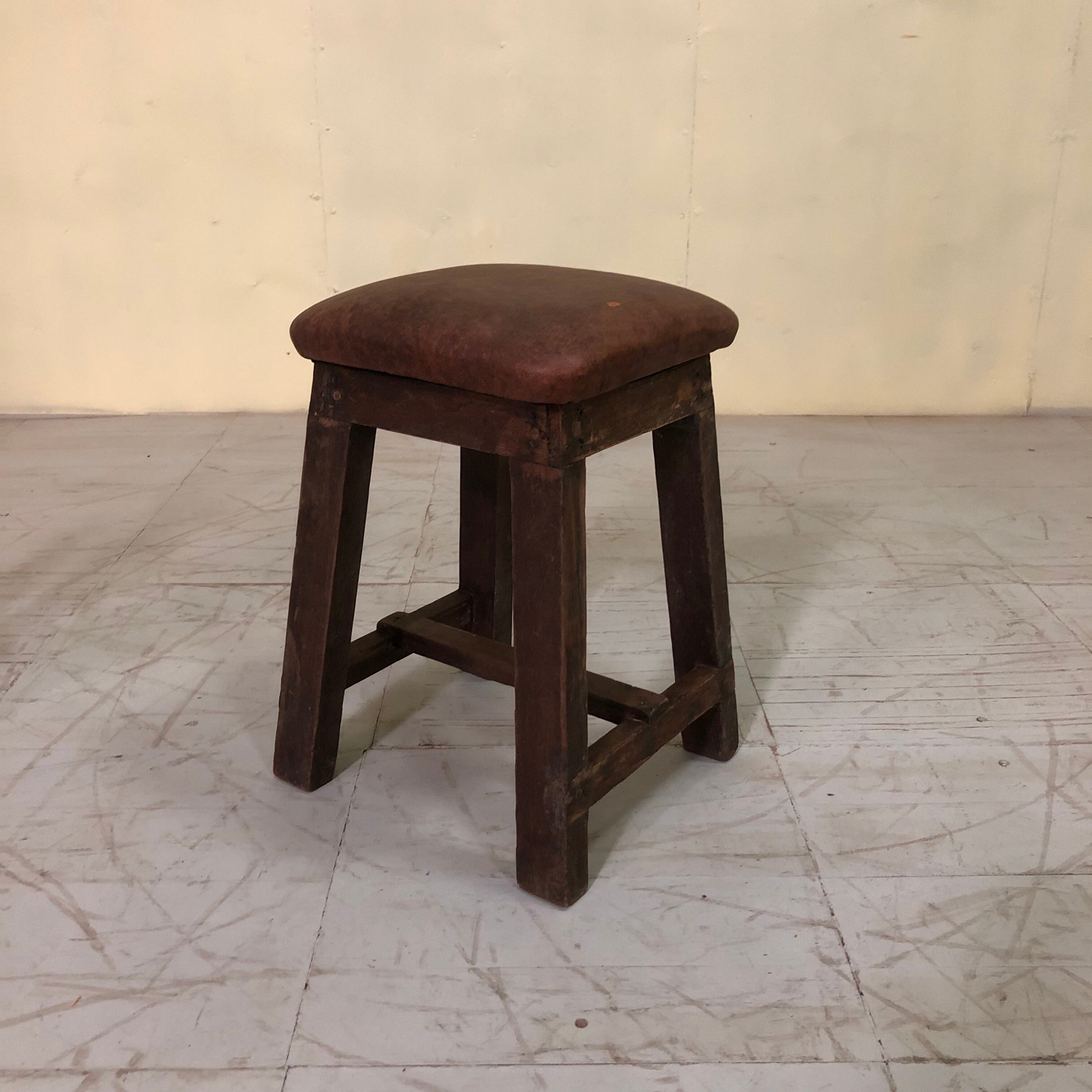 実際にジャワ島の紡績工場で長年使用されていた木製スツールを、座面を新しい牛革座に張り替え、丁寧にレストアしました。