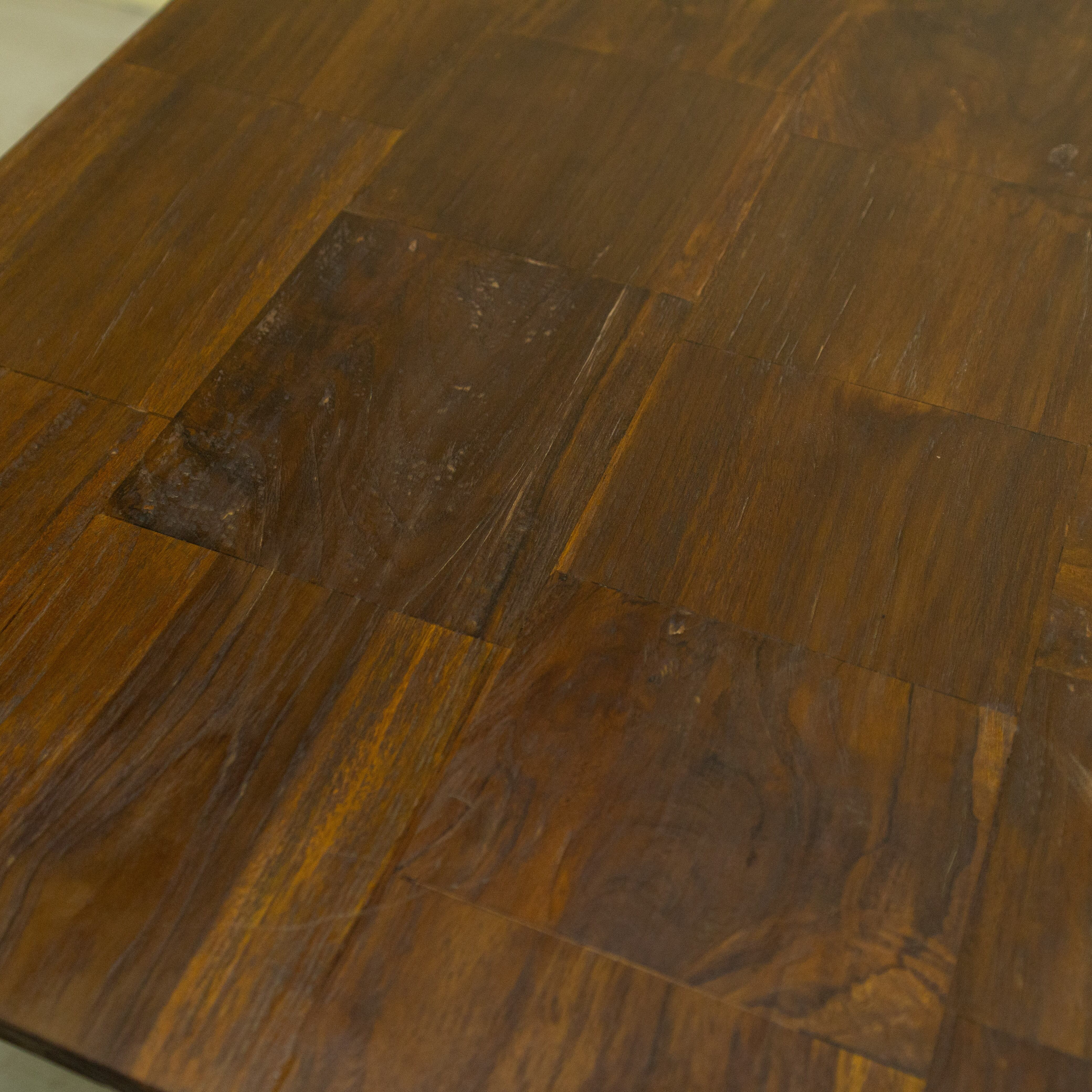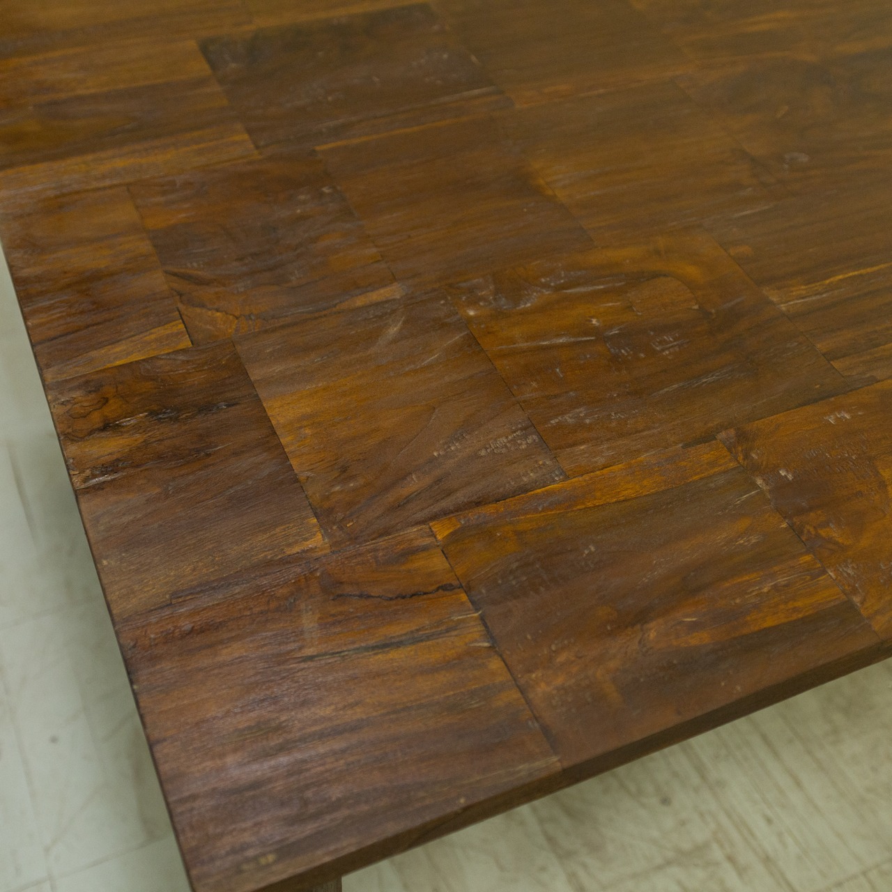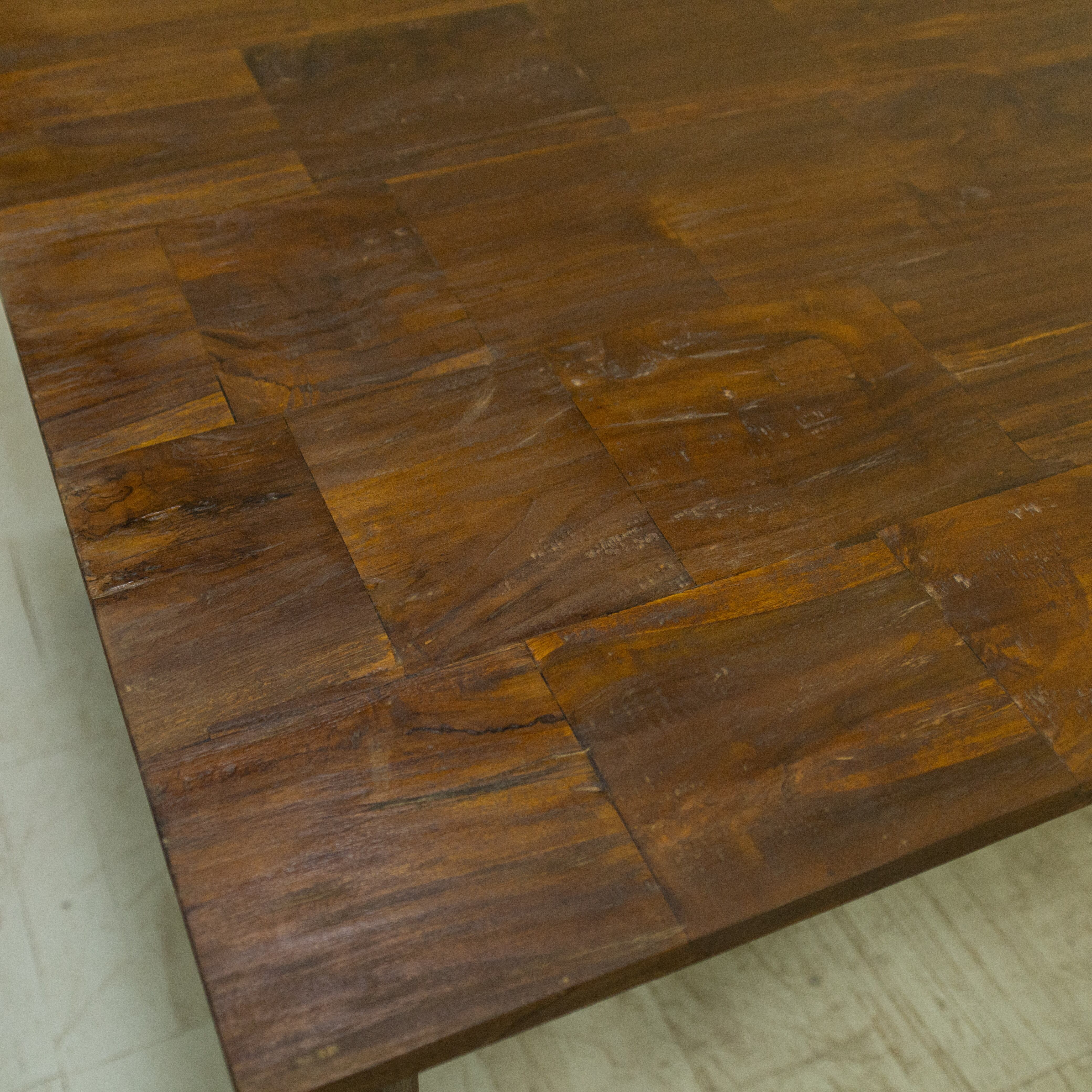 チークブロックテーブル C / ASR-1027C-3G〈Teak Block Table C(KD)〉は、チークのベンチ古材を再利用し、モザイク状に組み上げて製作したダイニングテーブルです。