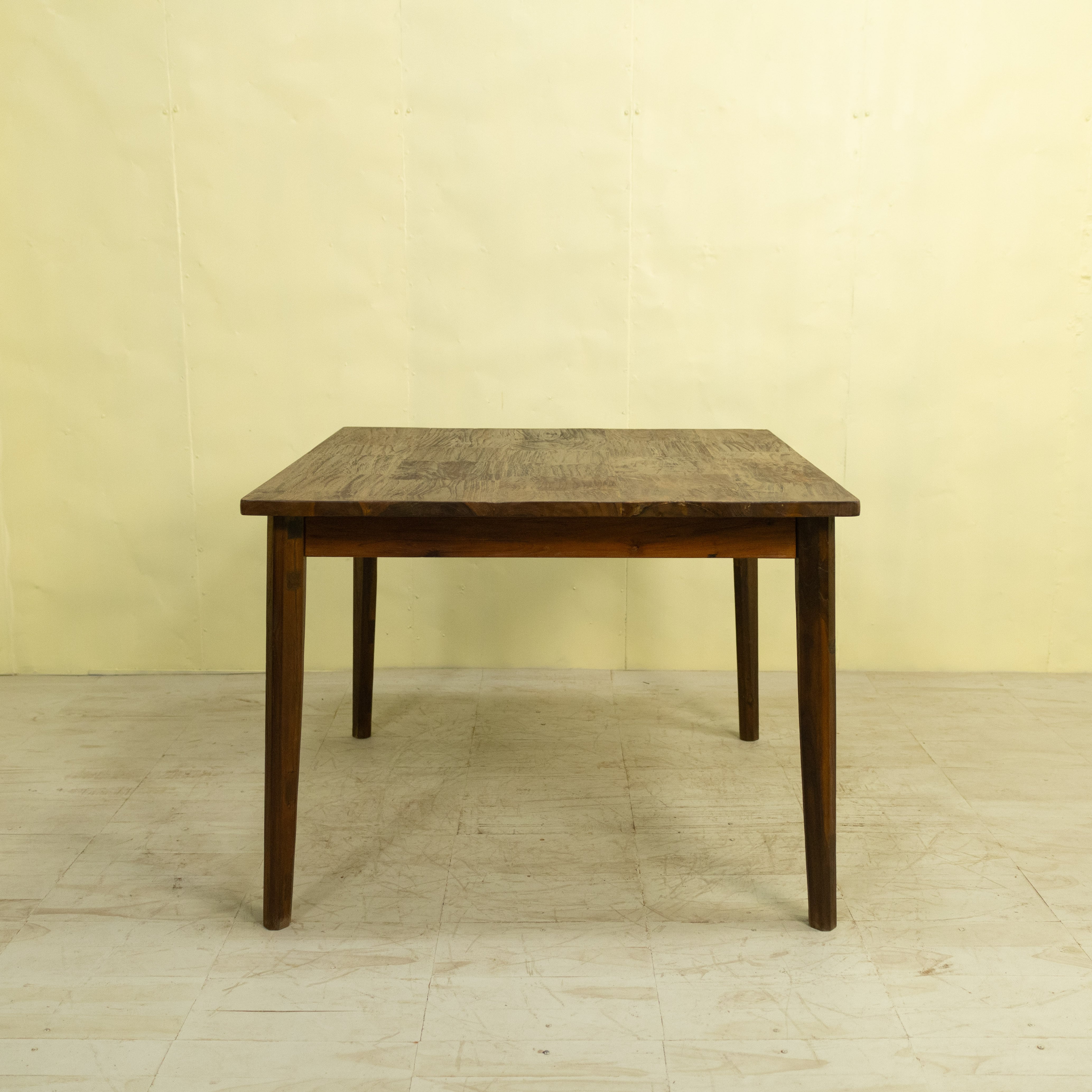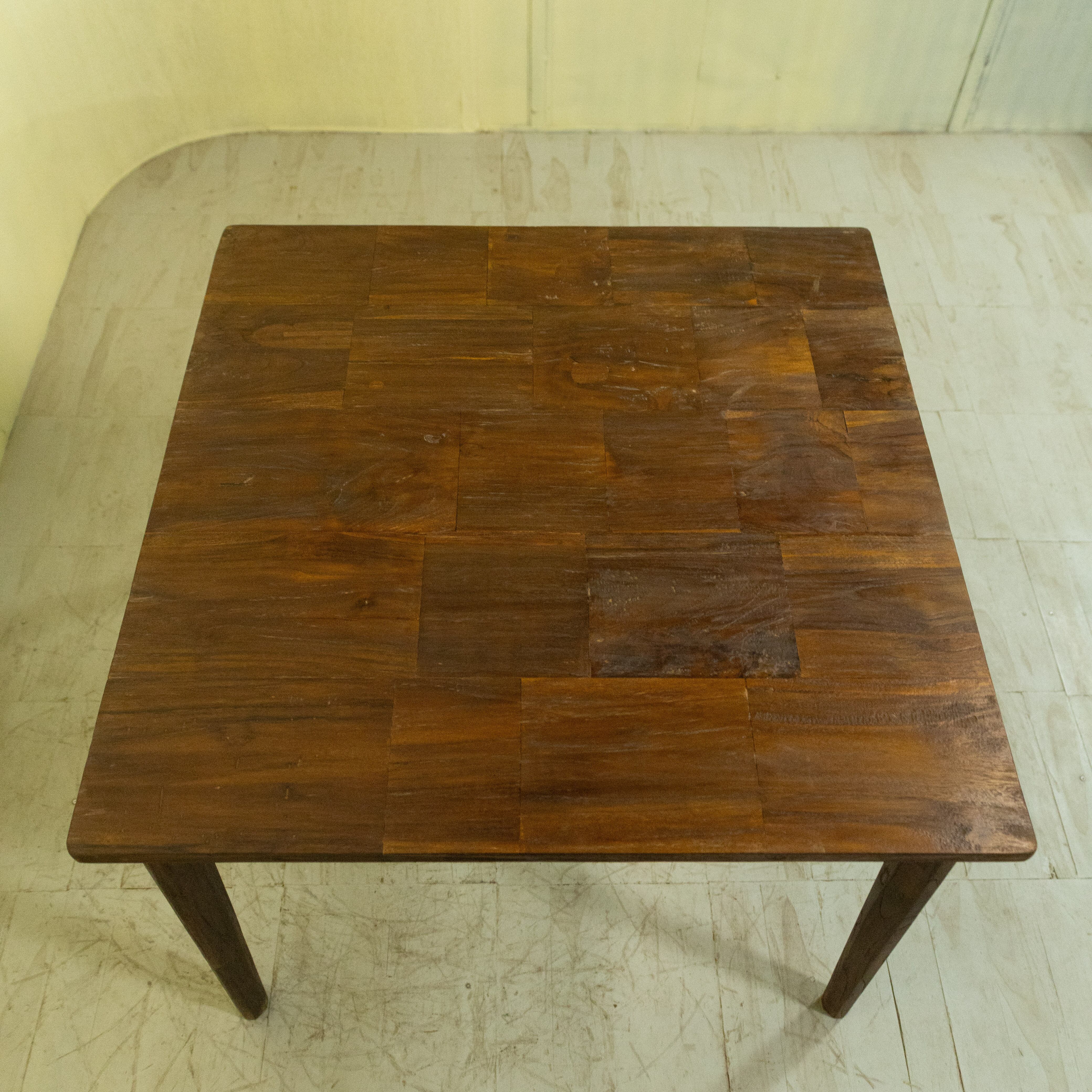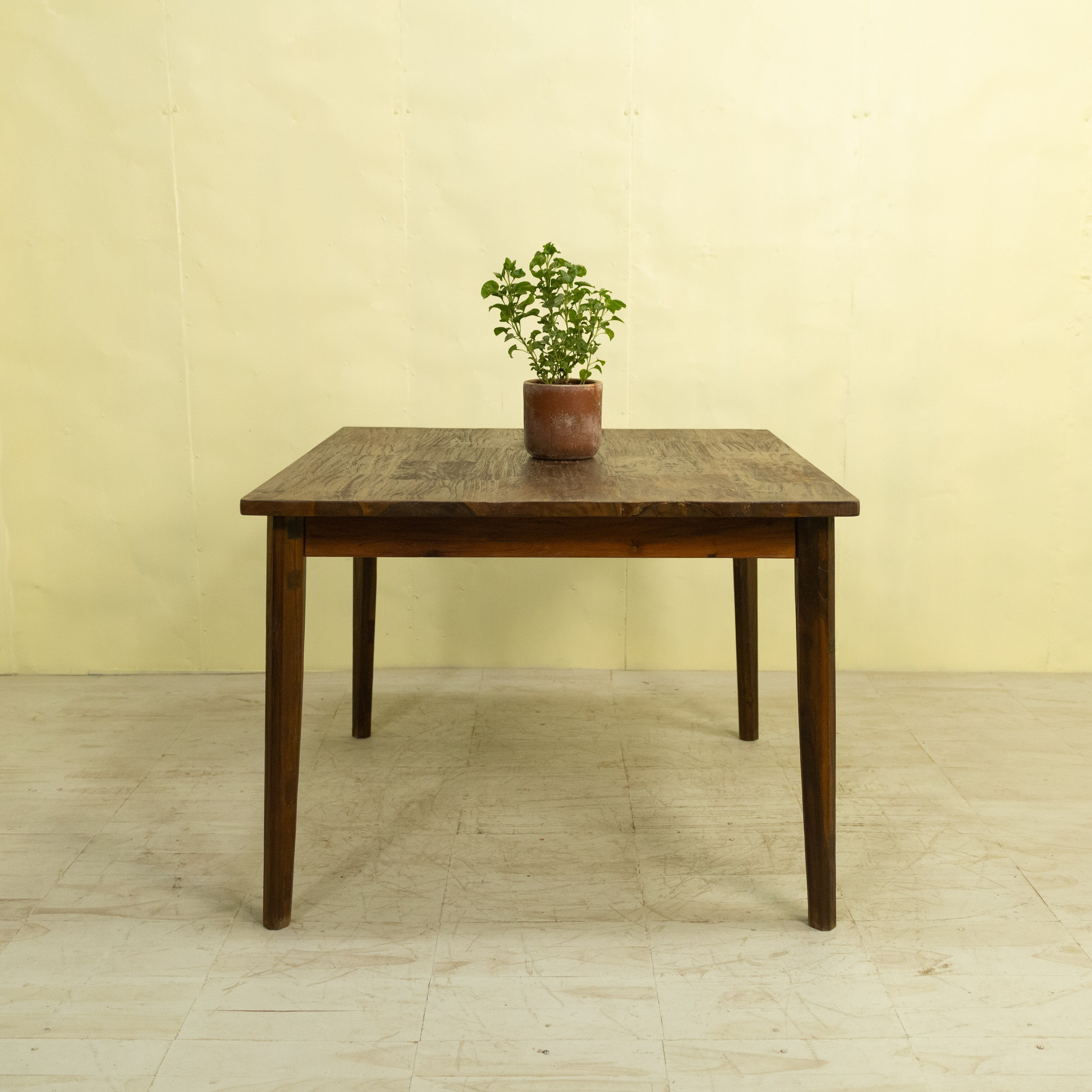 チークブロックテーブル C / ASR-1027C-3G〈Teak Block Table C(KD)〉は、チークのベンチ古材を再利用し、モザイク状に組み上げて製作したダイニングテーブルです。