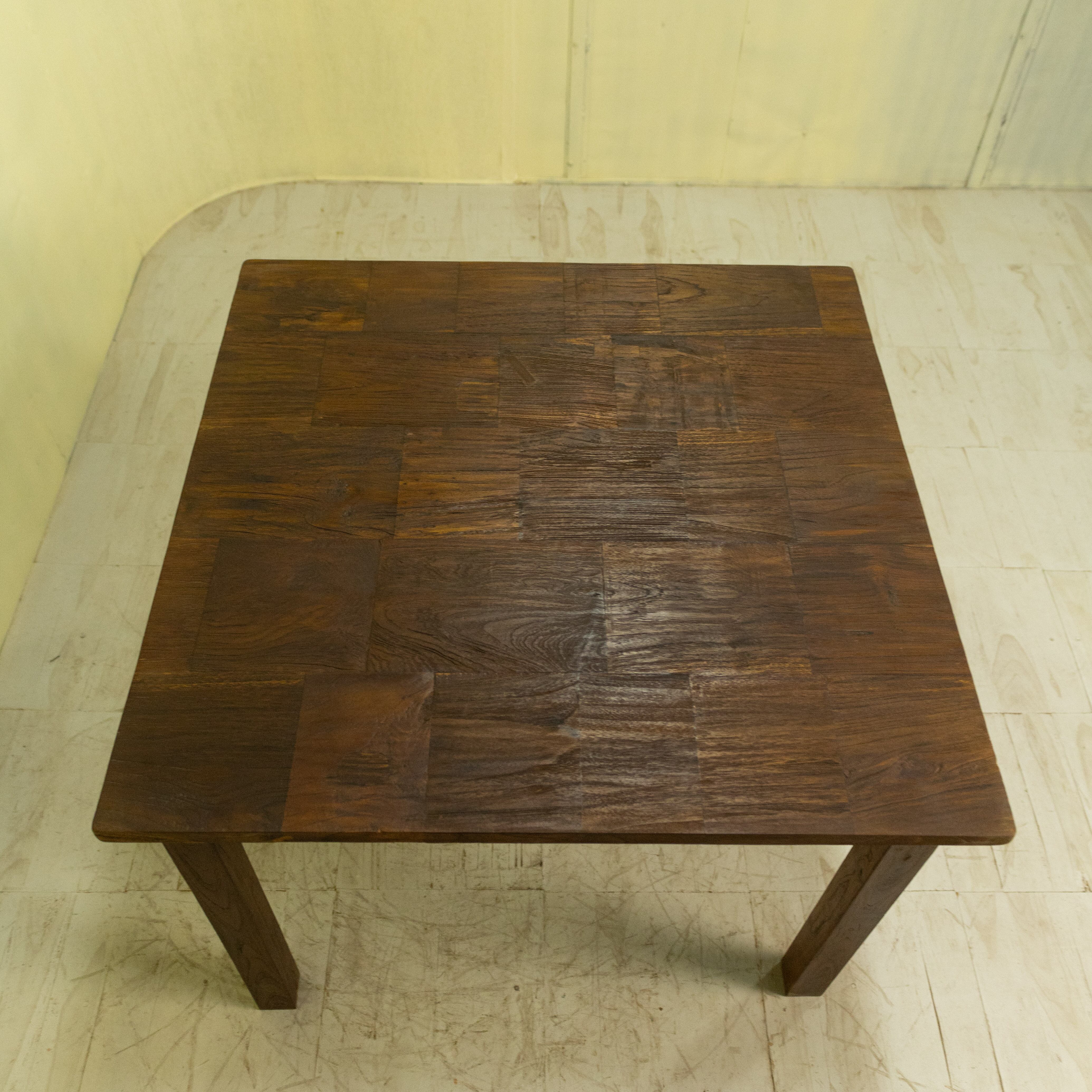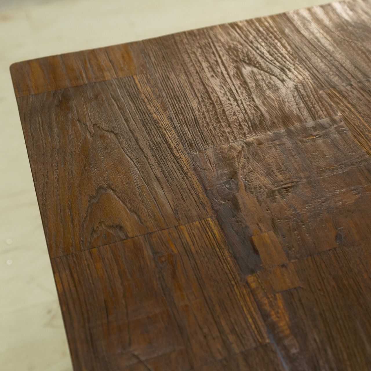 チークブロックテーブル B / ASR-1027C-3G〈Teak Block Table B(KD)〉は、チークのベンチ古材を再利用し、モザイク状に組み上げて製作したダイニングテーブルです。