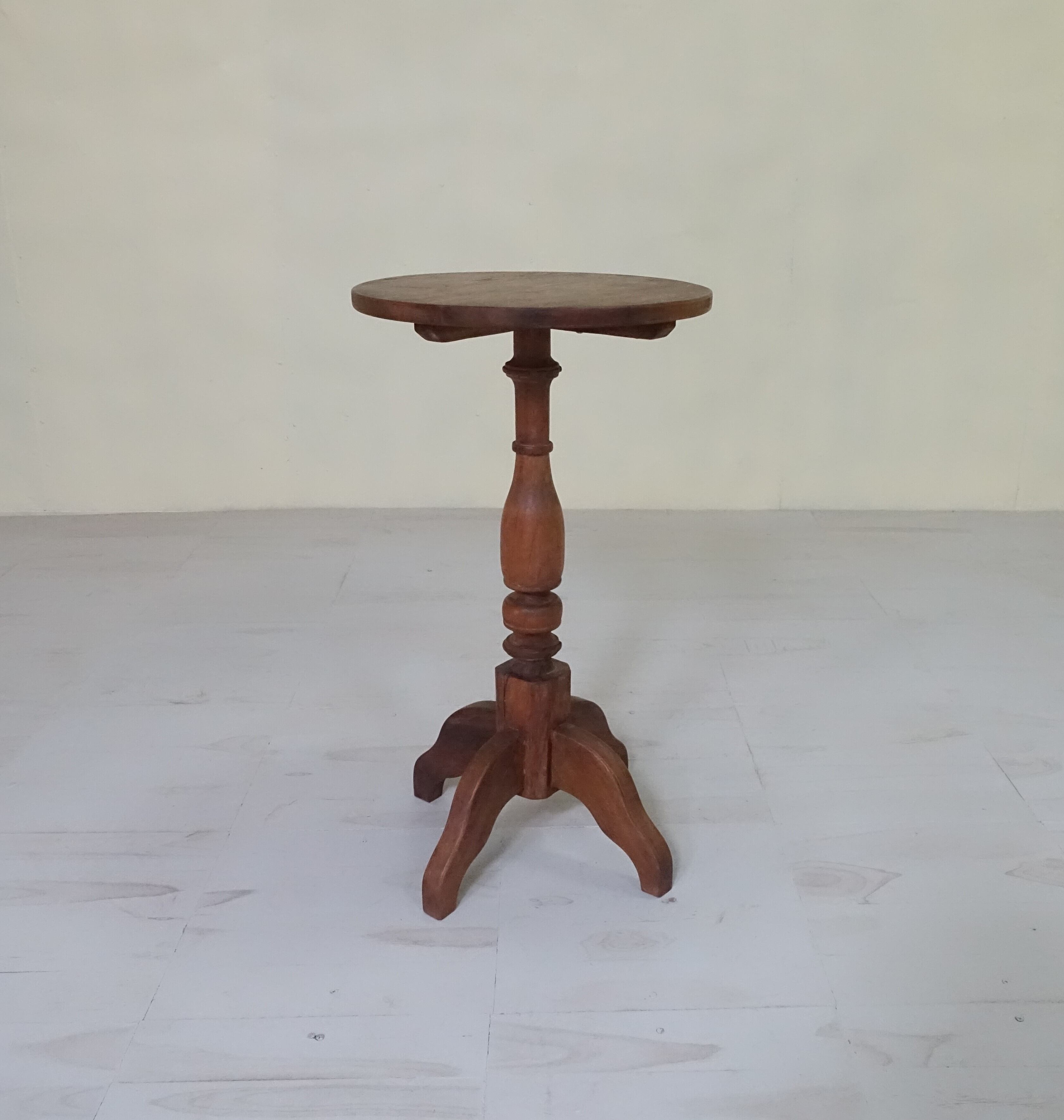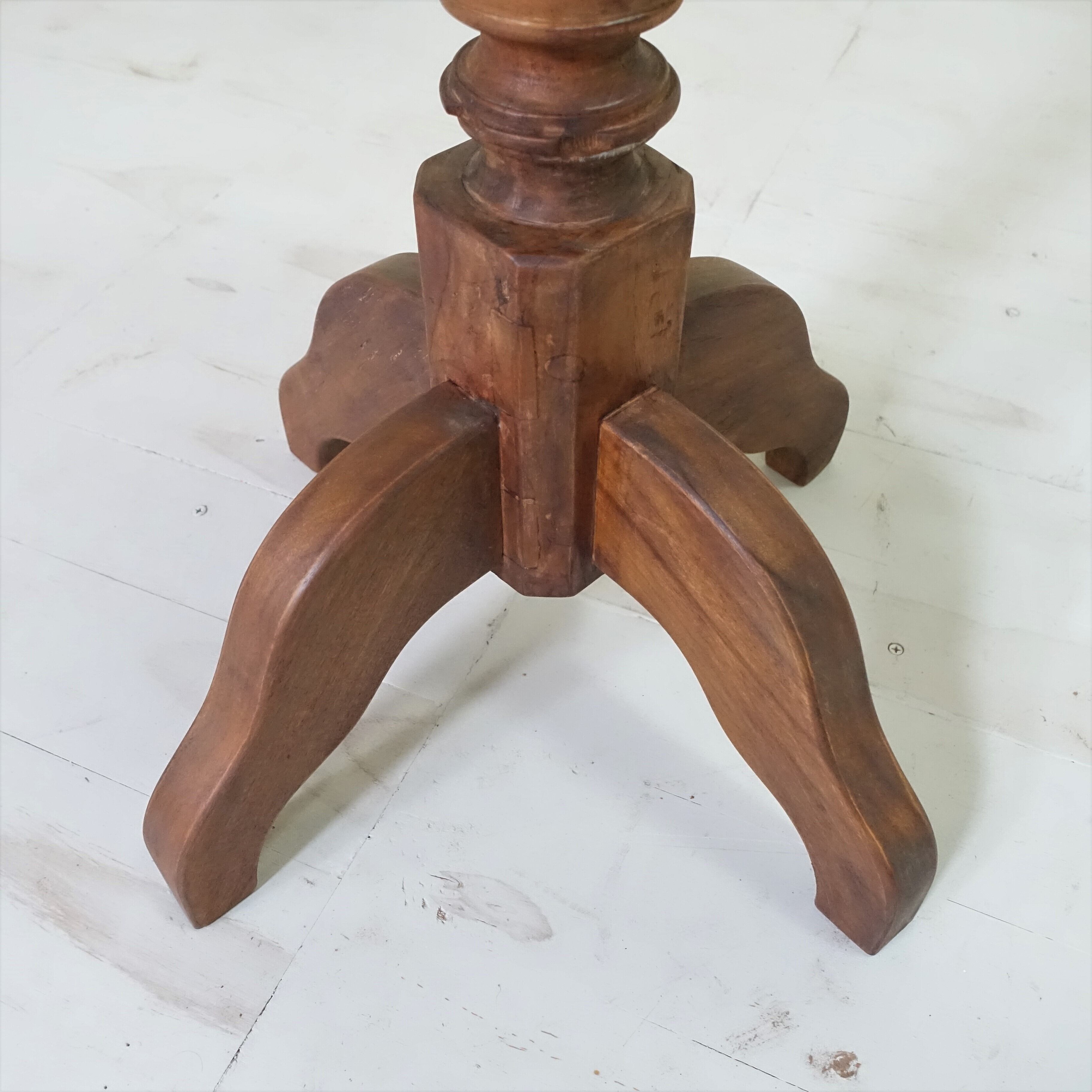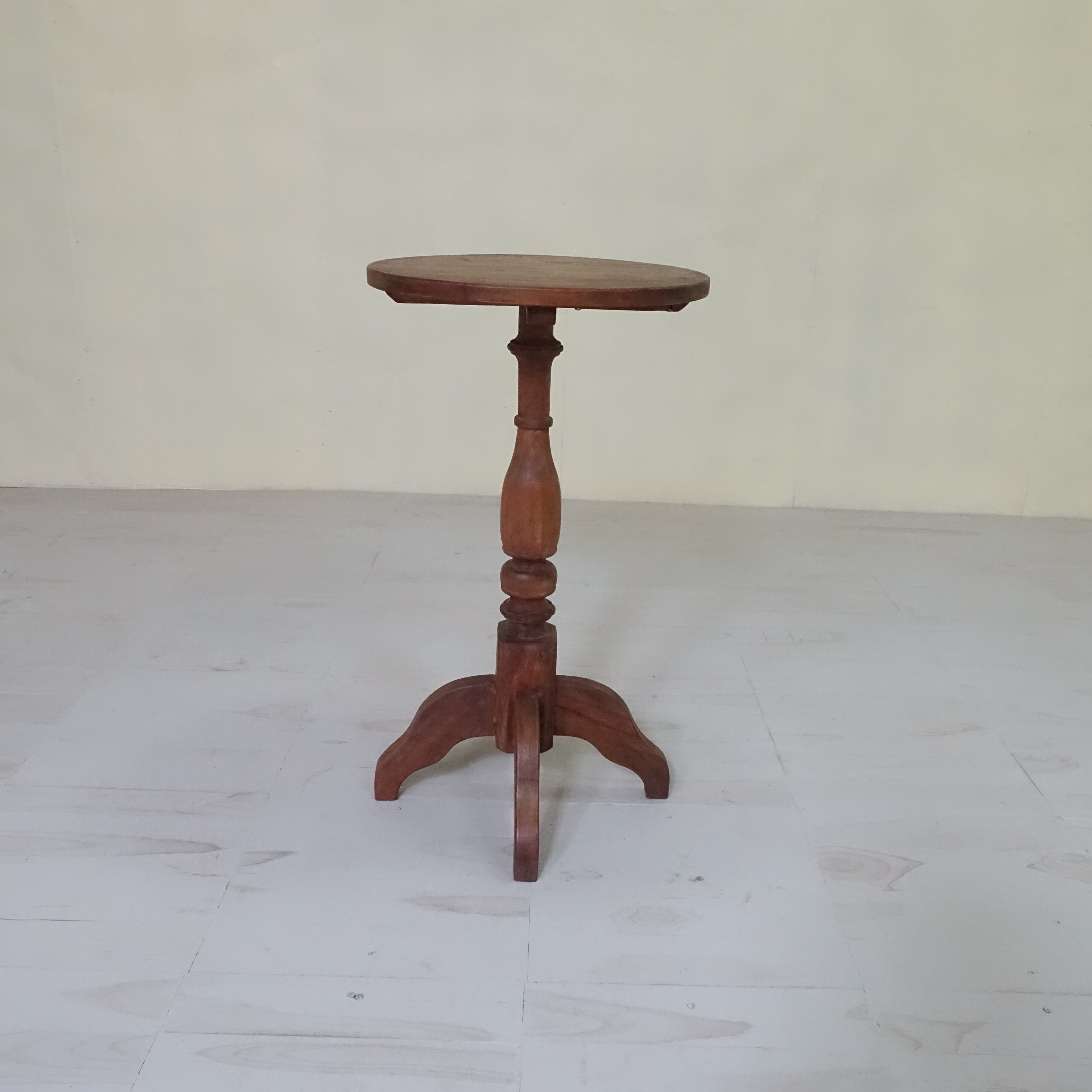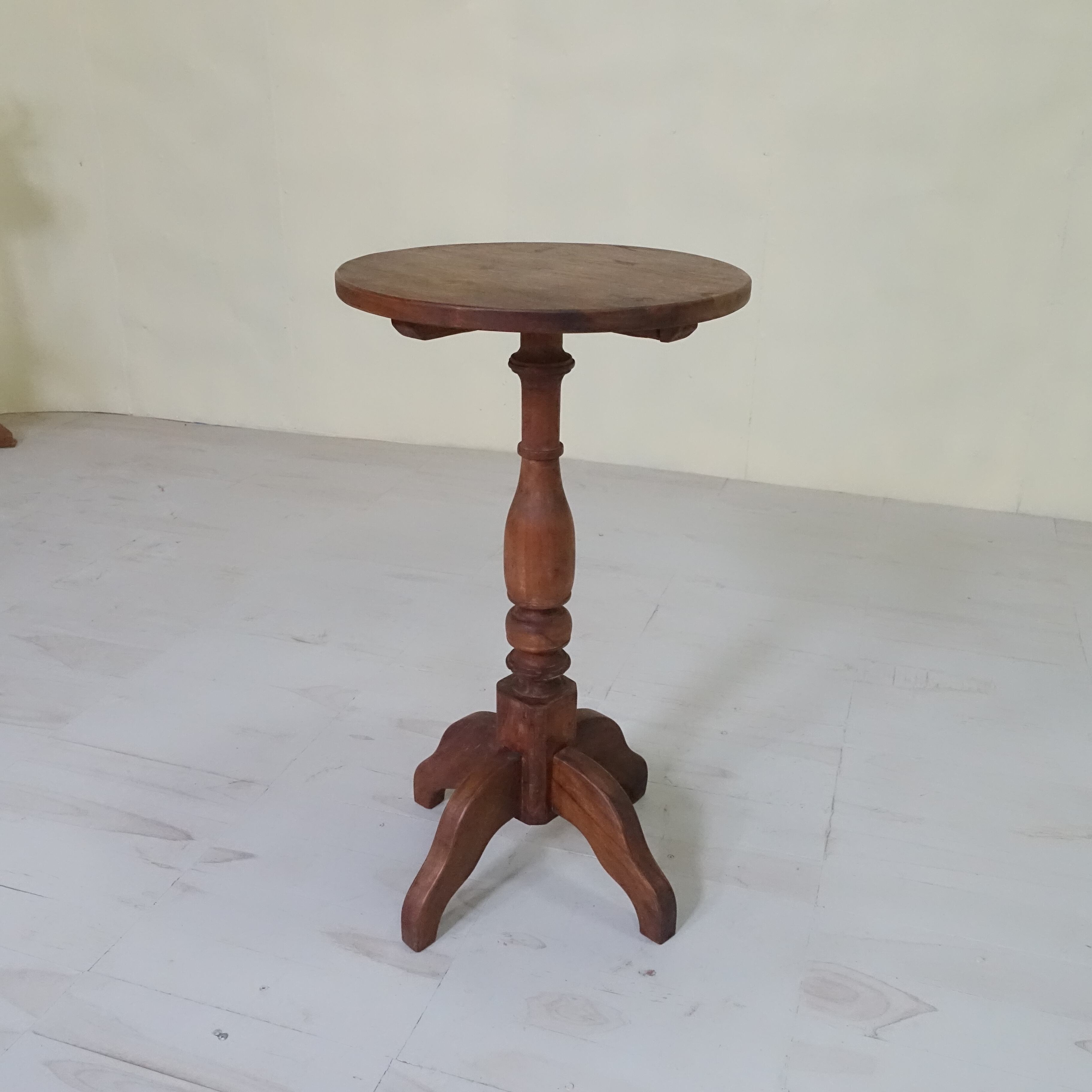 インドネシアは、約350年にわたりオランダの統治下にありました。その歴史的背景から、インドネシアで見つかる古家具には、東洋的な要素に加え、ヨーロピアンデザインの影響が色濃く感じられます。本品もまた、そうした時代の空気を纏った一台といえるでしょう。