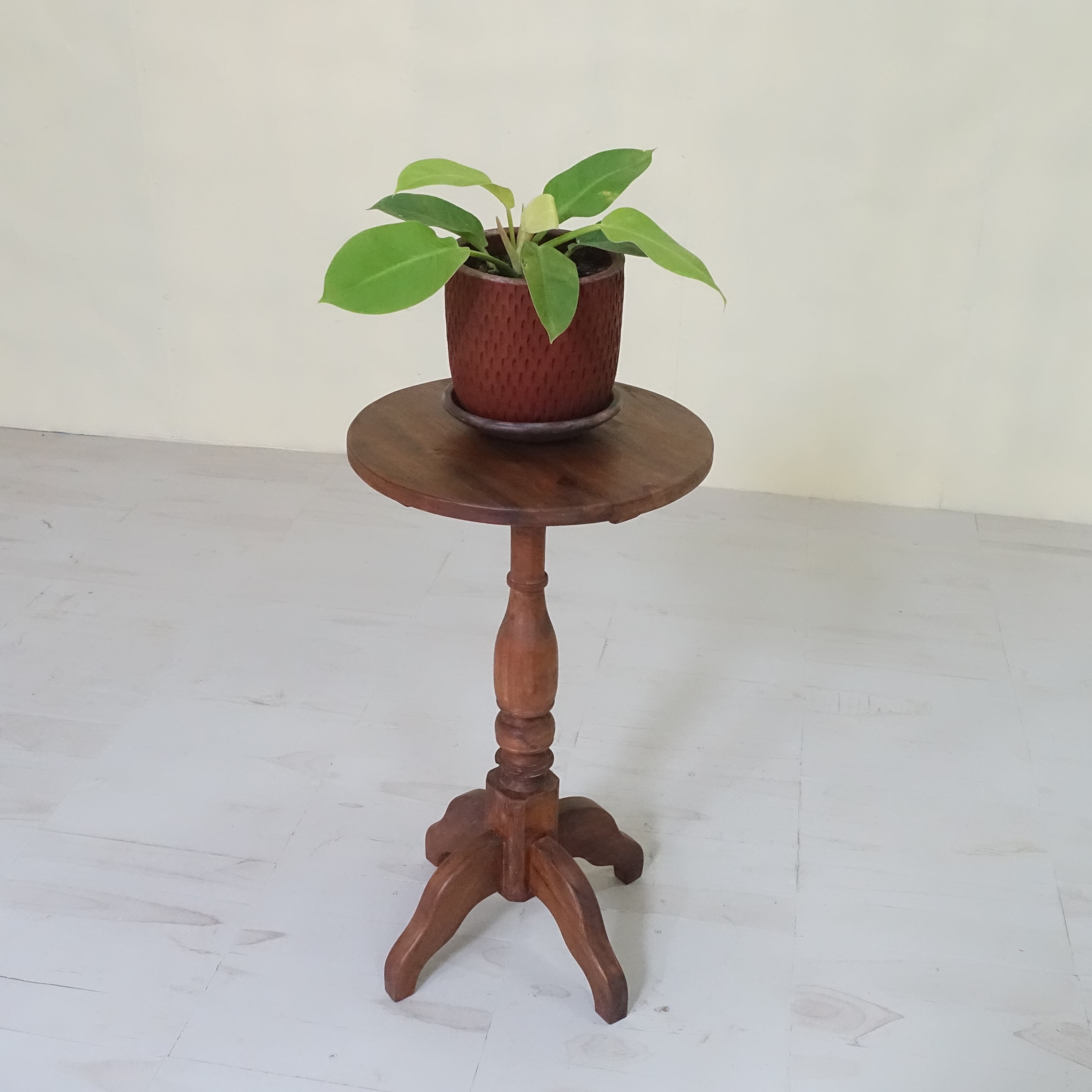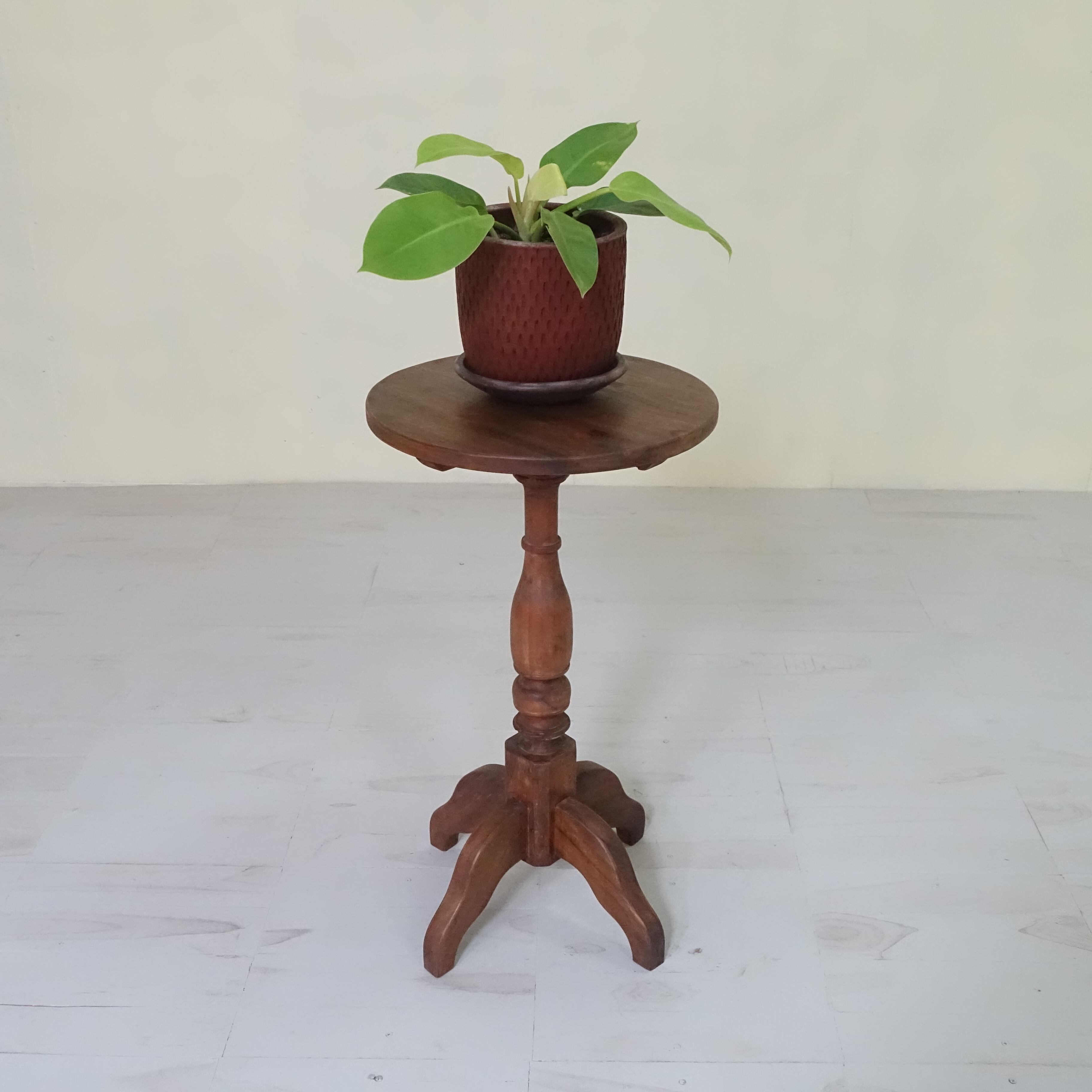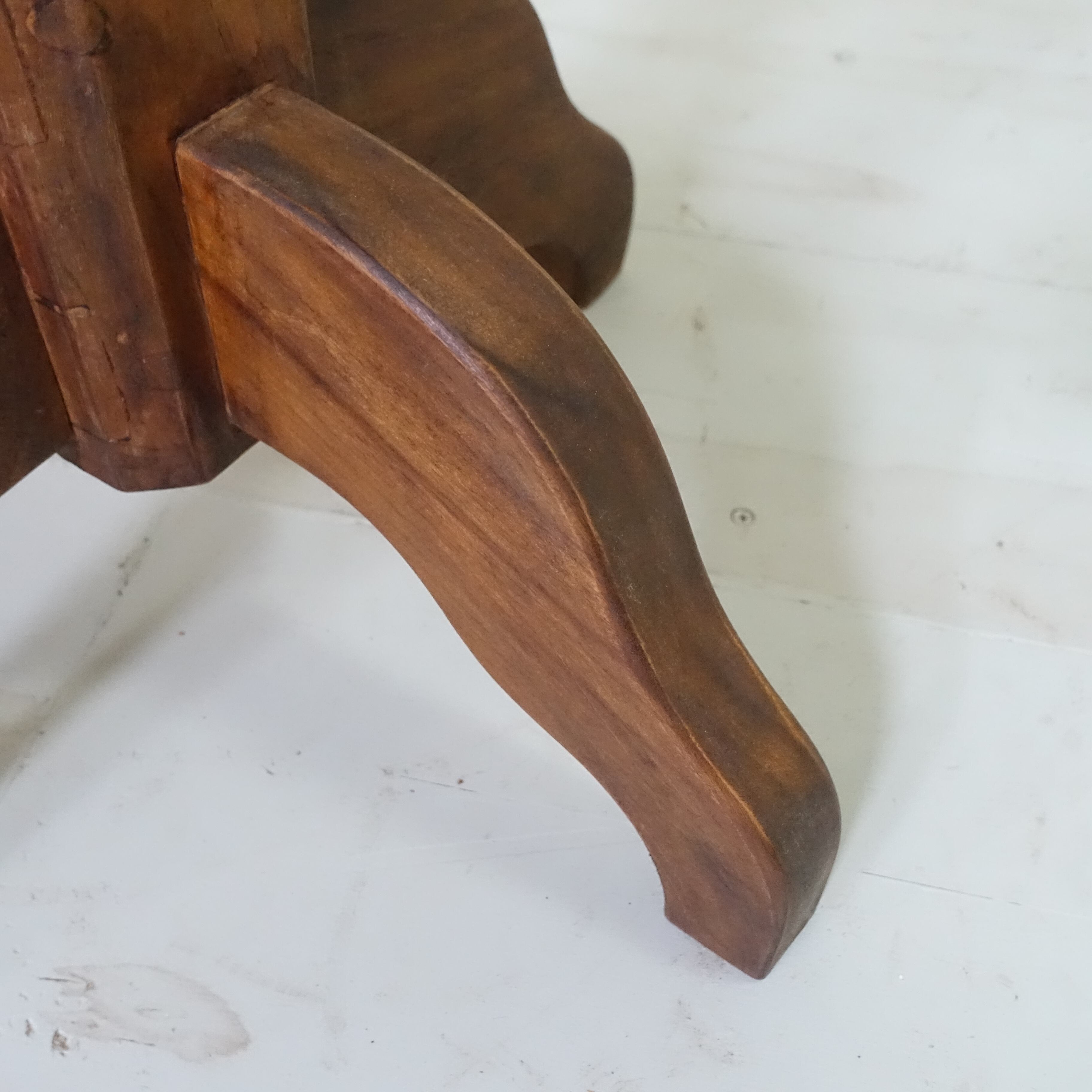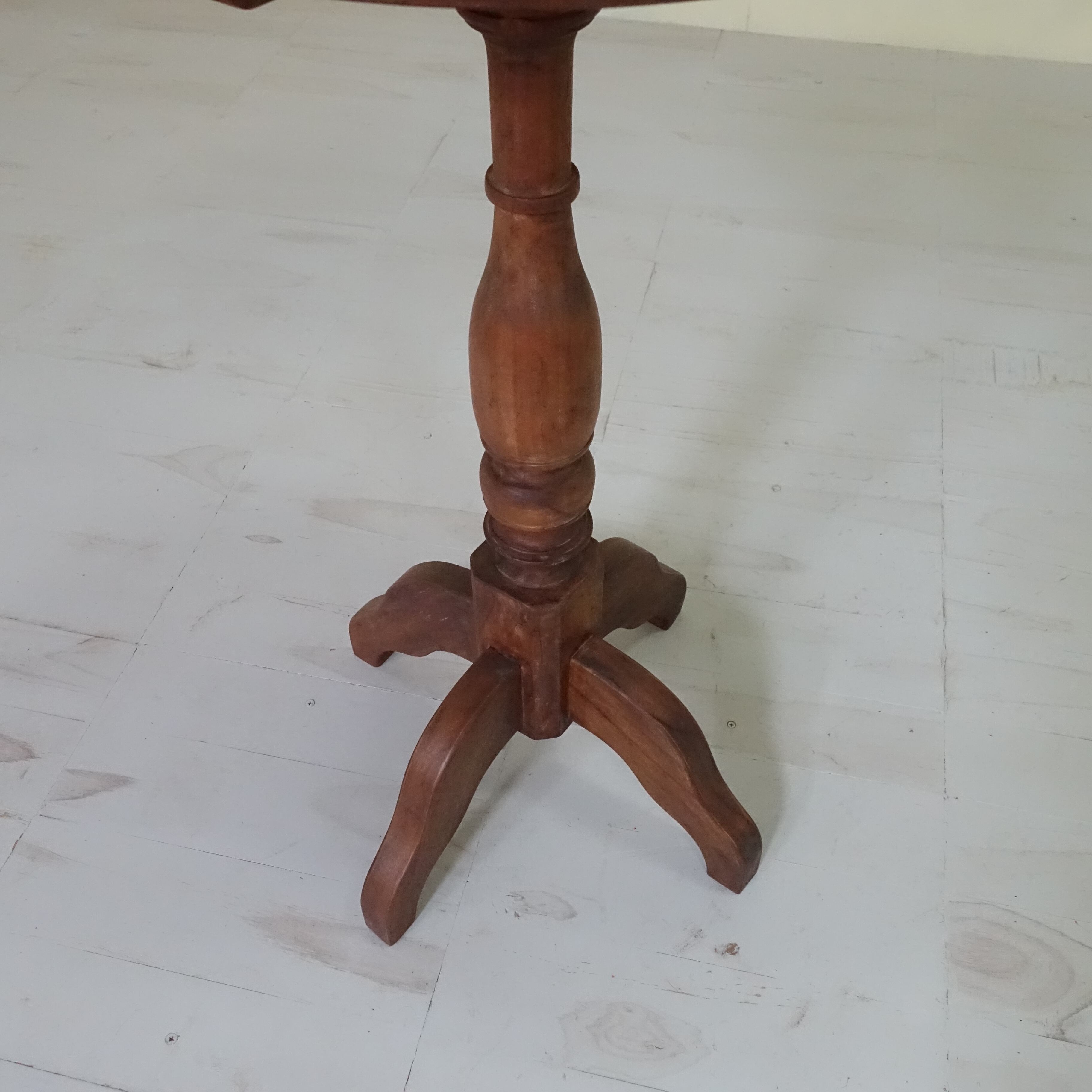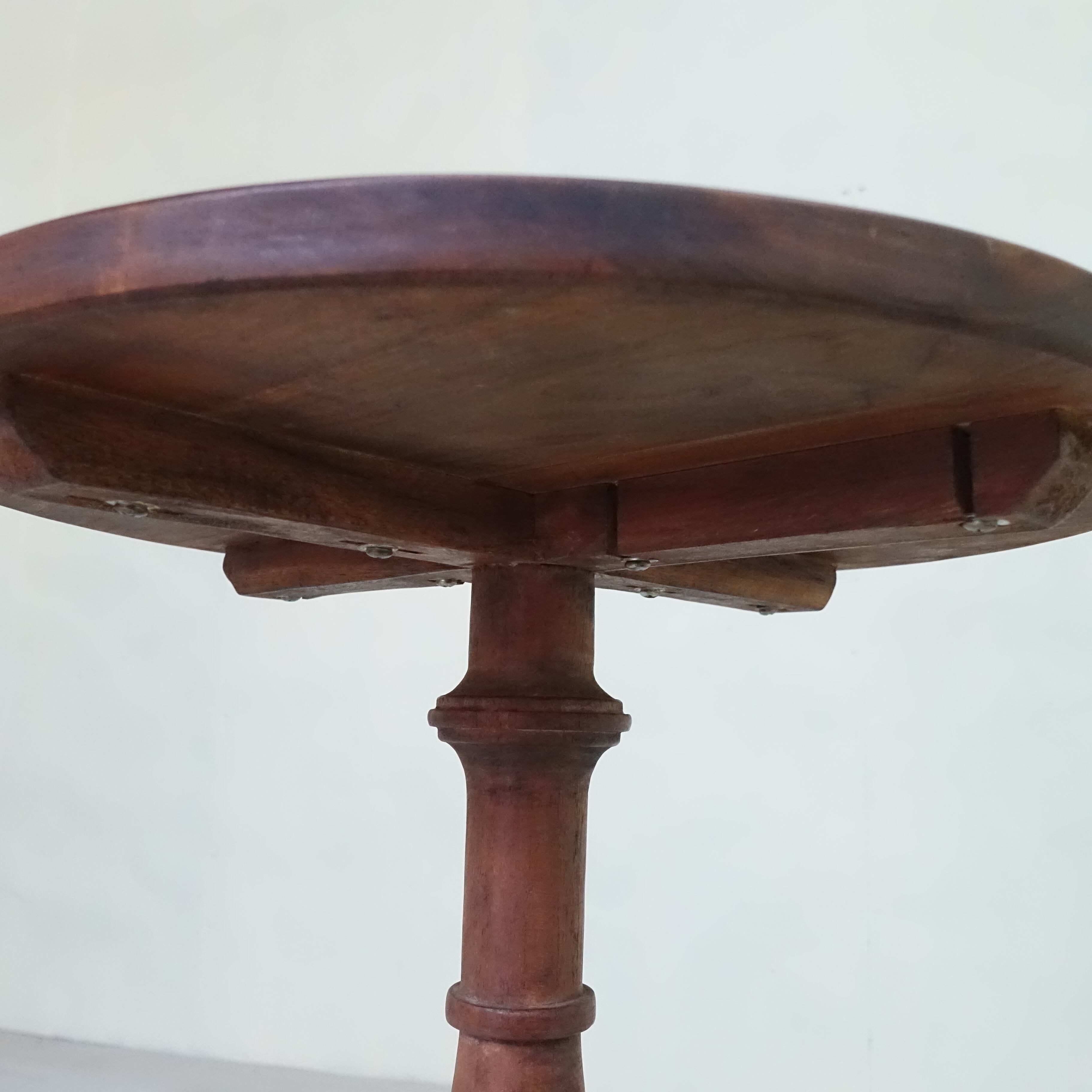 インドネシアは、約350年にわたりオランダの統治下にありました。その歴史的背景から、インドネシアで見つかる古家具には、東洋的な要素に加え、ヨーロピアンデザインの影響が色濃く感じられます。本品もまた、そうした時代の空気を纏った一台といえるでしょう。