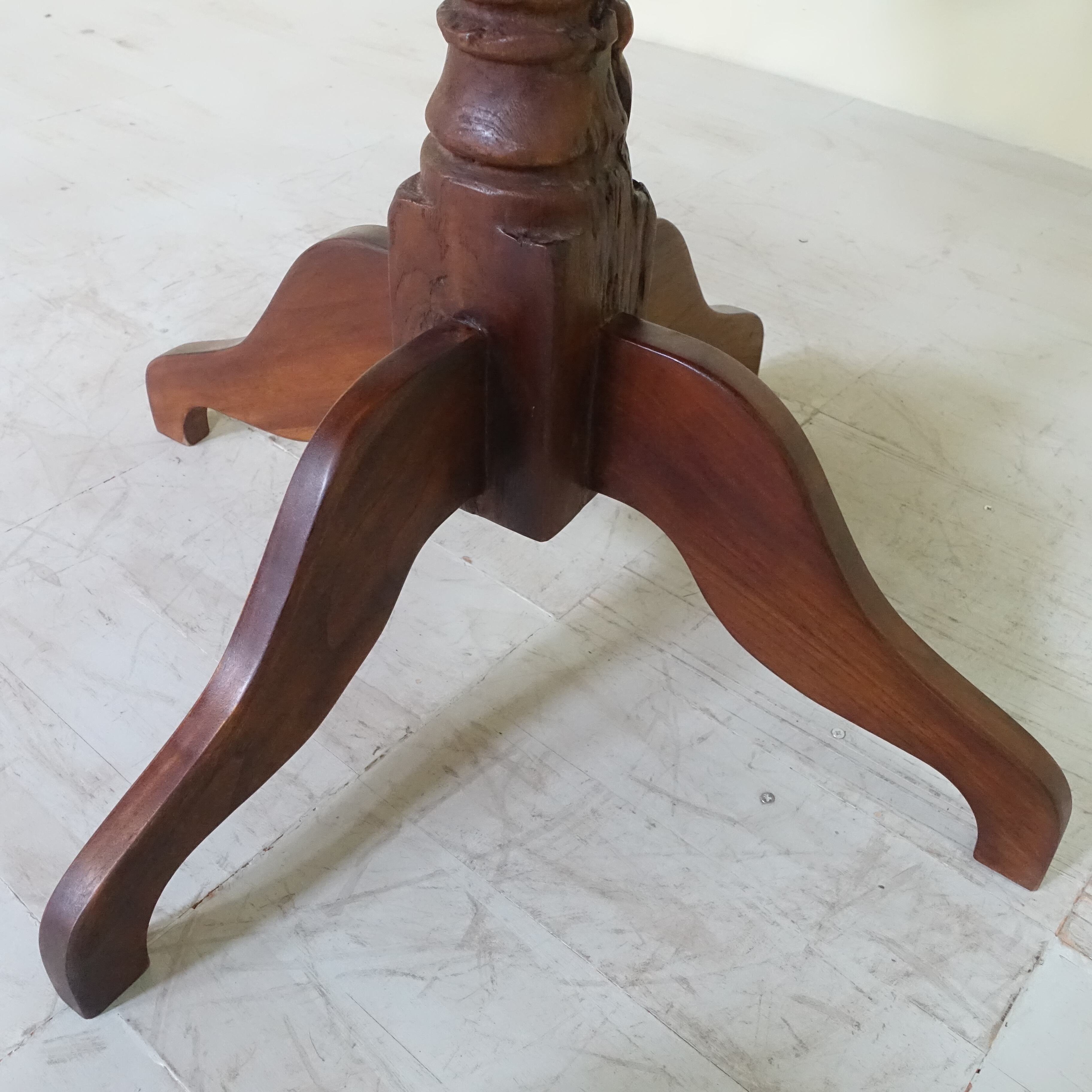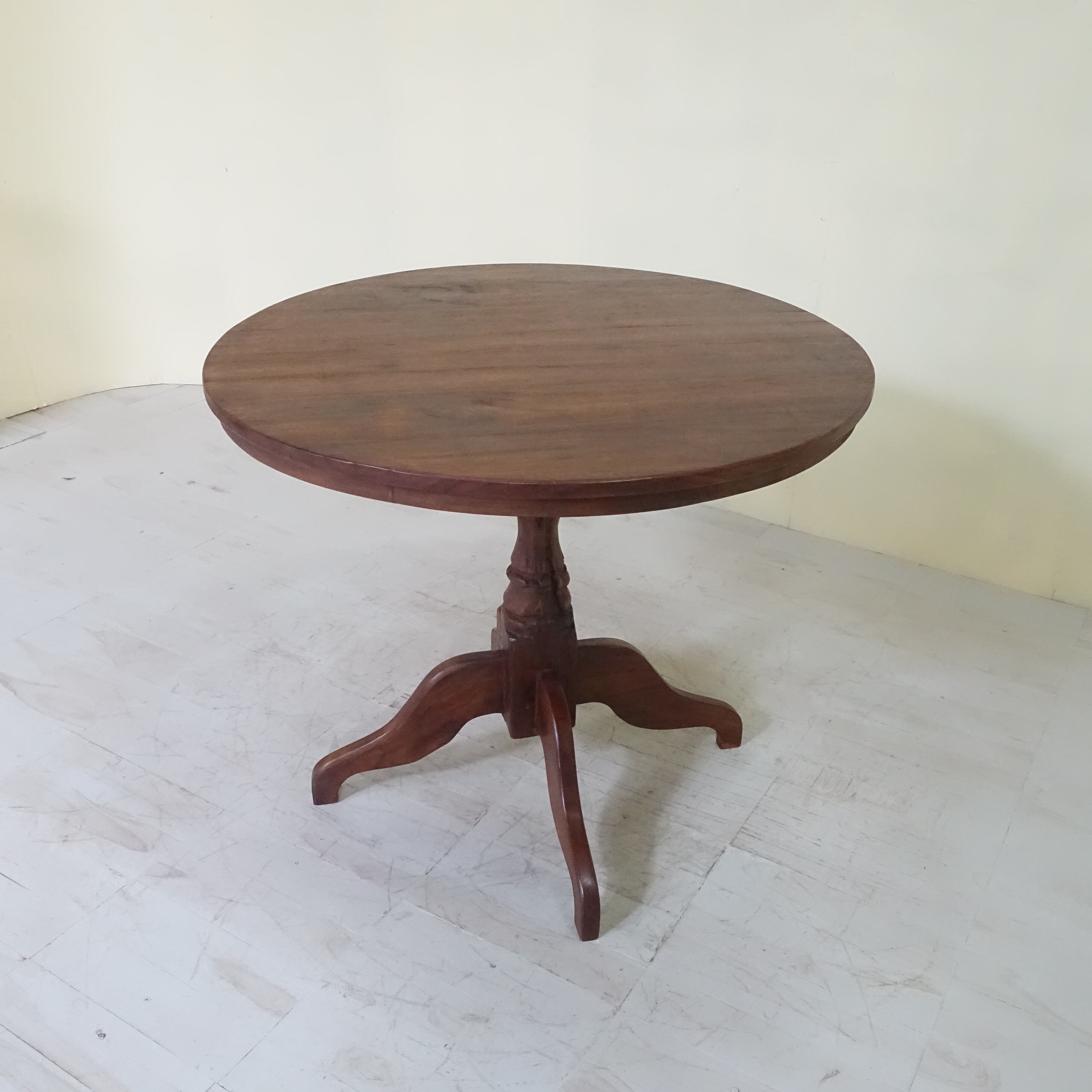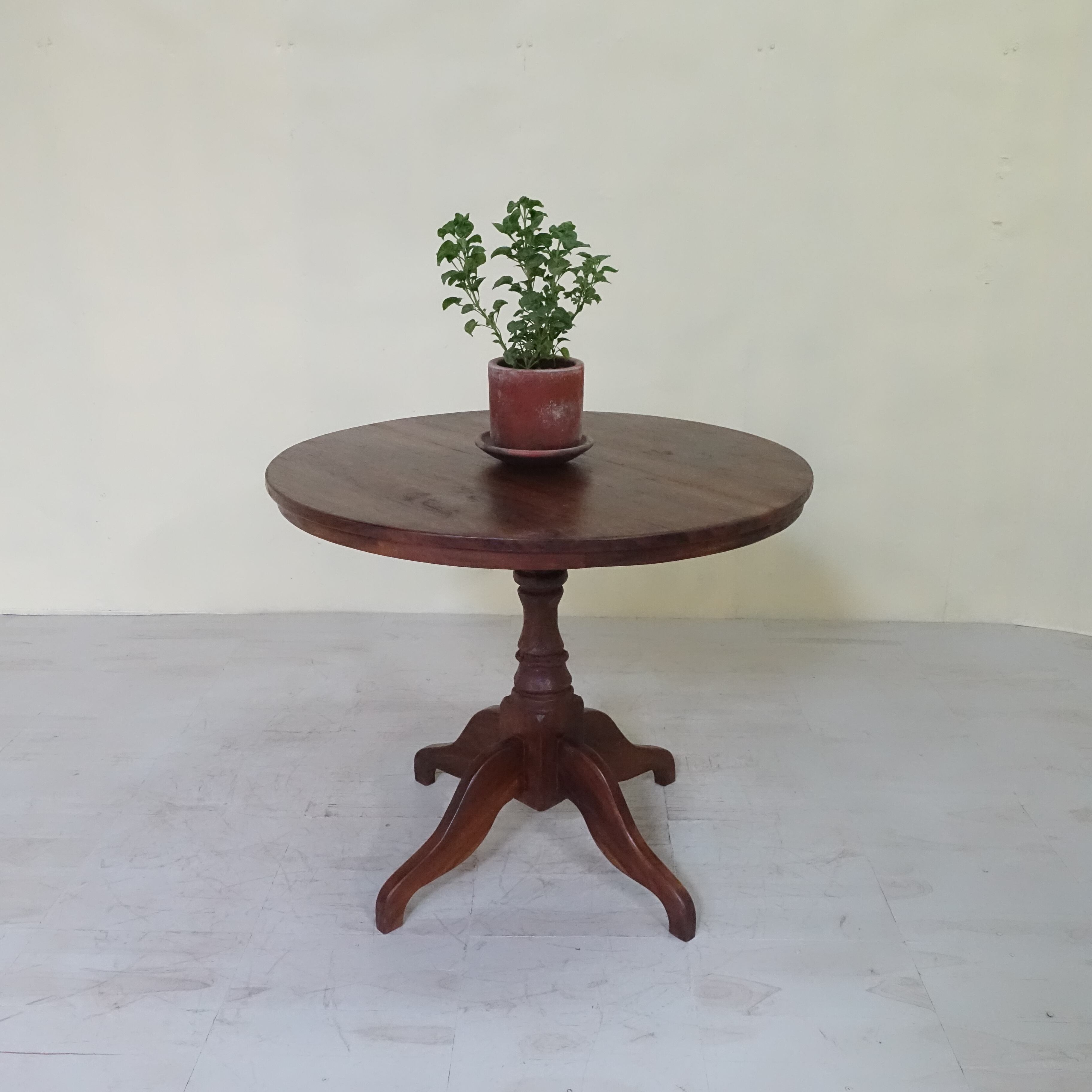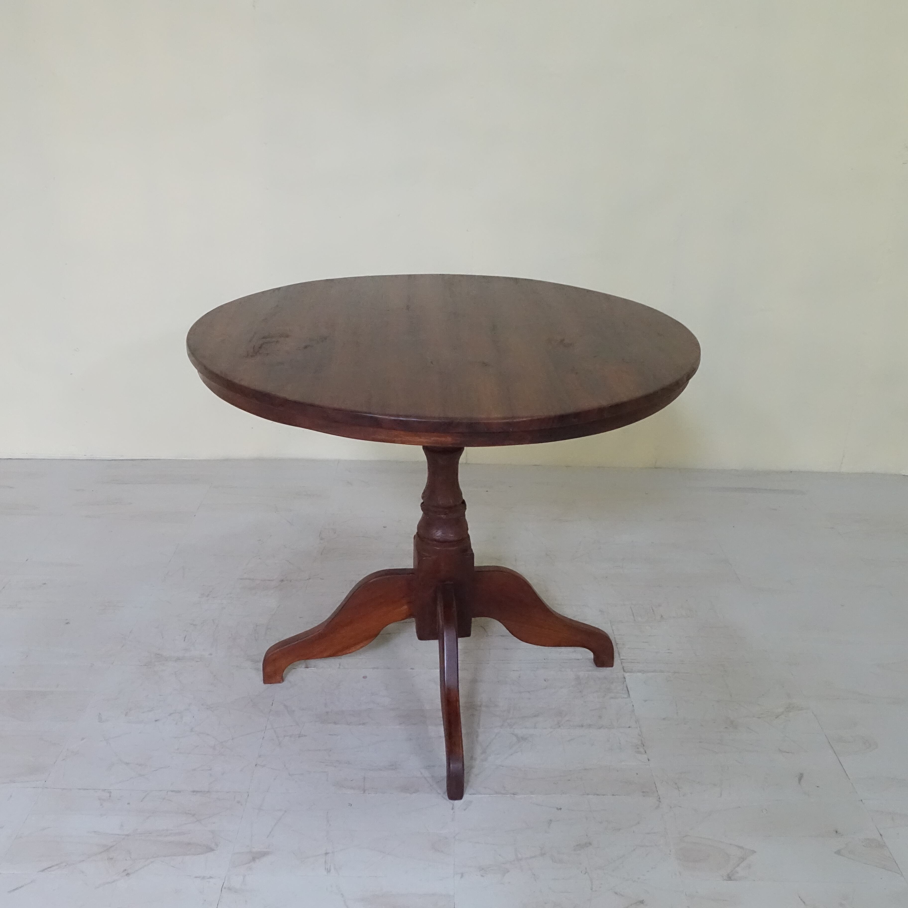インドネシアは、約350年にわたりオランダの統治下にありました。その歴史的背景から、インドネシアで見つかる古家具には、東洋的な要素に加え、ヨーロピアンデザインの影響が色濃く感じられます。本品もまた、そうした時代の空気を纏った一台といえるでしょう。