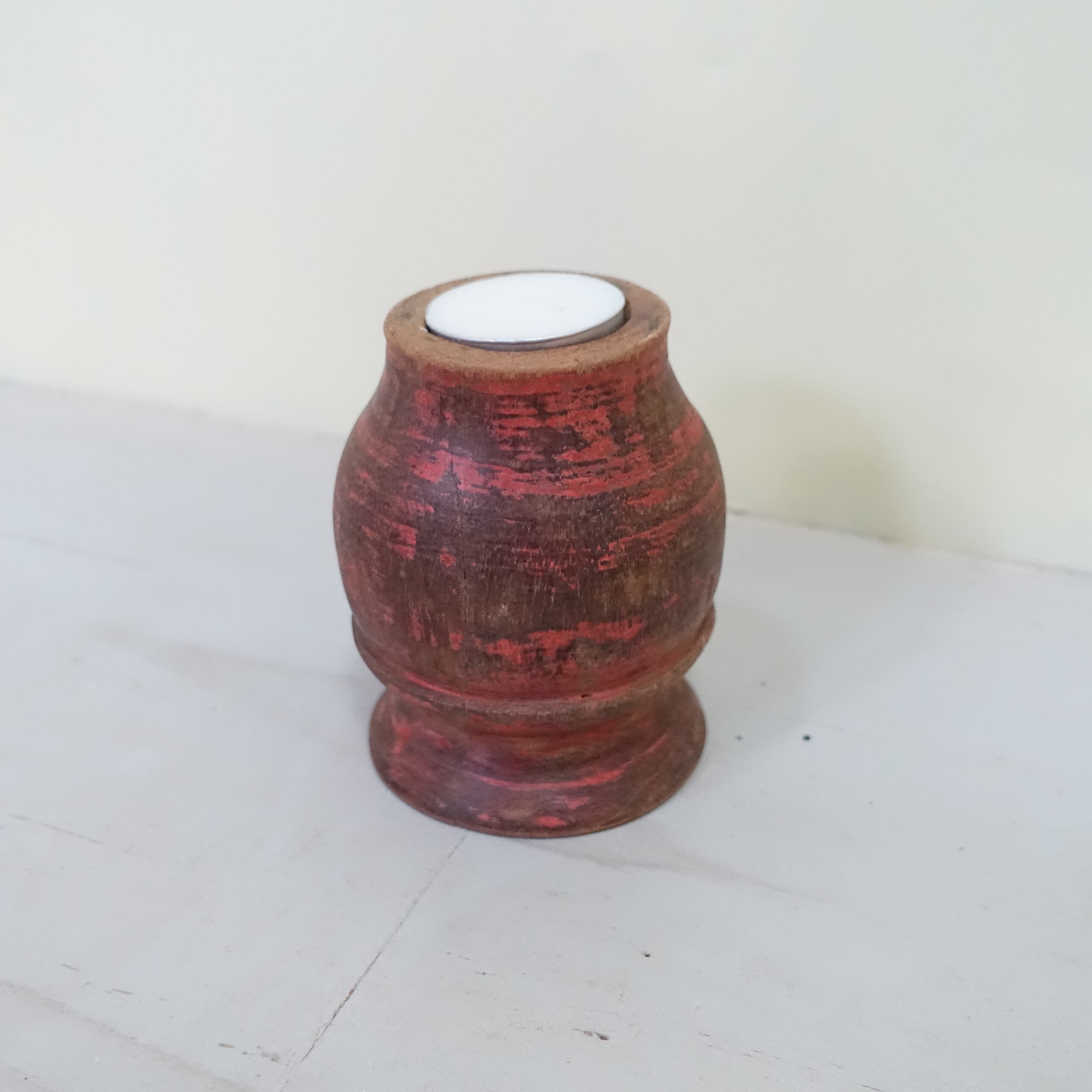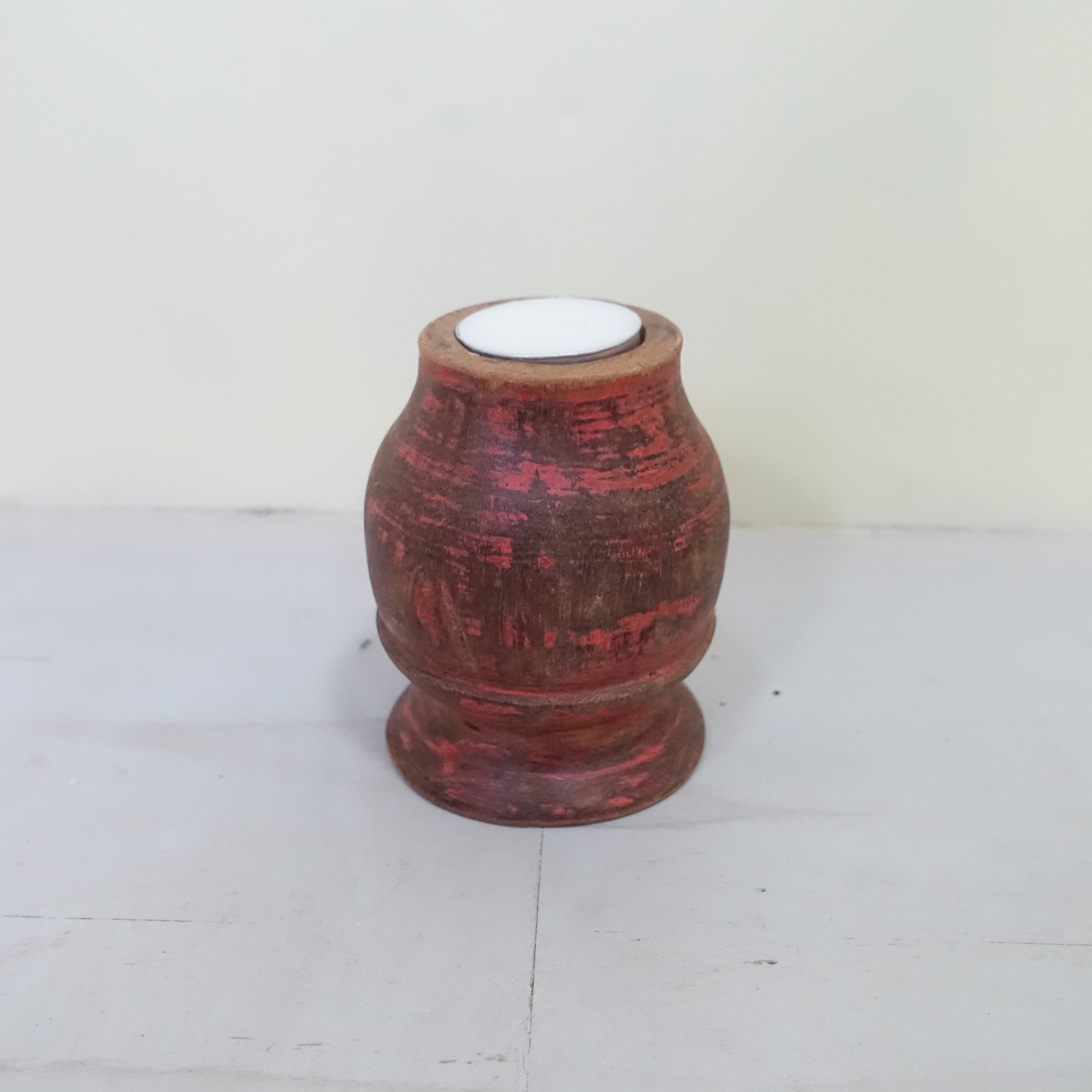 本製品は、チークテーブルの脚材の一部をカットし、ロウソク立てとして再生したサステナブルなインテリアアイテムです。長年家具として役目を果たしてきたチーク材に、新たな命を吹き込みました。