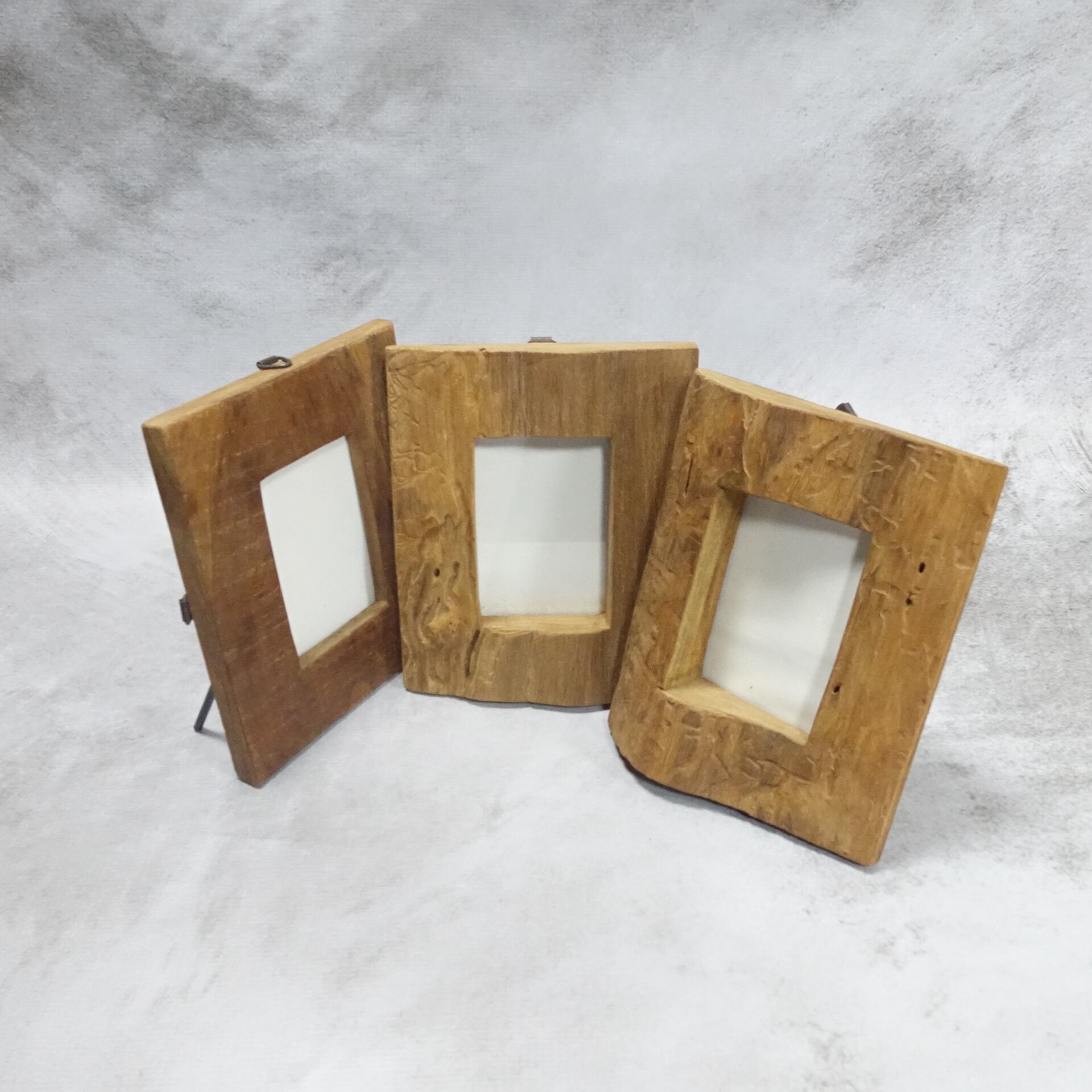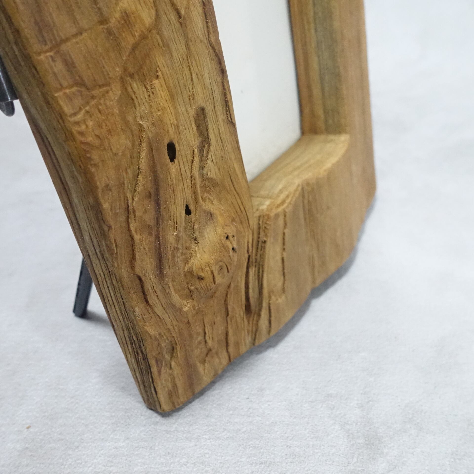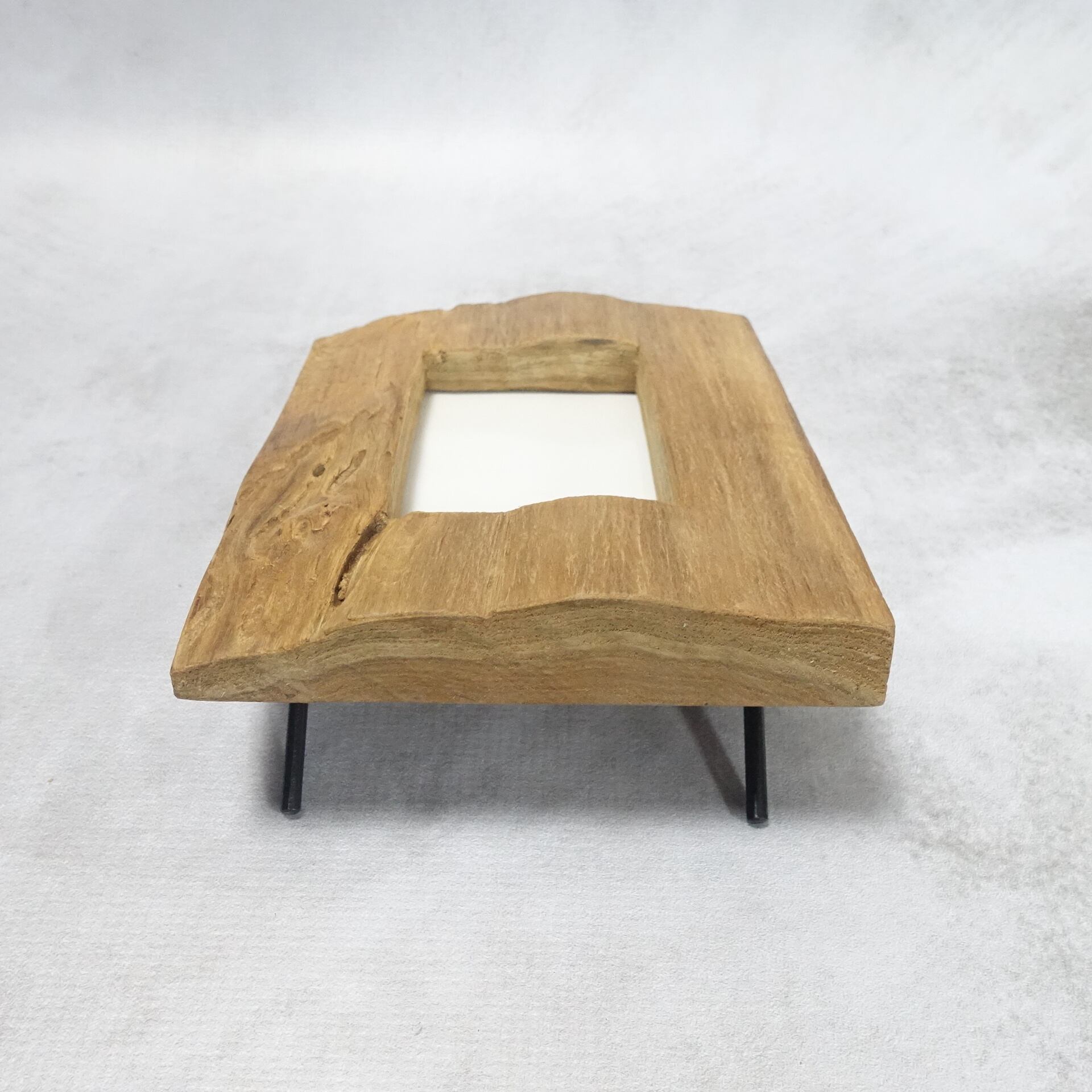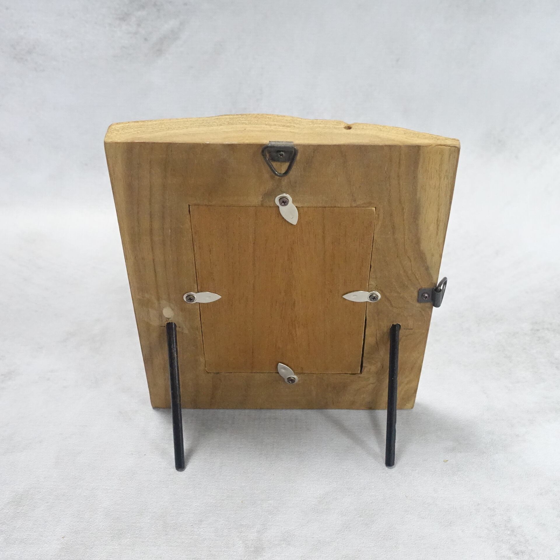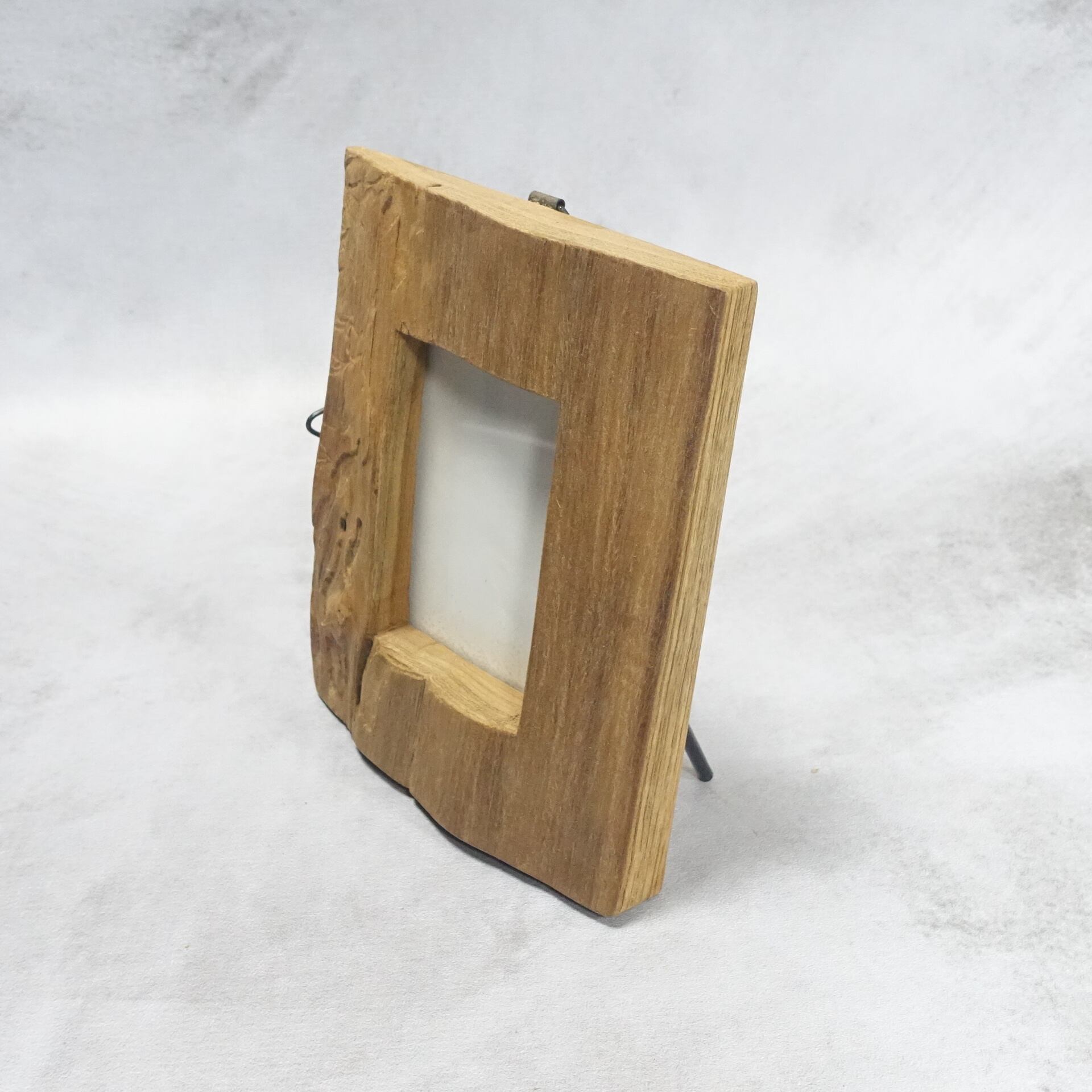 高級チーク材の丸太の外皮側をカットし、写真を入れる部分をくり抜いて製作したフォトフレームです。
