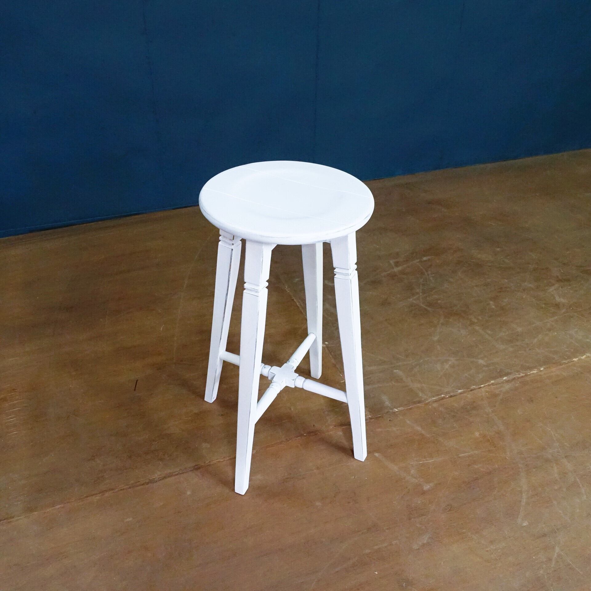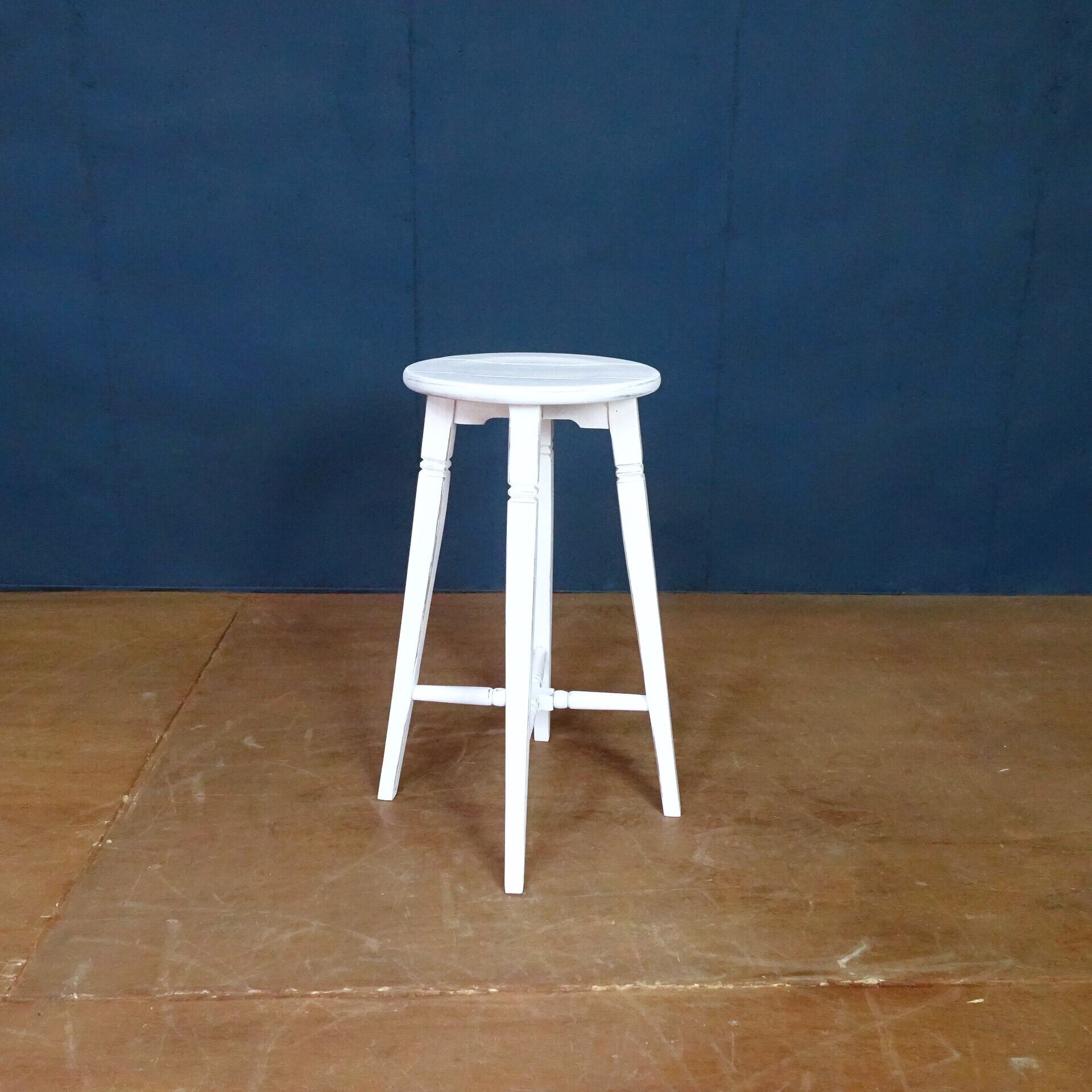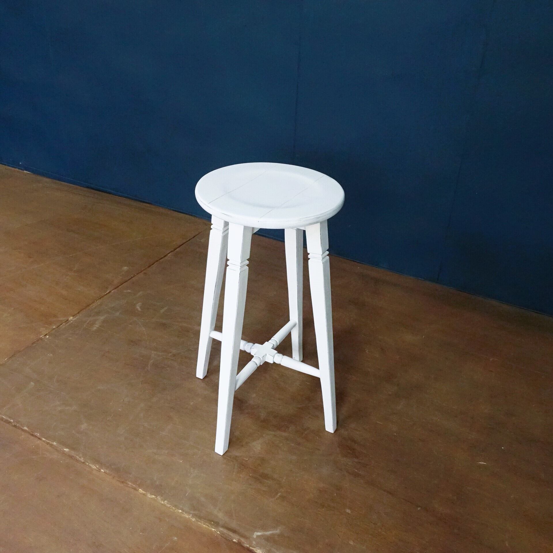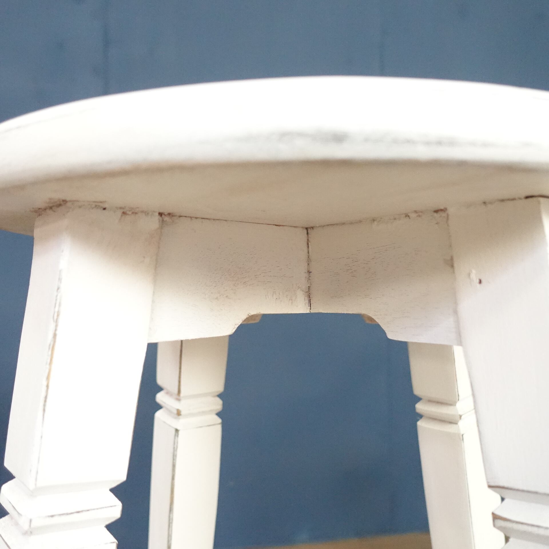 長年使用されていた木製スツールを、白塗りでシャビーシック仕上げにレストアしました。