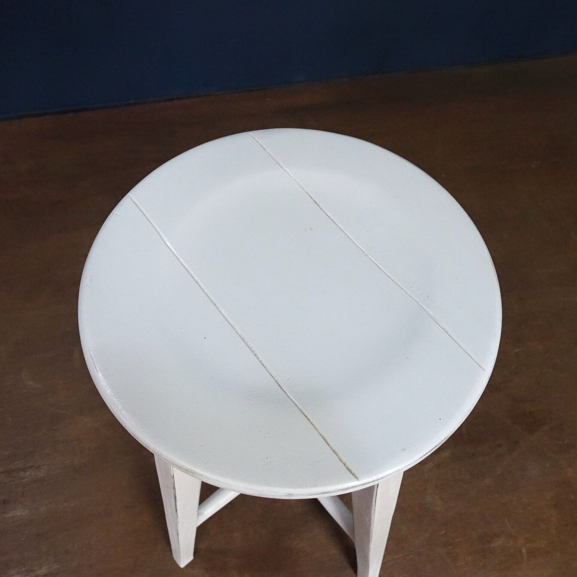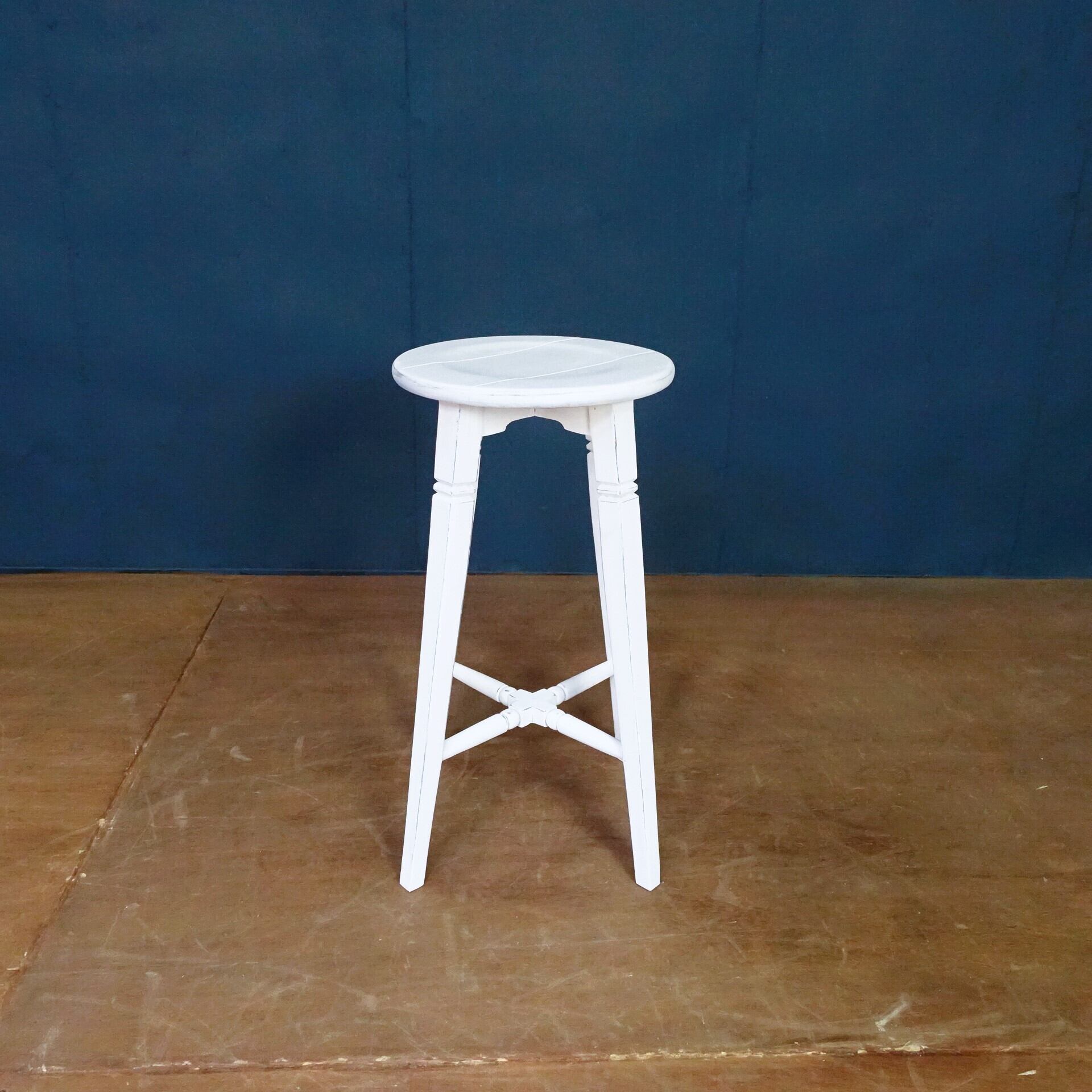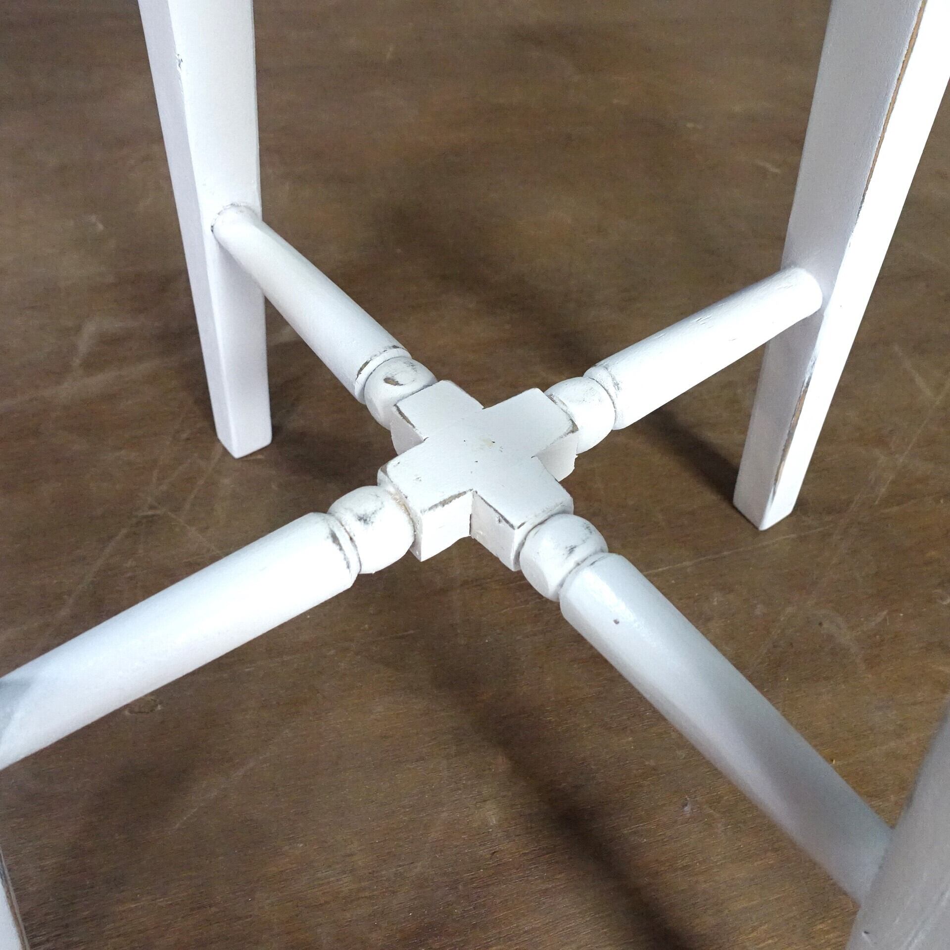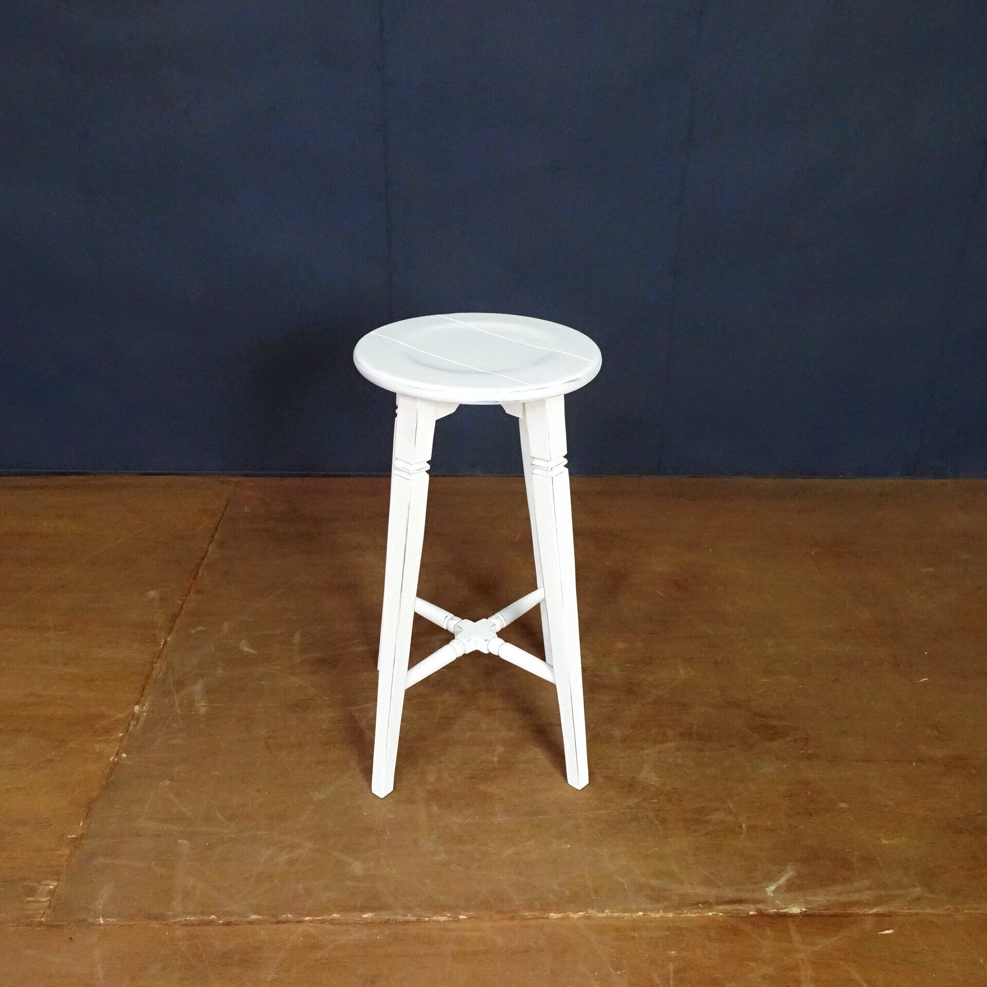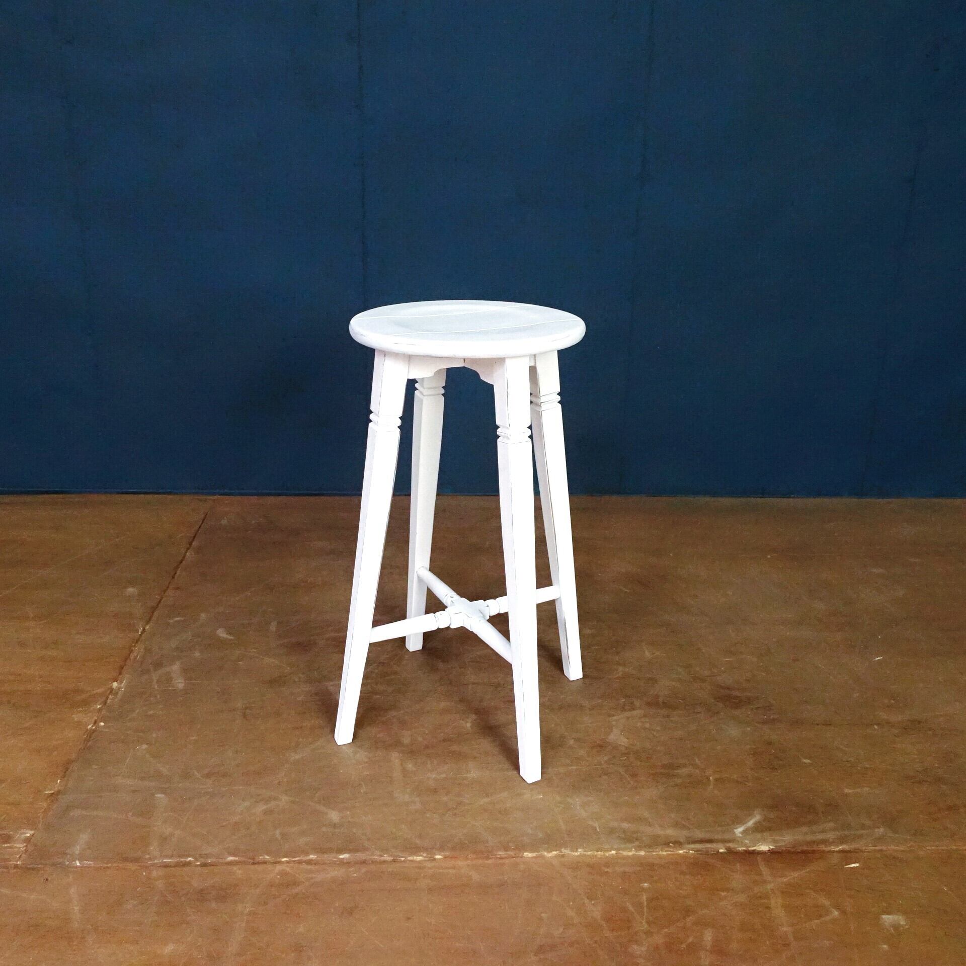 長年使用されていた木製スツールを、白塗りでシャビーシック仕上げにレストアしました。