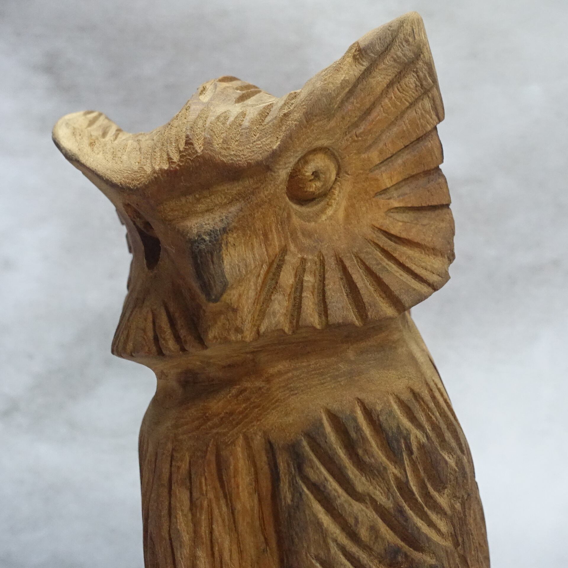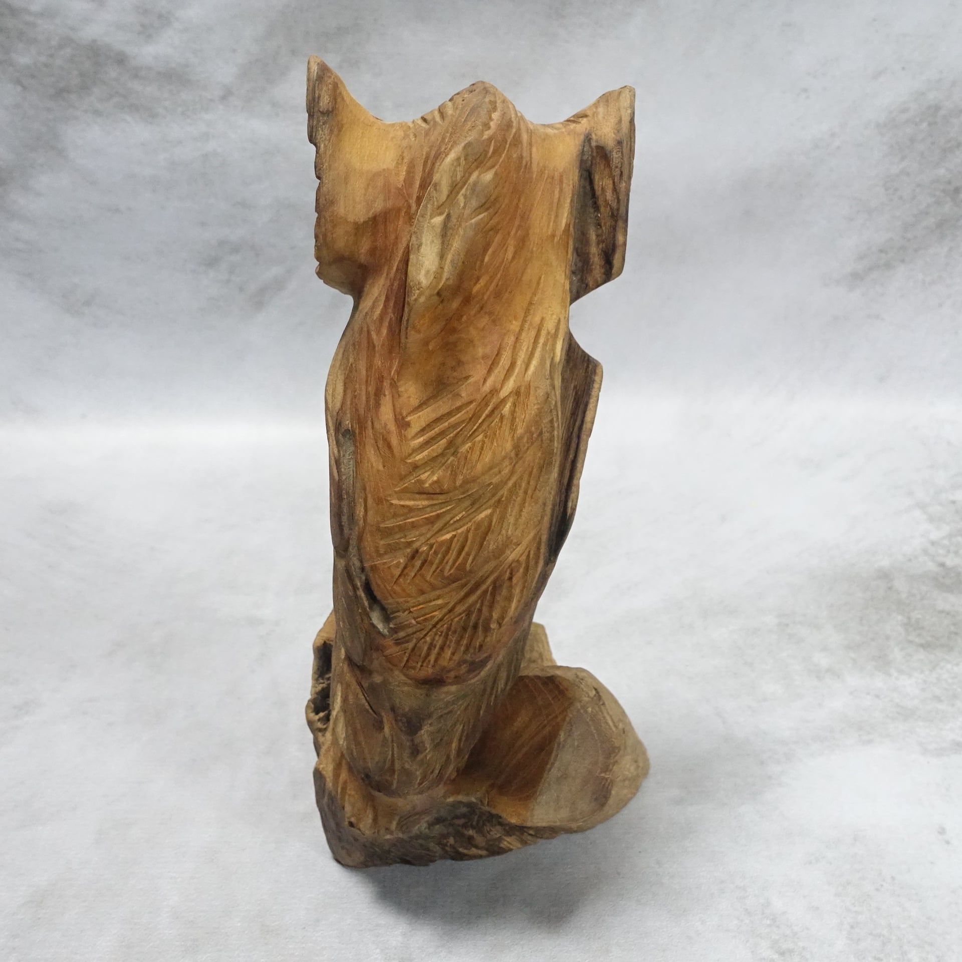 チークの根っ子材を使用して彫られたフクロウの木彫りです。