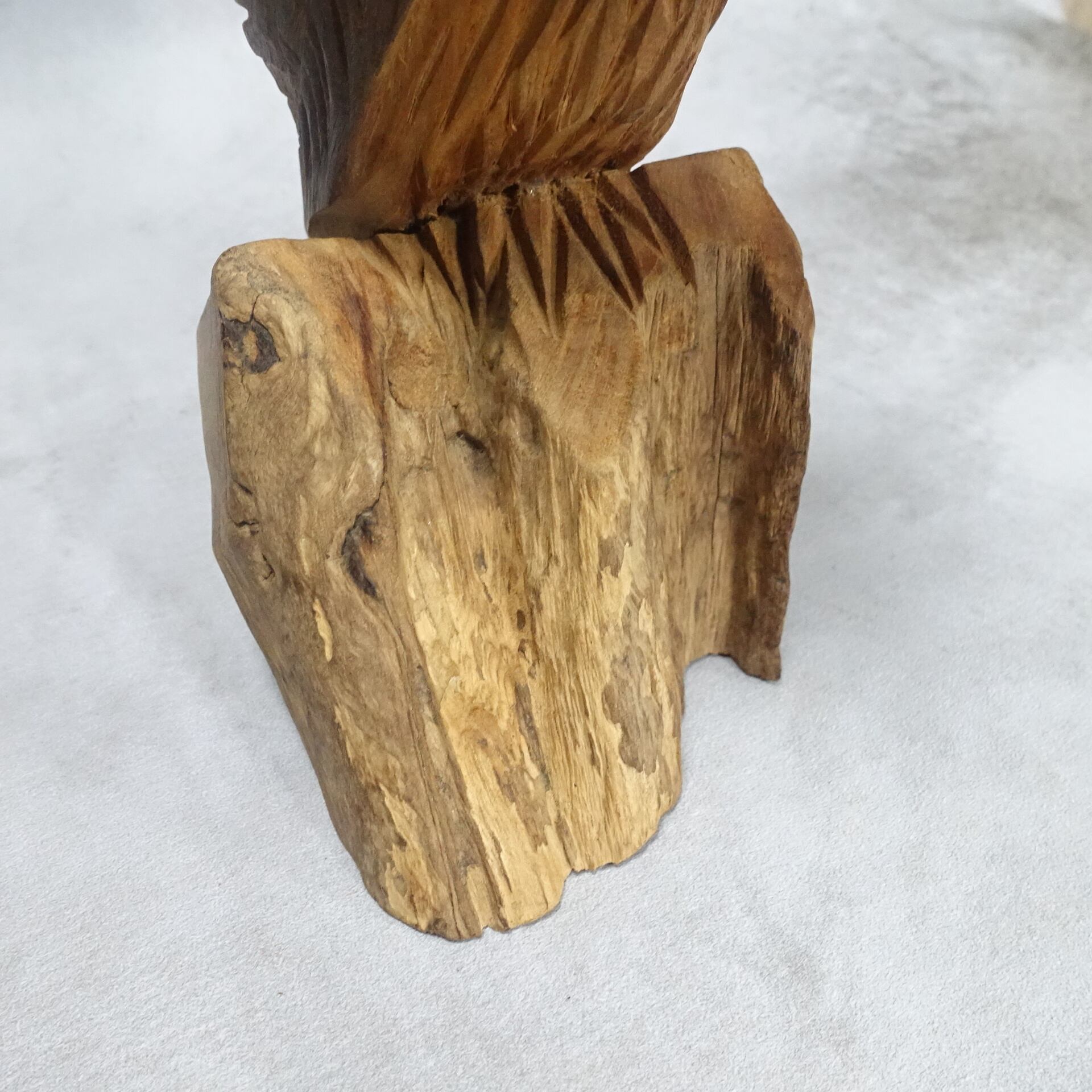 オーソドックスな彫りの中にも、チークの根っ子材ならではの豊かな木目と自然な風合いが感じられる彫刻品です。