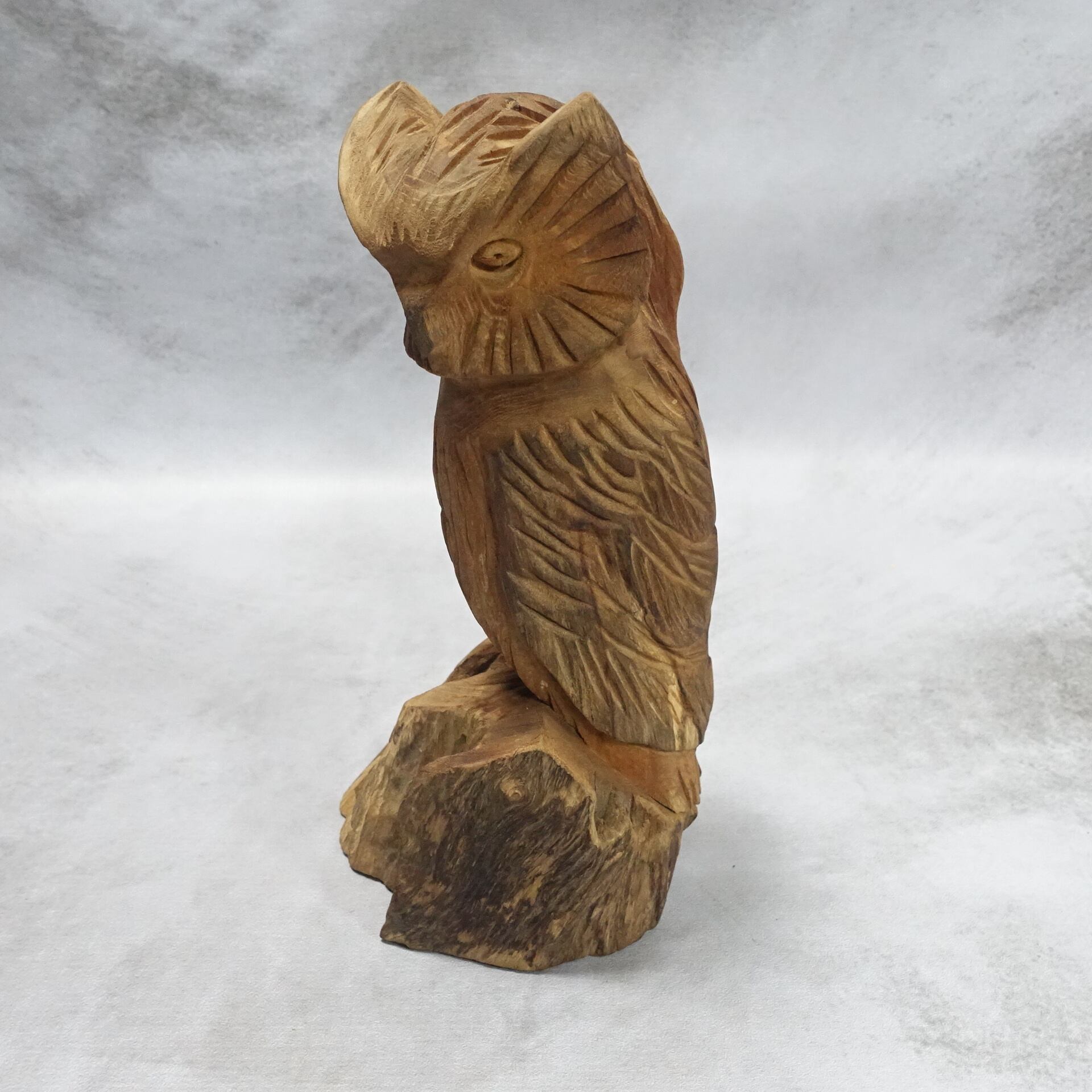 チーク根っこ材 木彫りフクロウ /ASL-4148-3G <Owl wood carving >