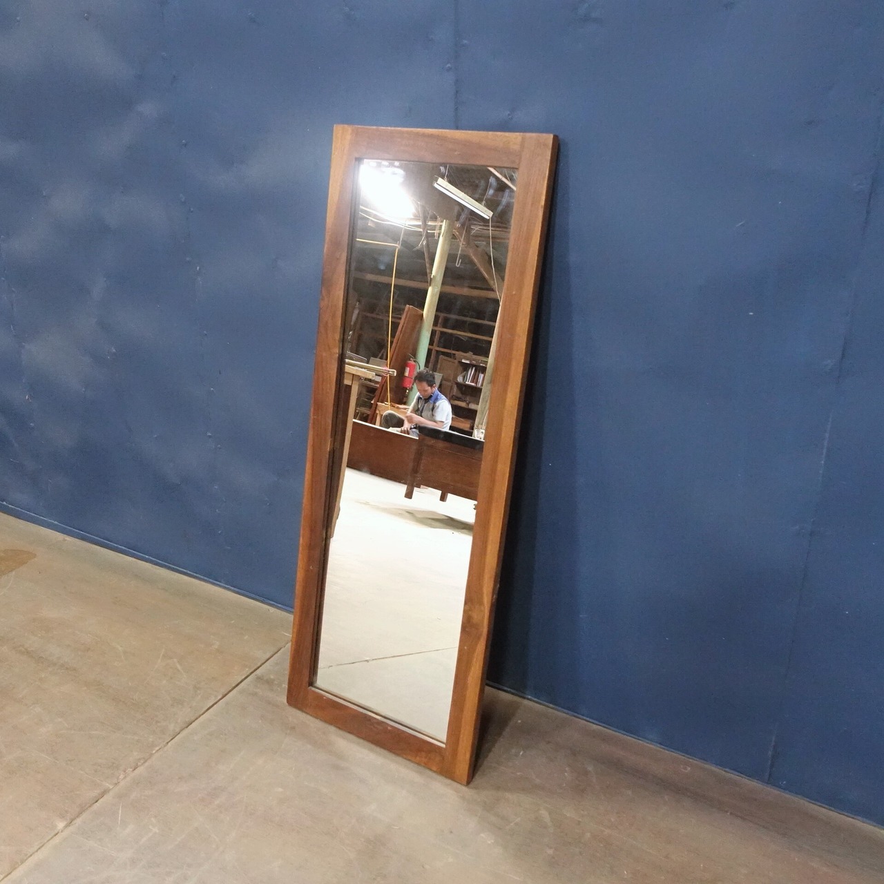 オールドチーク材を使用して製作した壁掛けミラーです。
