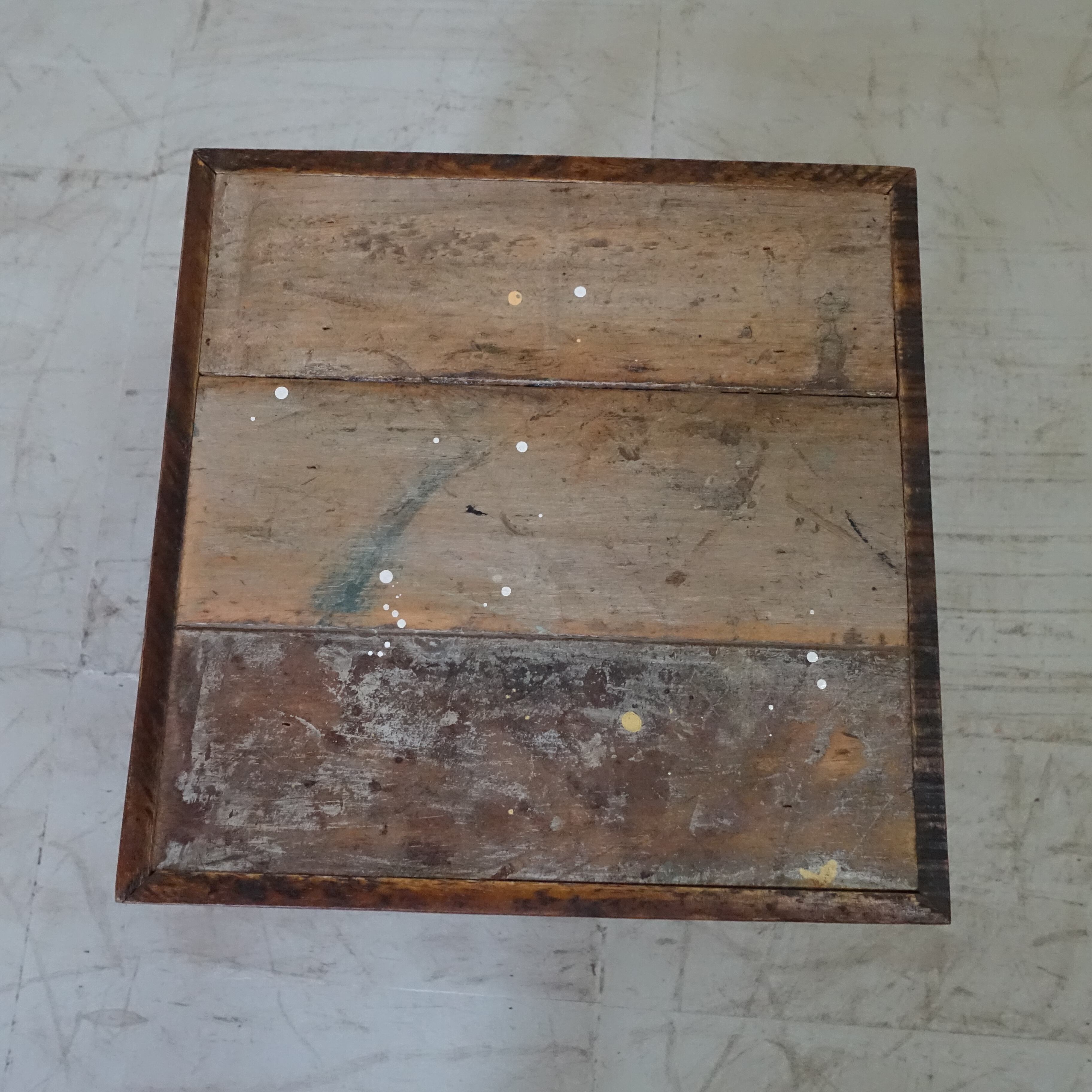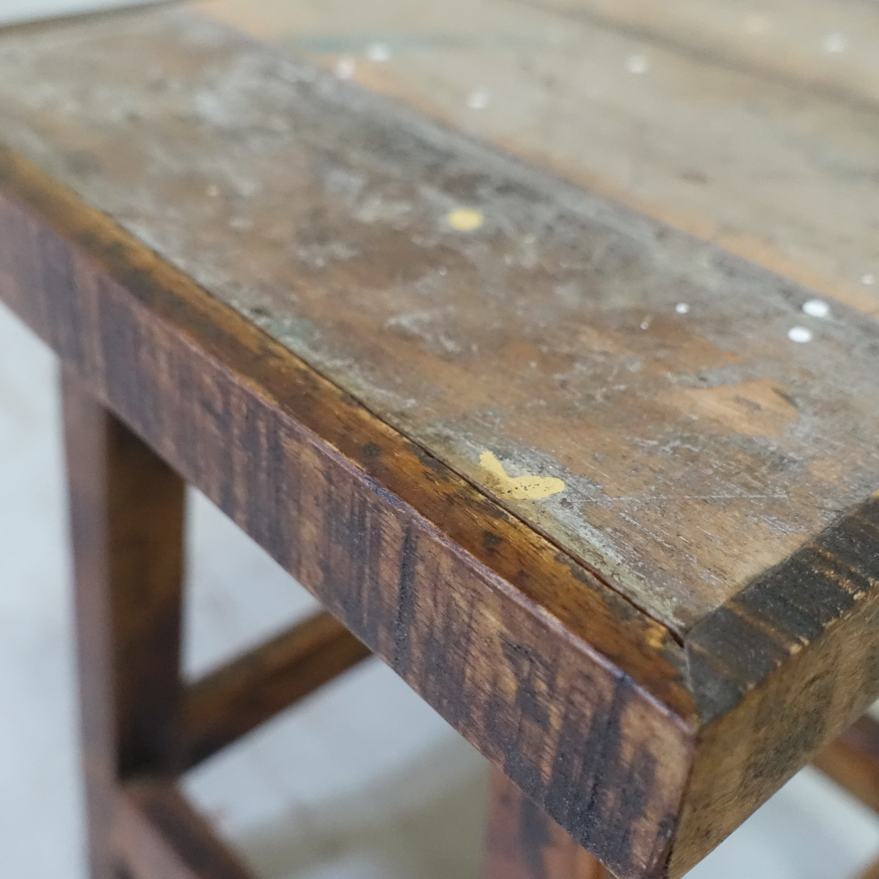 塗装場で数々の色が重なり合った座面は、まさに世界に一つだけのアート。実を結ばなくなったマンゴーの老木を脚に使い、素材のすべてに物語を詰め込んだ、地球に優しいハンドメイドスツールです。