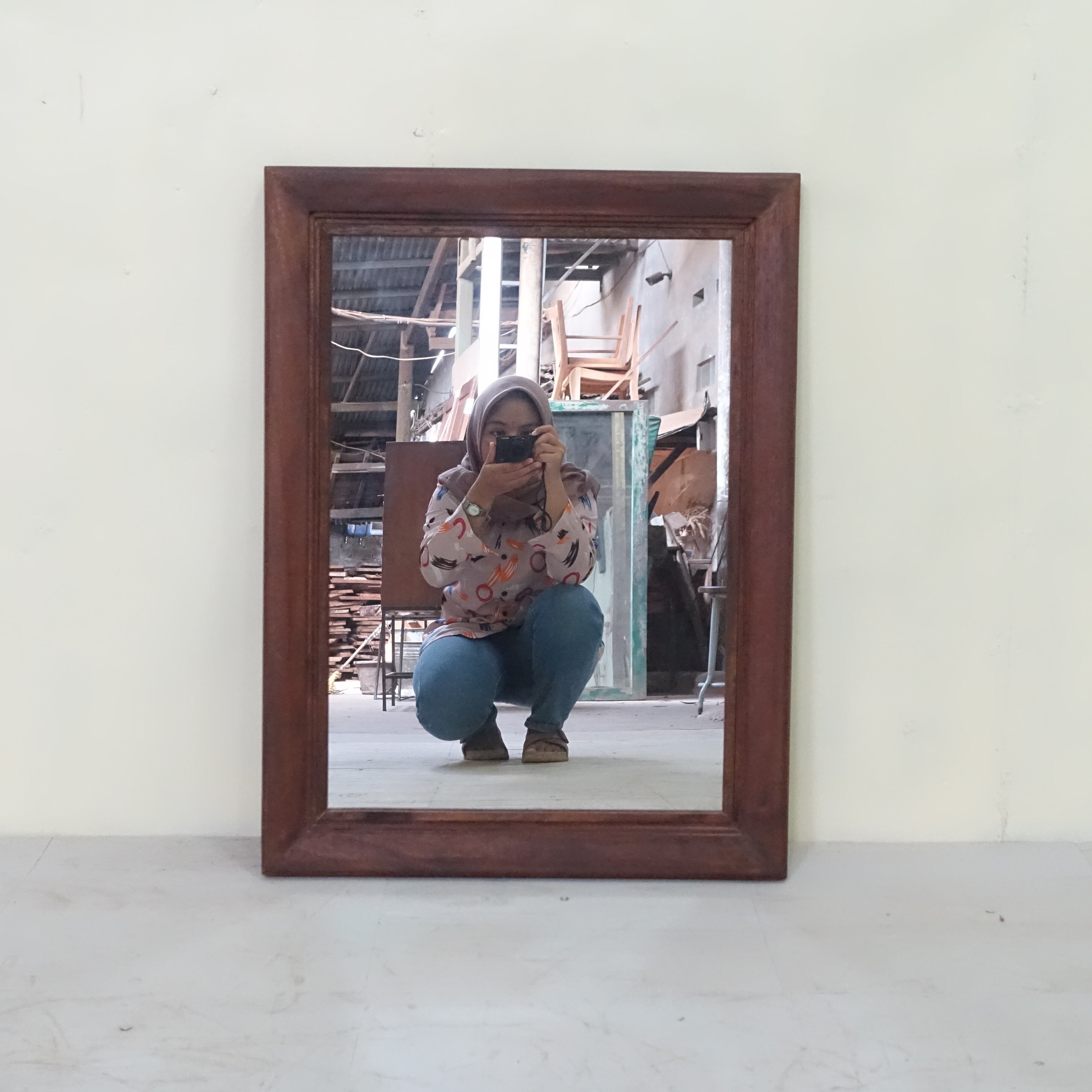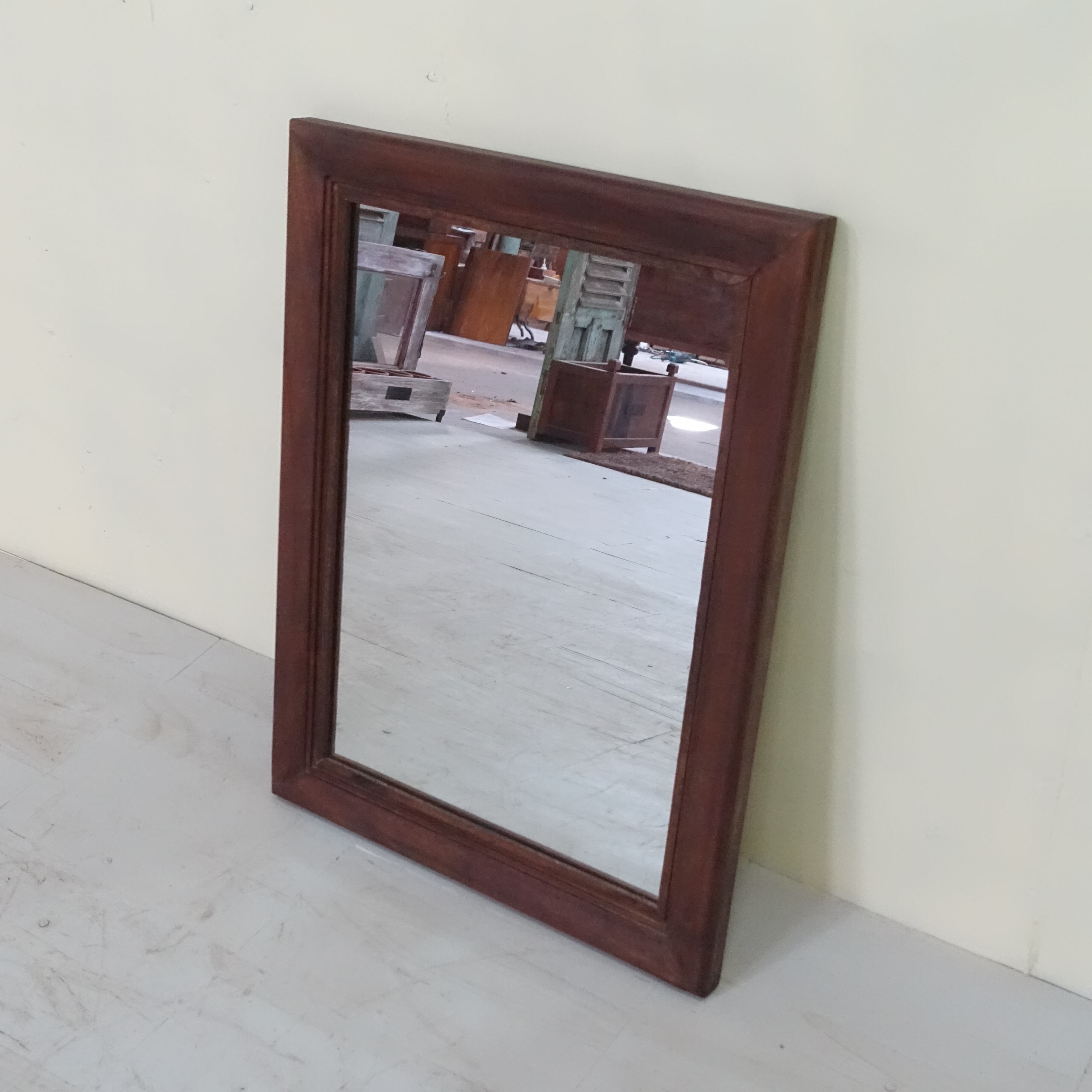 世界三大銘木のひとつとされるチーク材を使用し、アンティーク調に仕上げたウォールミラーです。