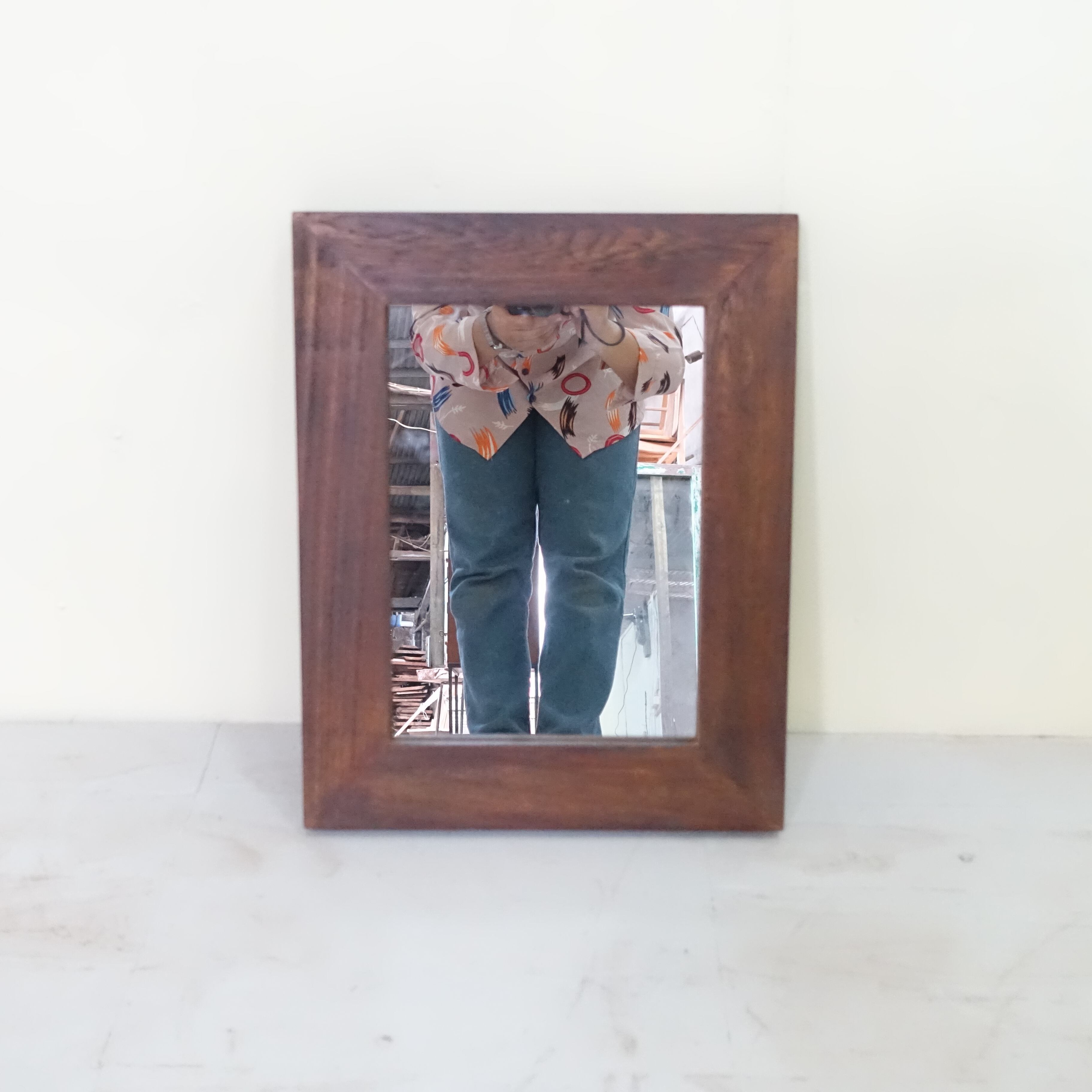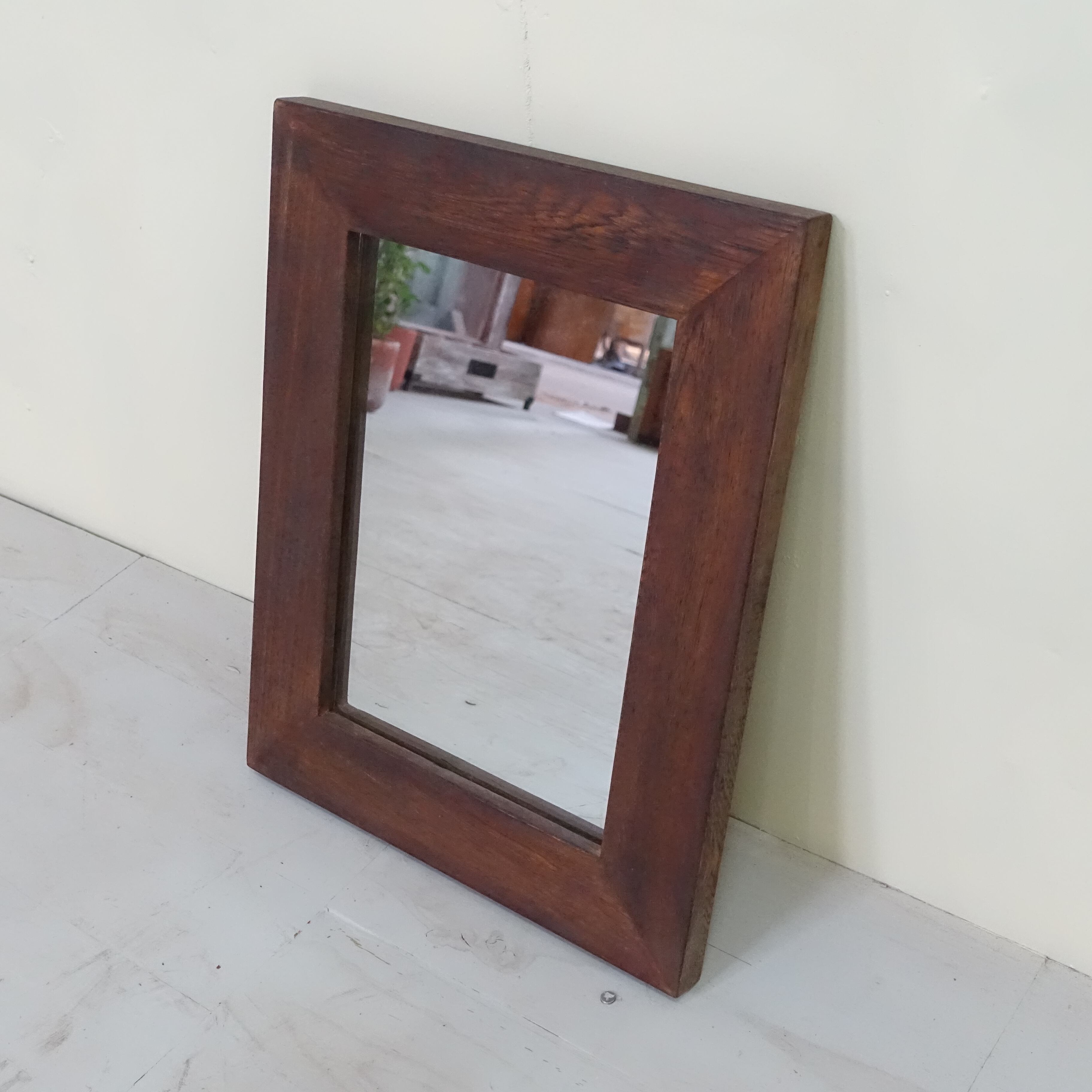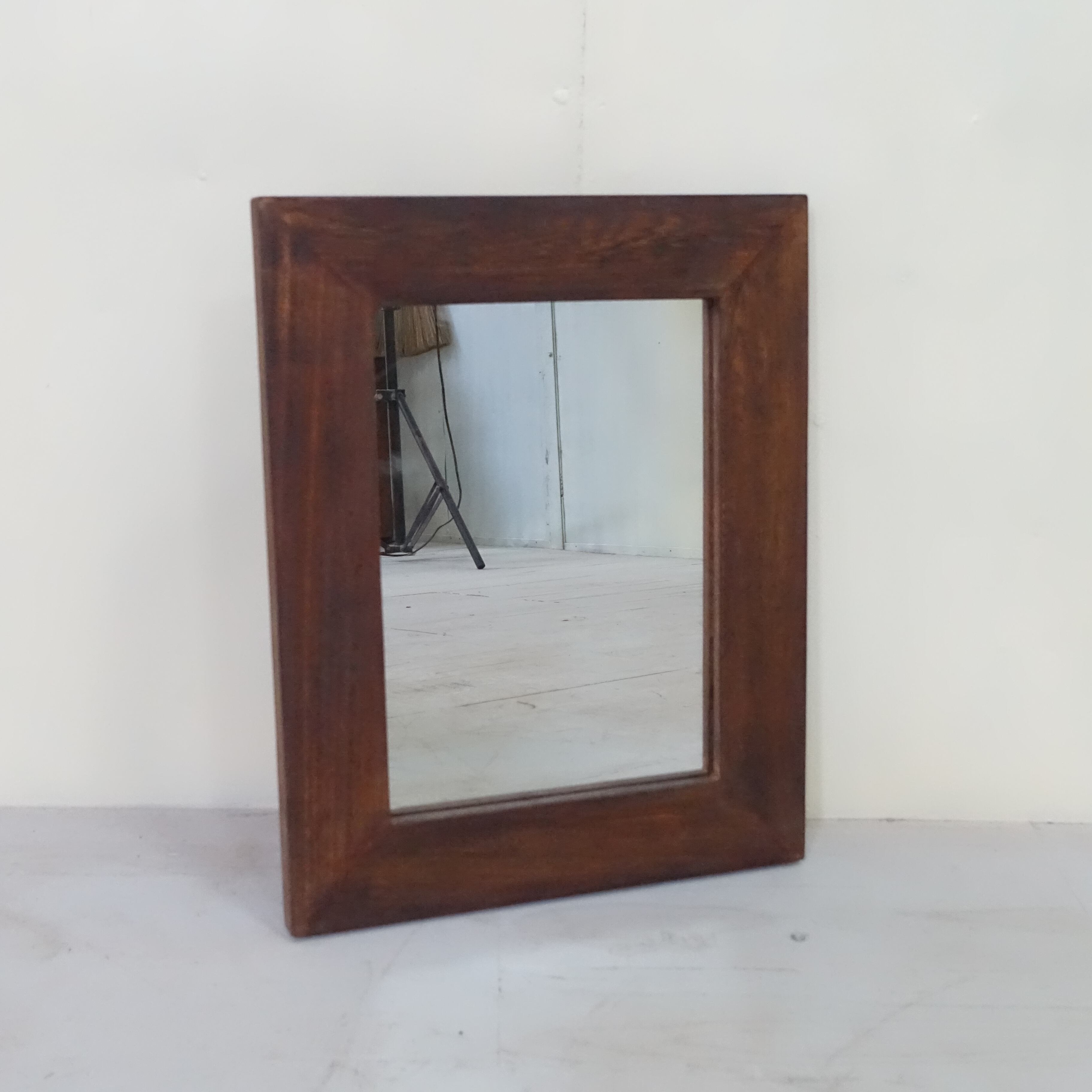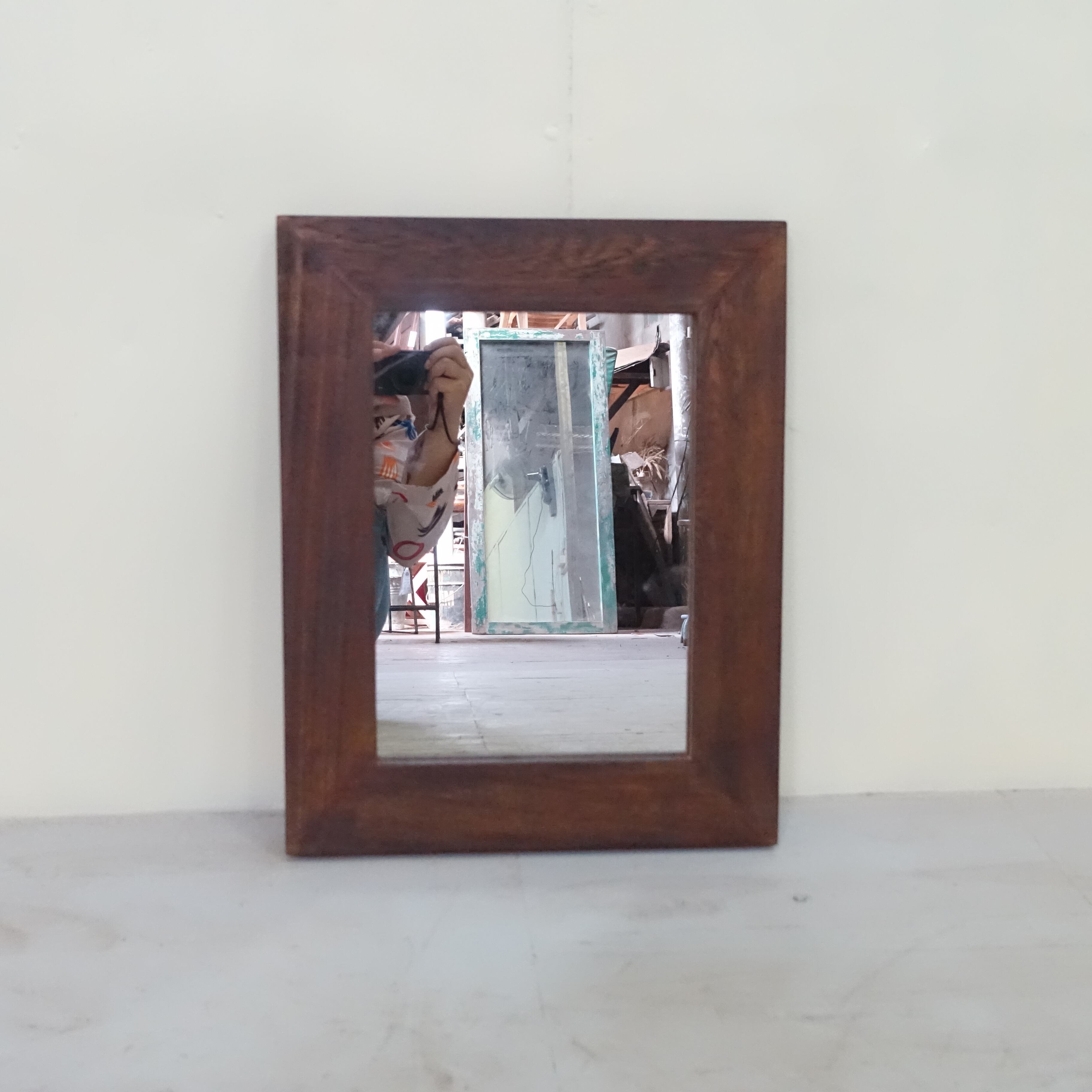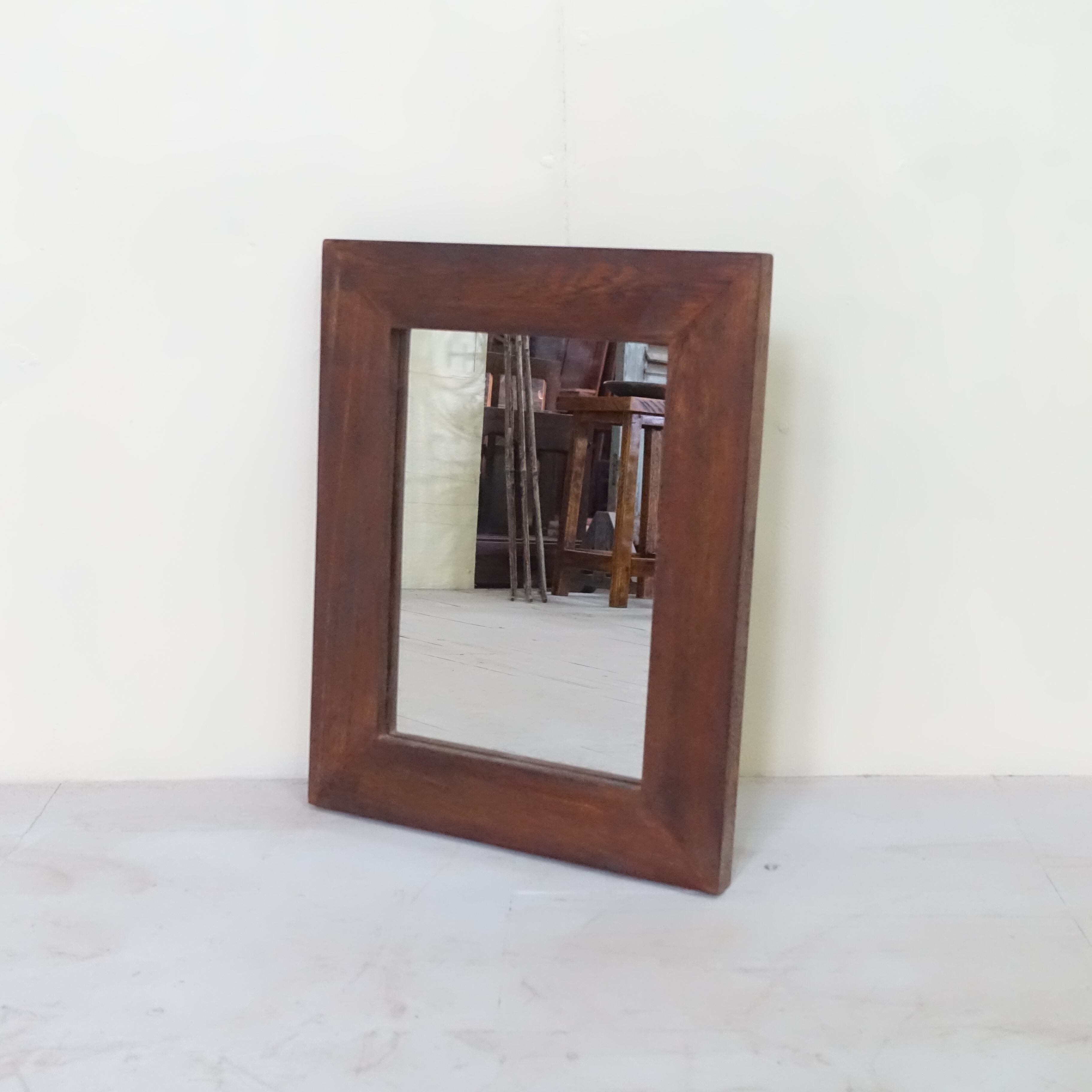 世界三大銘木のひとつとされるチーク材を使用し、アンティーク調に仕上げたウォールミラーです。