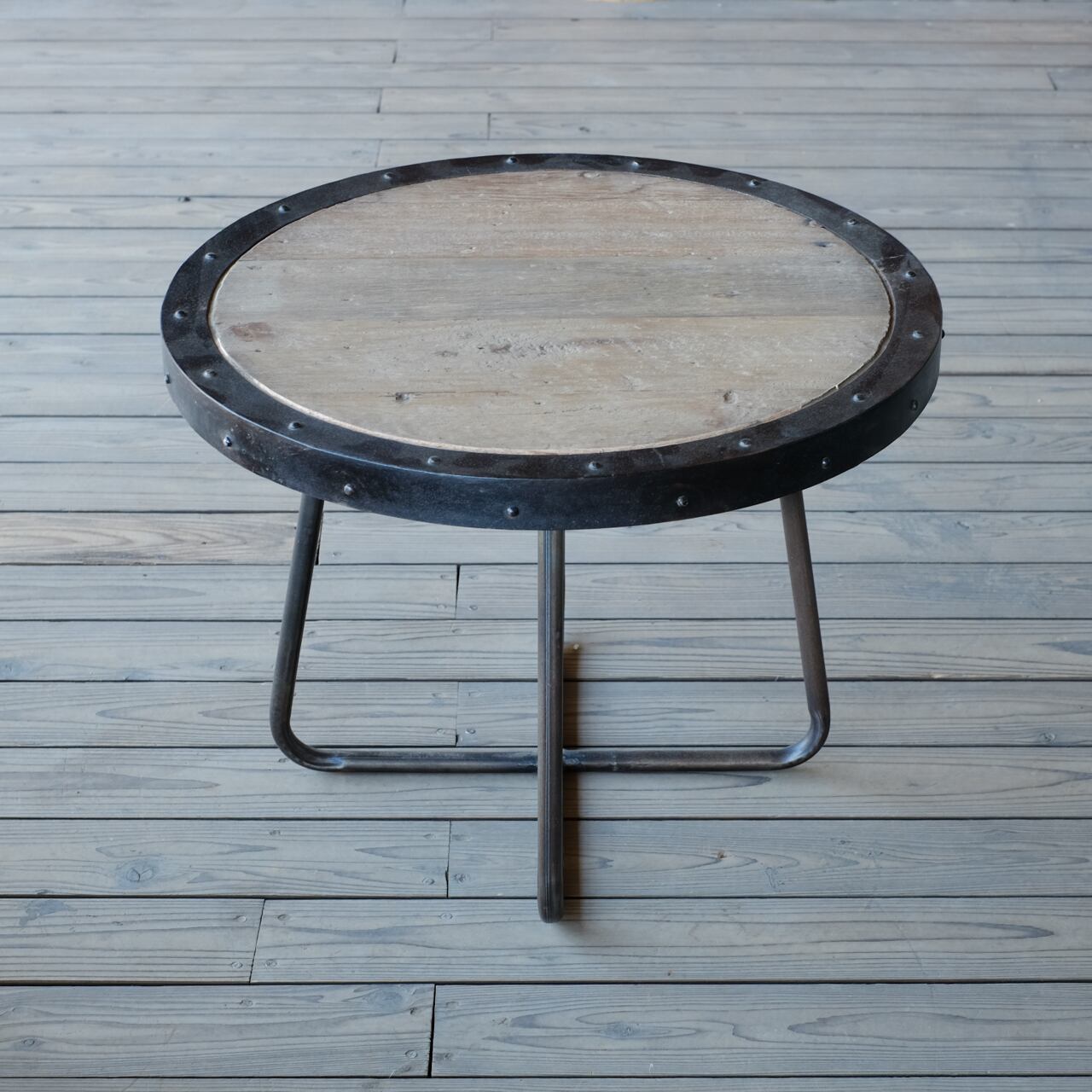 古材のアイアンラウンドテーブルです。