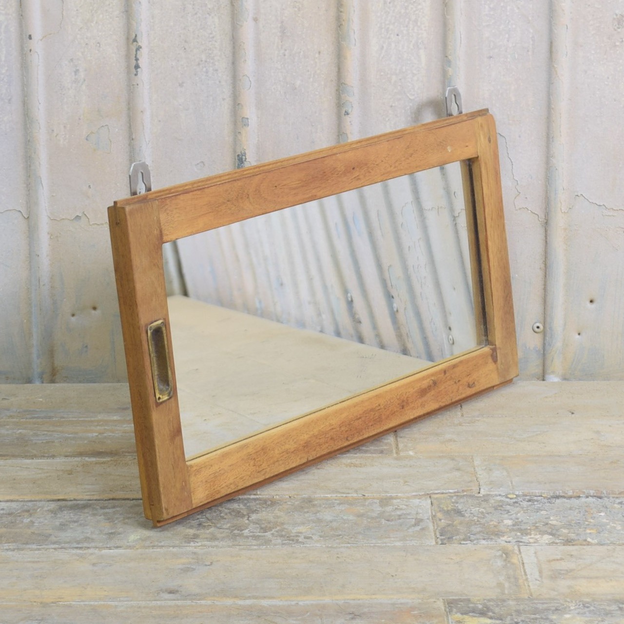 アカシア材のドアをアレンジしたミラー。